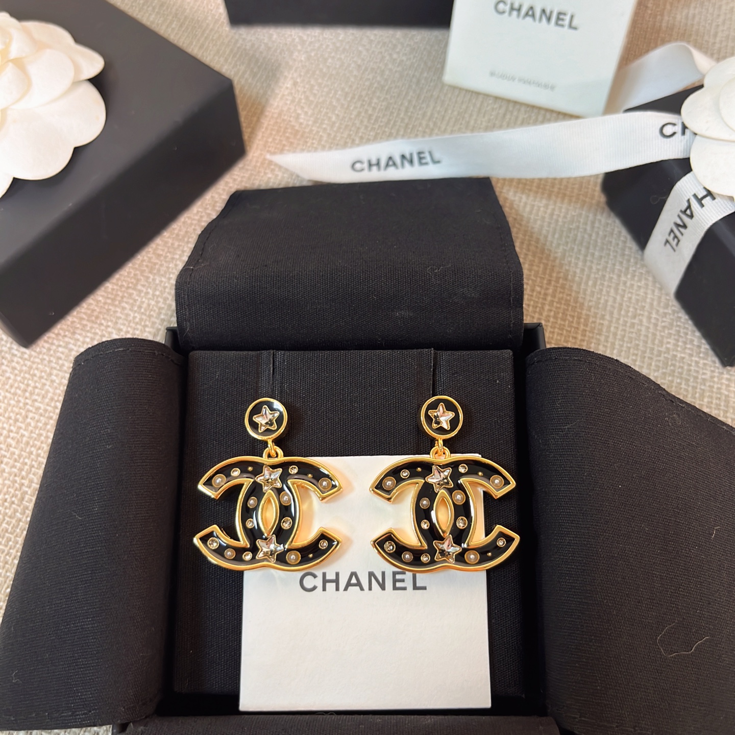 黑金配色低調卻充滿氣場,帶點復古港風的味道,上耳立刻有「富家千金」的質感氛圍,既時髦又精緻,完全是那種越看越耐看的精品級飾品。