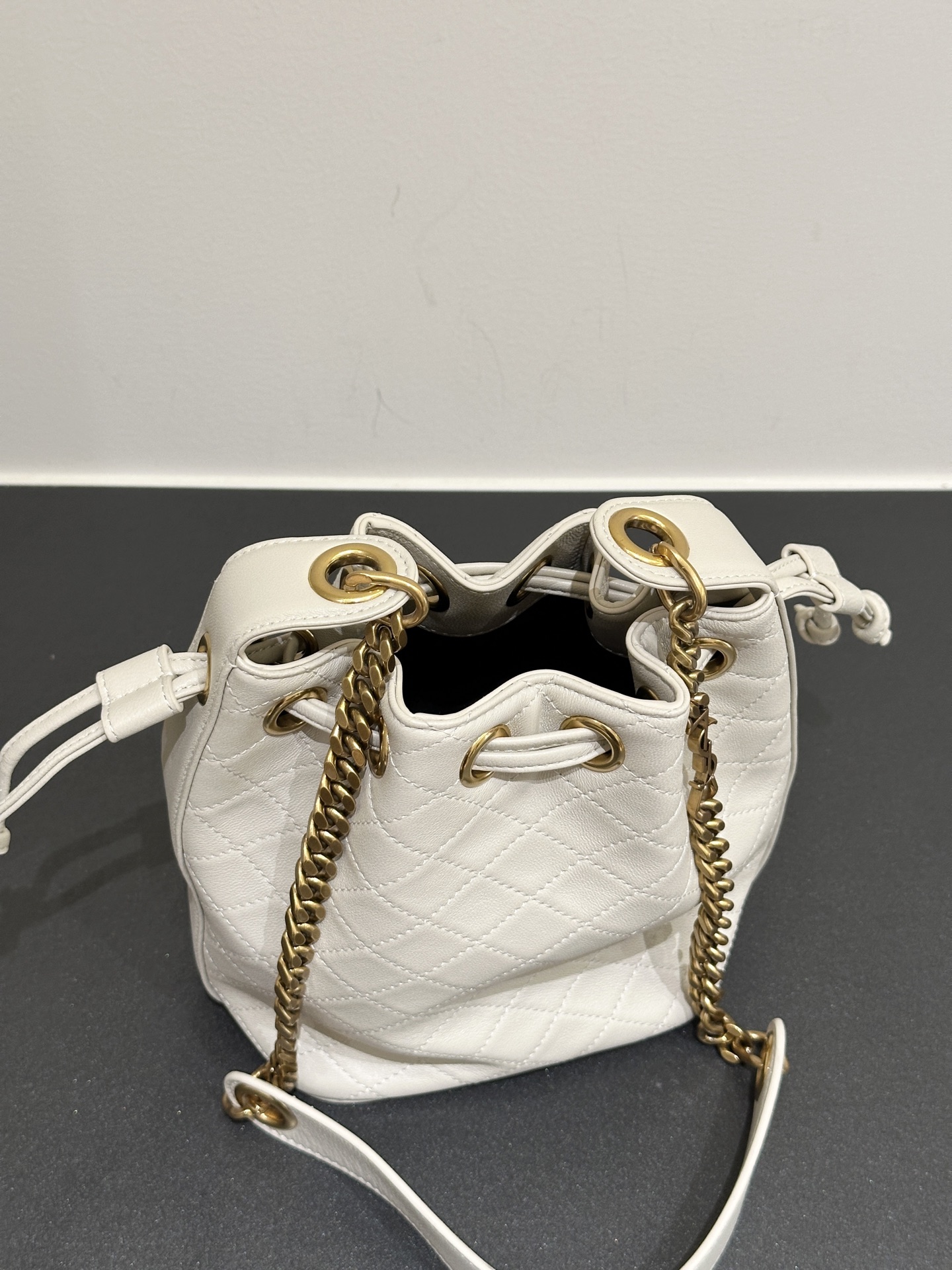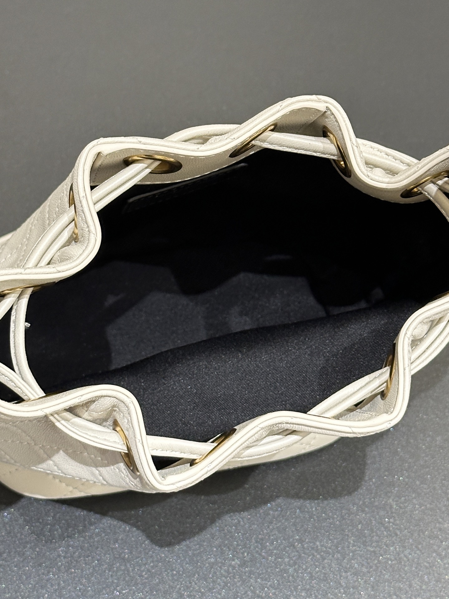 𝗟𝗘 𝗖𝗔𝗦𝗦𝗔𝗡𝗗𝗥𝗘 羊皮水桶包,是一款兼具柔軟質感與俐落造型的精品小包。整體以經典菱格絎縫工藝打造,低調中帶著高級氣息,細節處更是讓人一眼難忘。