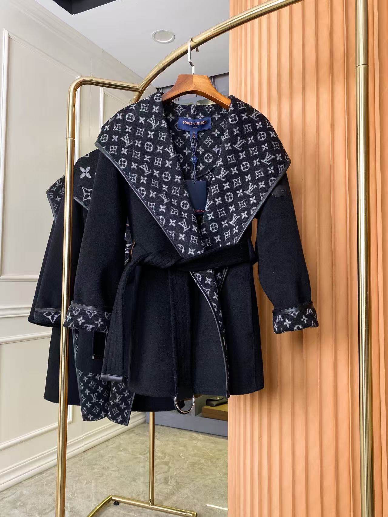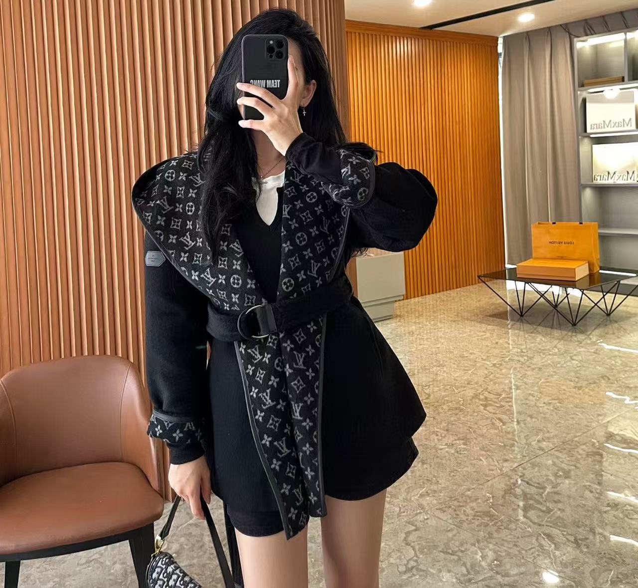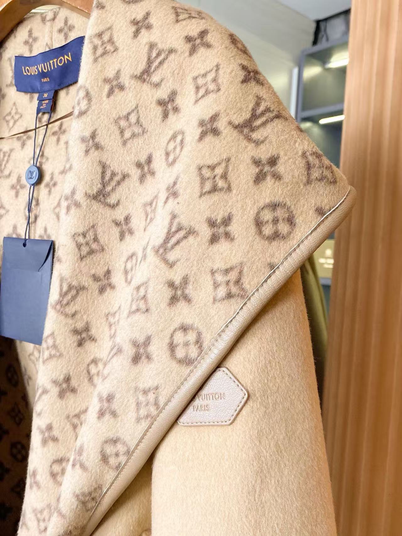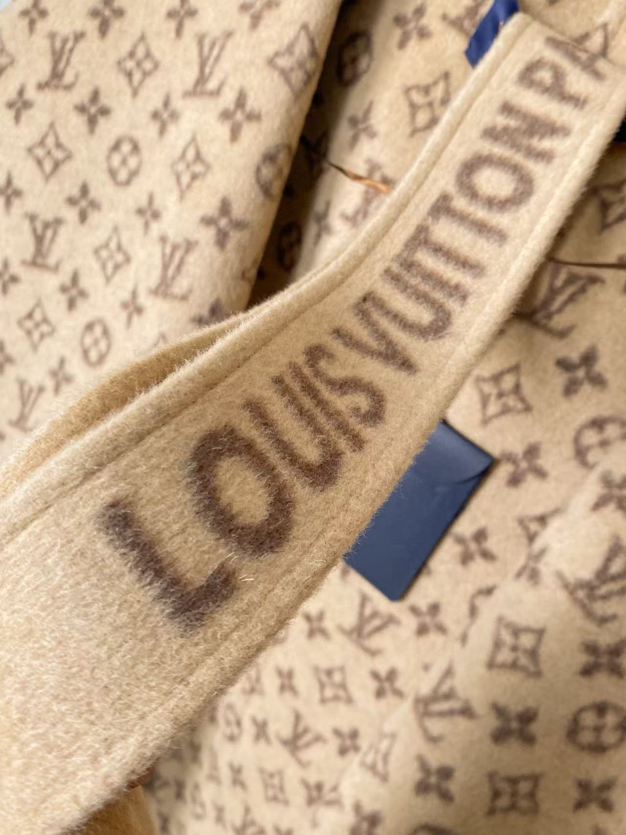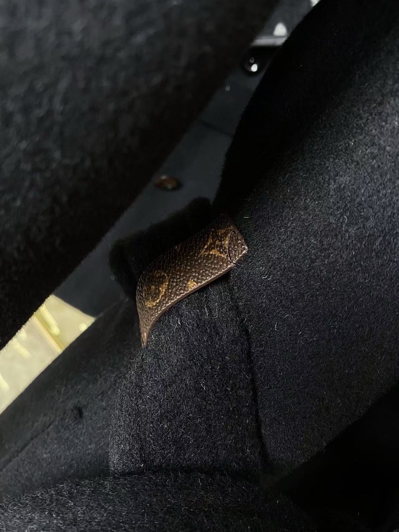 特別值得一提的是,這件大衣的內裡,有著深邃又清晰的 Monogram 提花,這才是這款大衣真正的靈魂!它完全不是市面上那種模糊不清的普通貨色,而是將品牌的精髓融入了面料的每一寸肌理,質感真的沒話說。