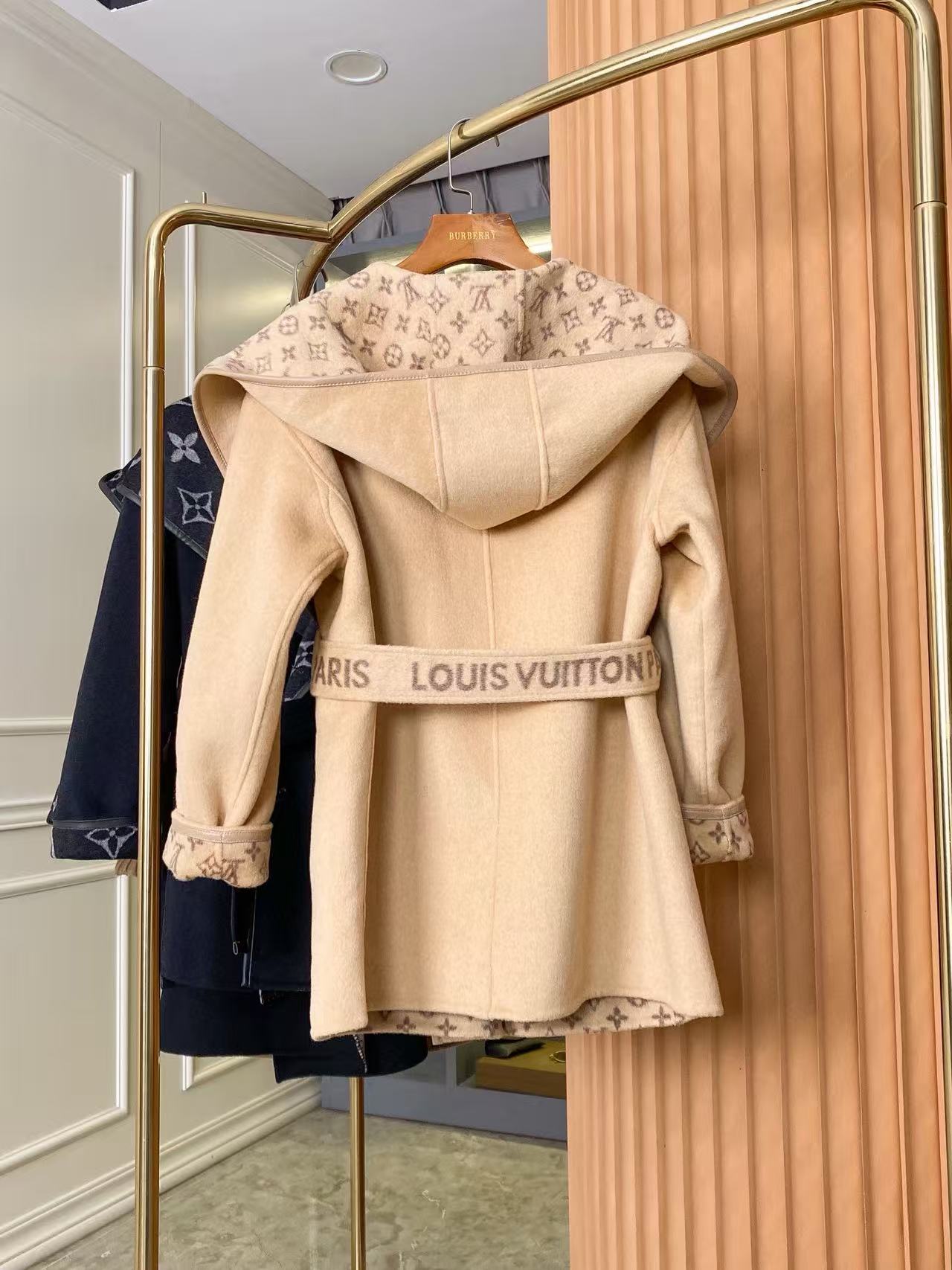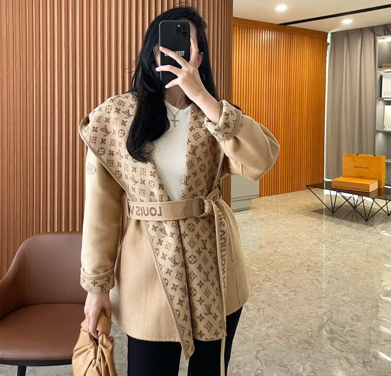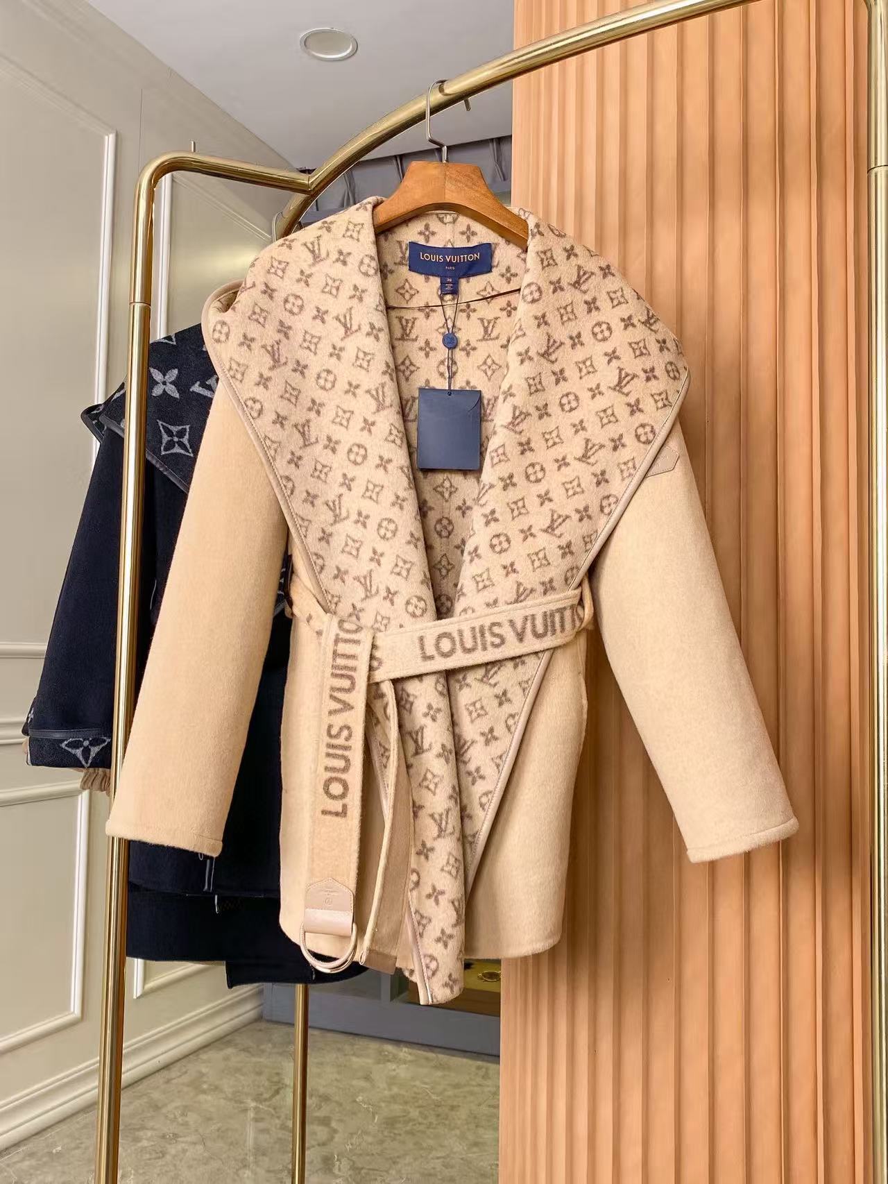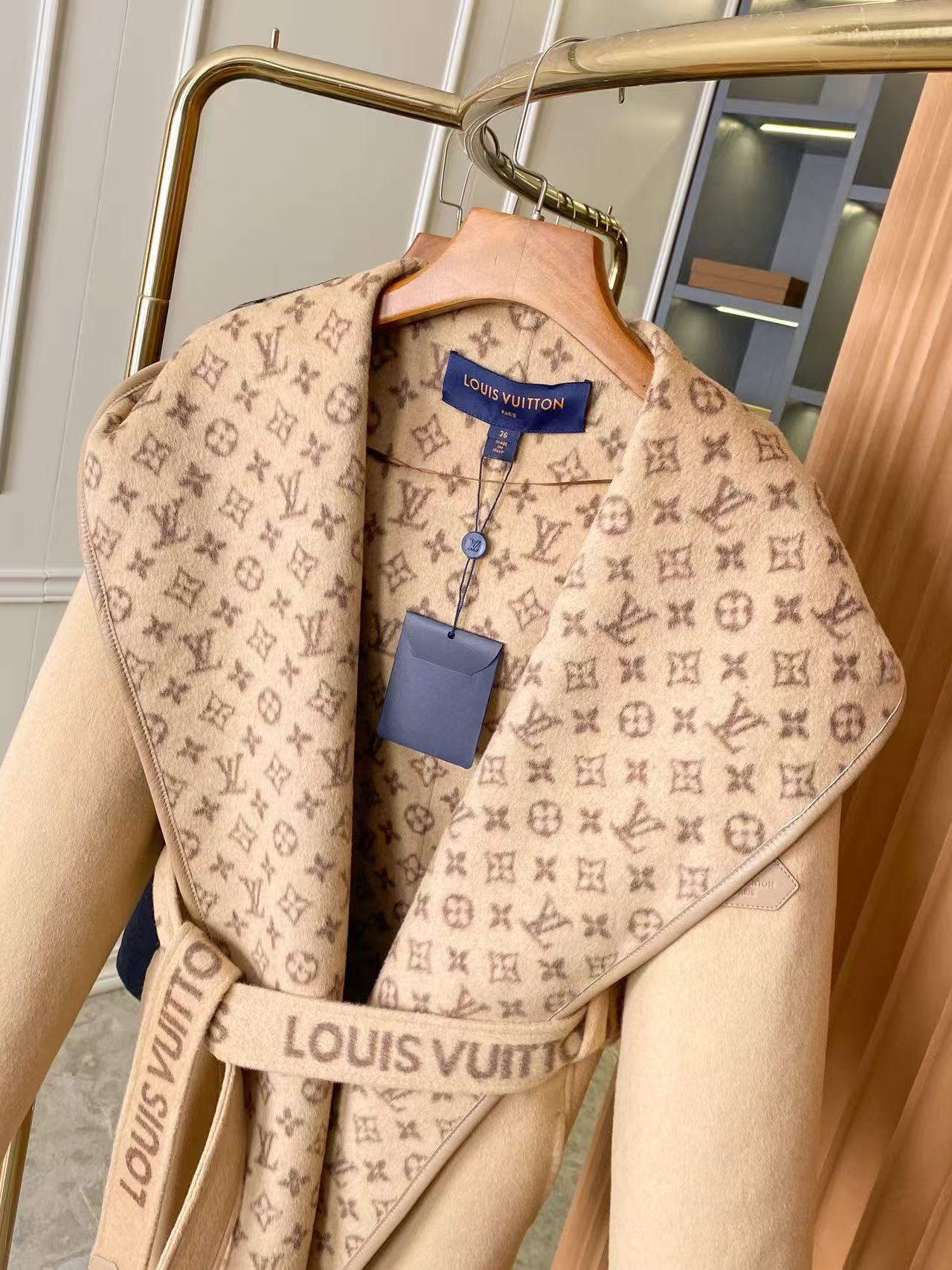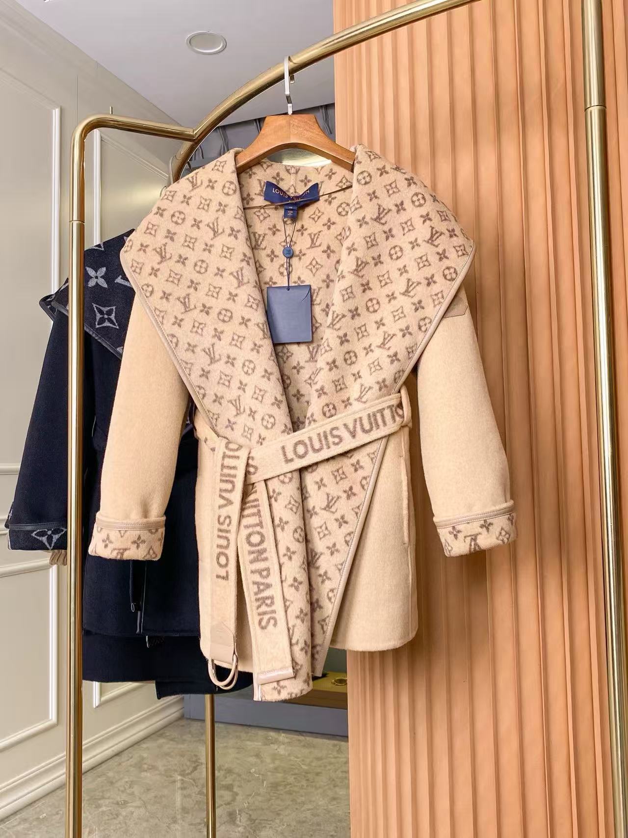 特別值得一提的是,這件大衣的內裡,有著深邃又清晰的 Monogram 提花,這才是這款大衣真正的靈魂!它完全不是市面上那種模糊不清的普通貨色,而是將品牌的精髓融入了面料的每一寸肌理,質感真的沒話說。