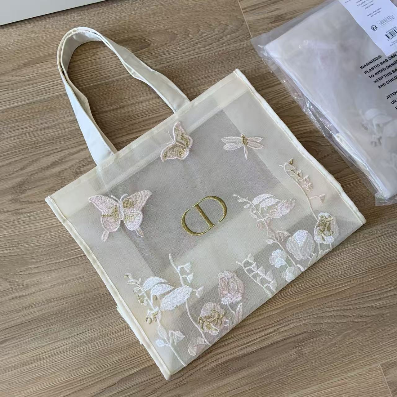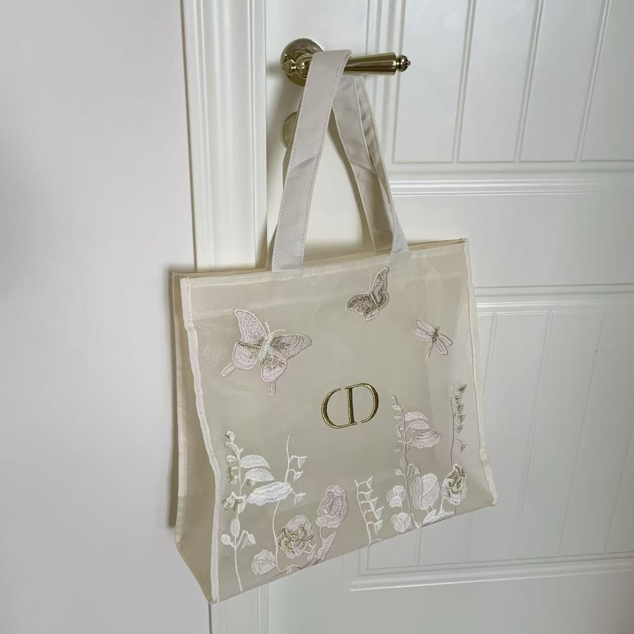 早春重磅特惠福利-D家 蝴蝶刺繡網紗托特包