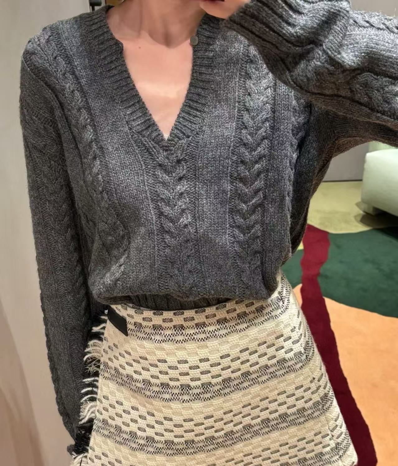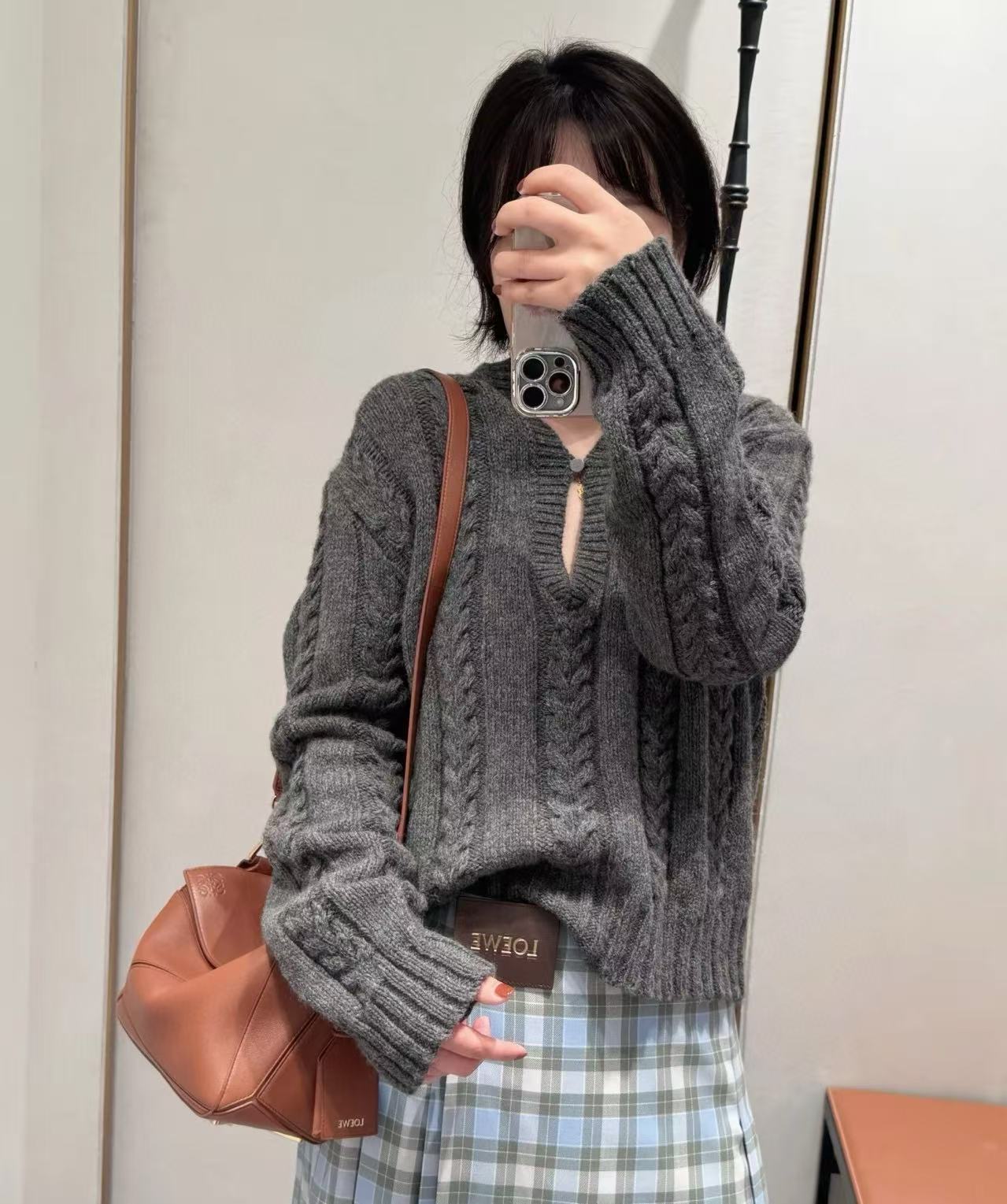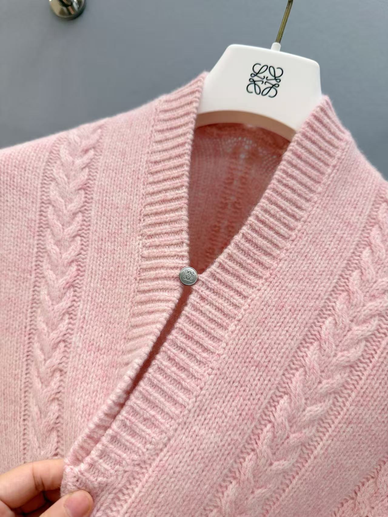 2025早秋  LEW家 麻花 V 領針織毛衣