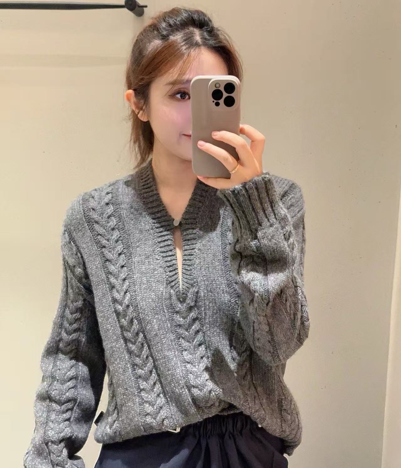 以經典麻花辮針織結構搭配簡約 V 領設計,