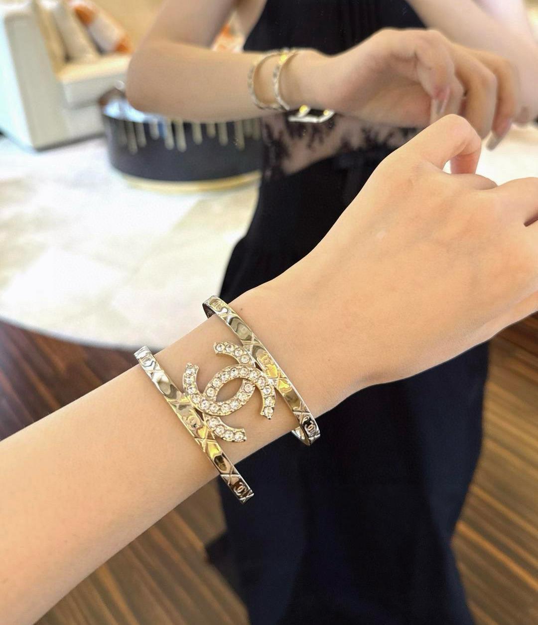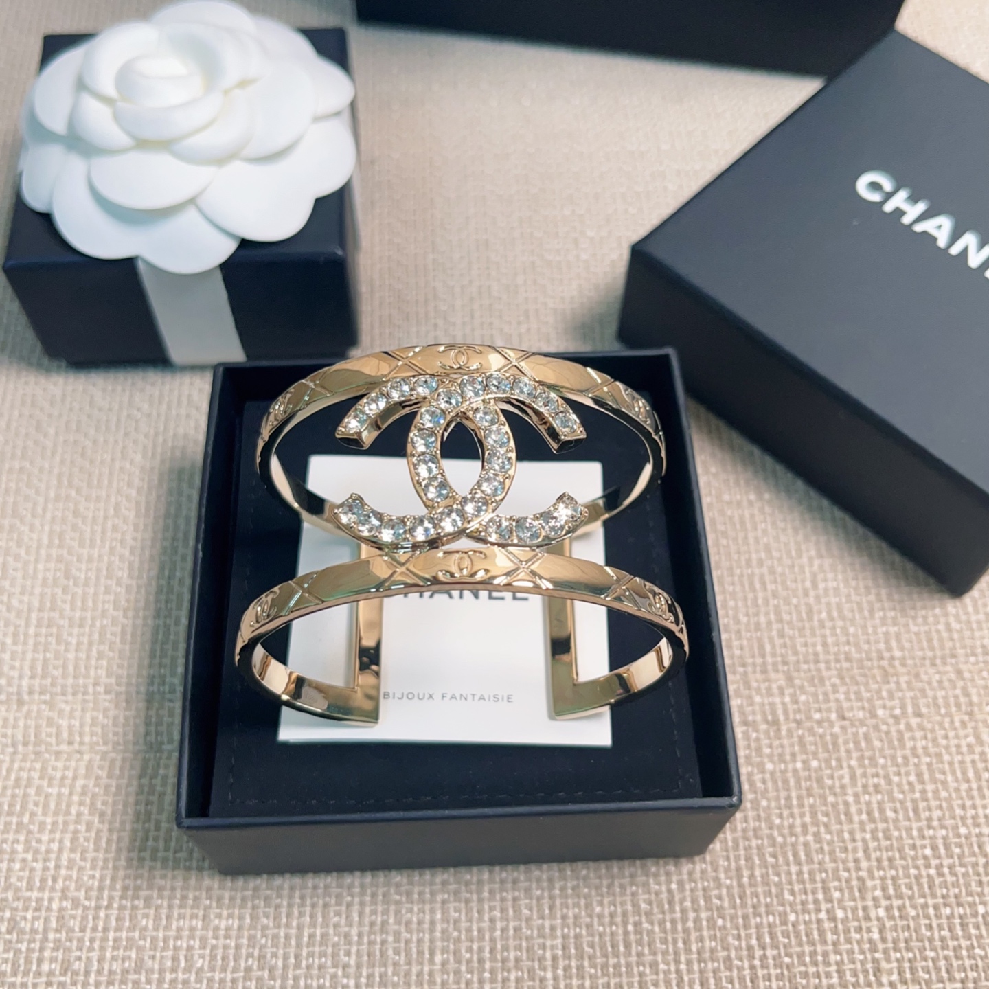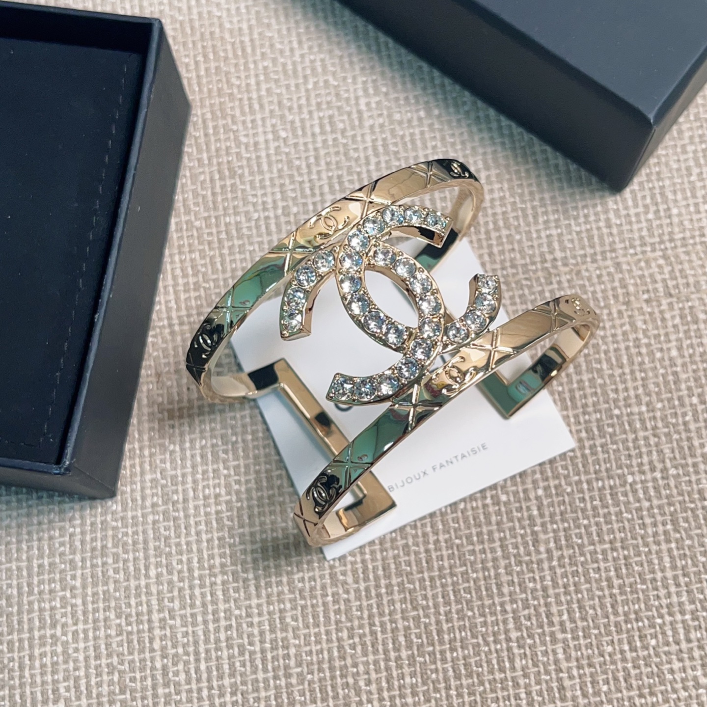 2025春夏新品 C家 滿鑽雙C開口寬手鐲