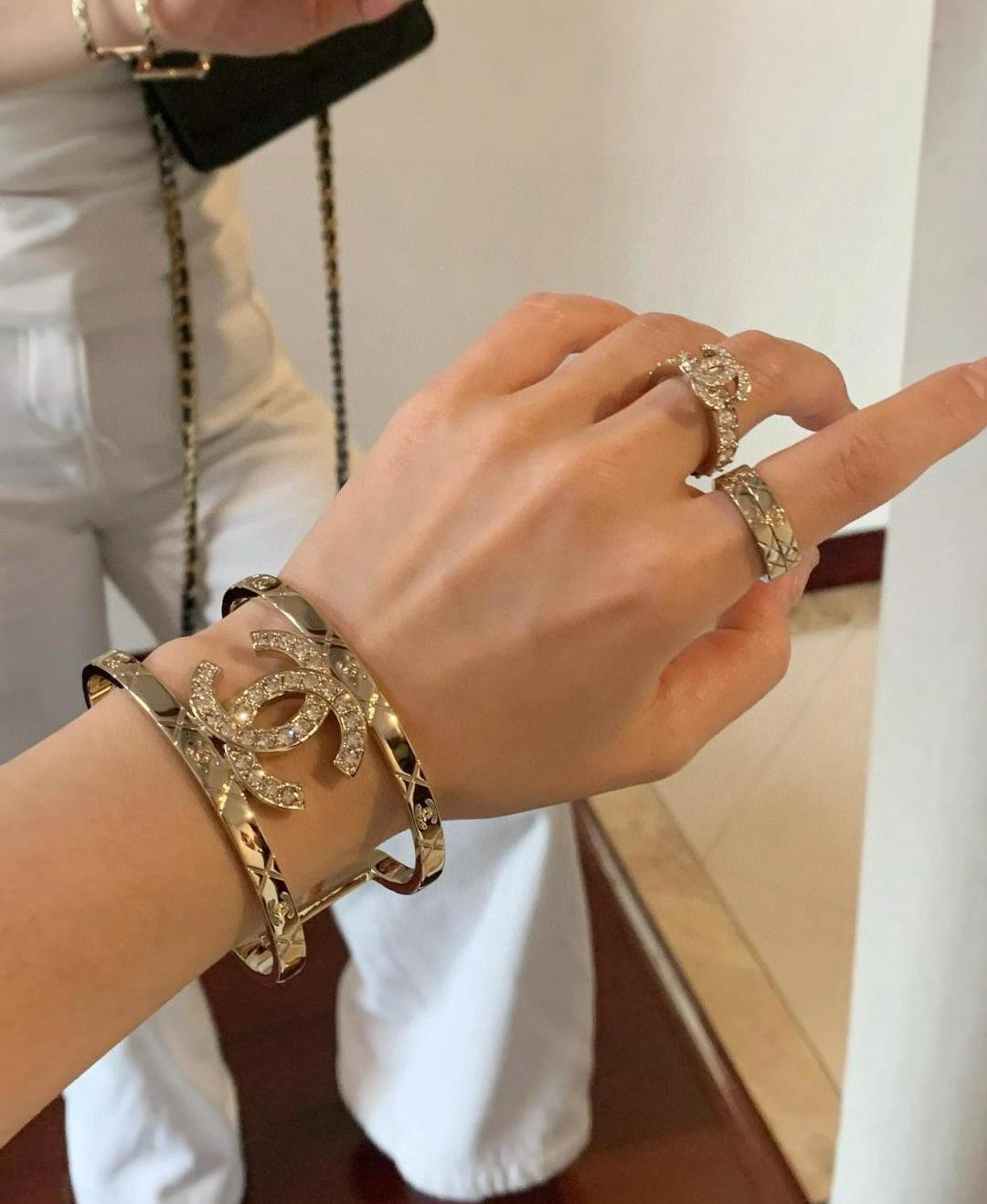 那經典的雙C Logo以滿鑽形式呈現,在光線下閃爍璀璨,無論是單戴或疊戴,都能瞬間提升整體穿搭質感,展現出精緻又自信的女性魅力。