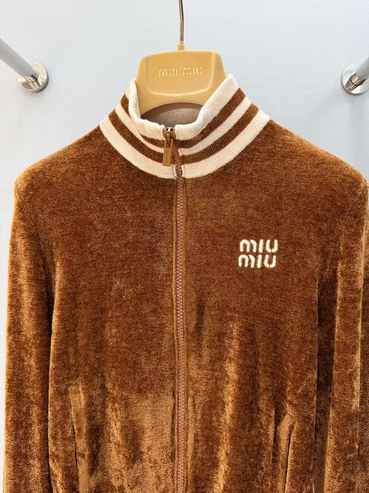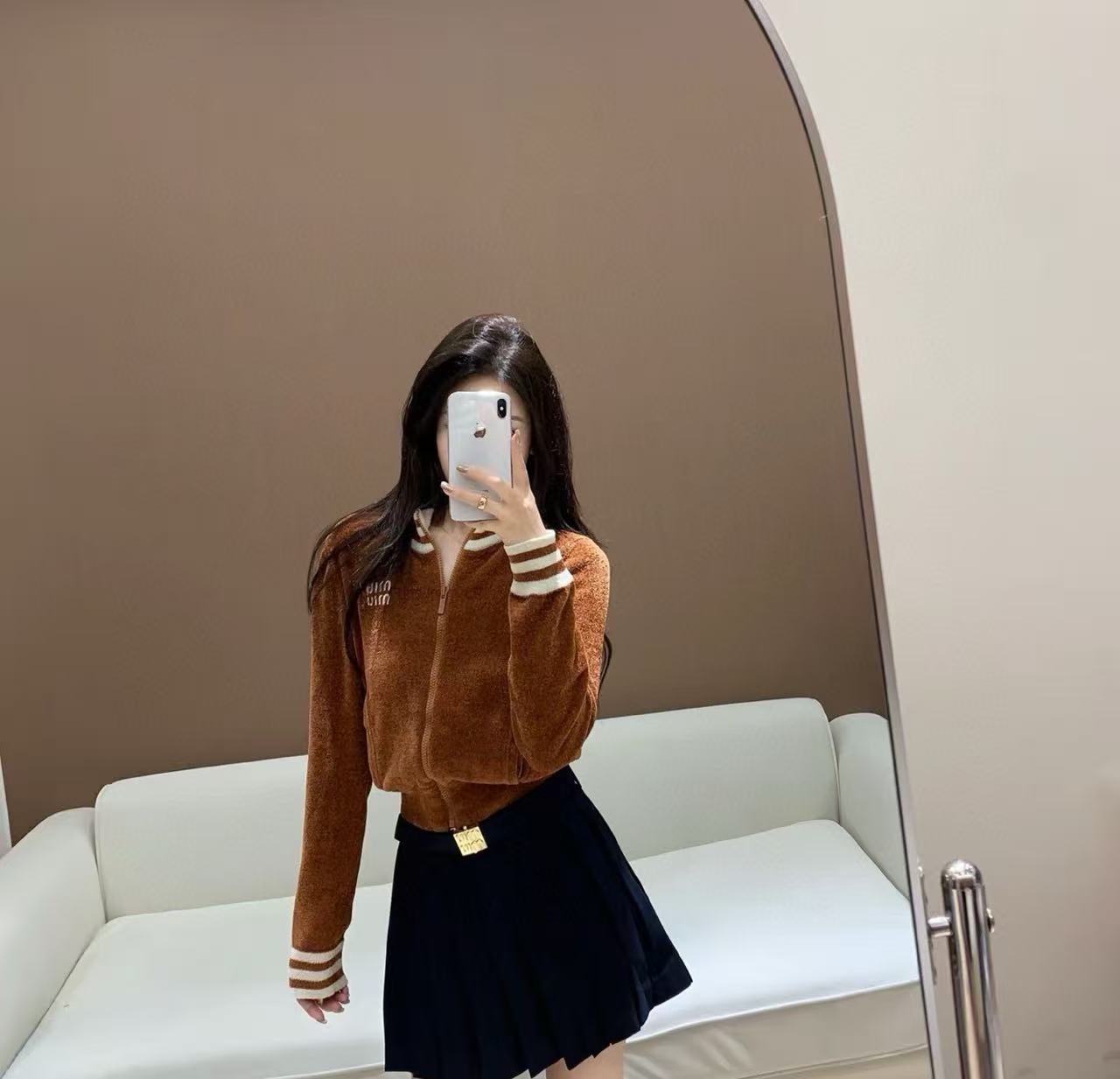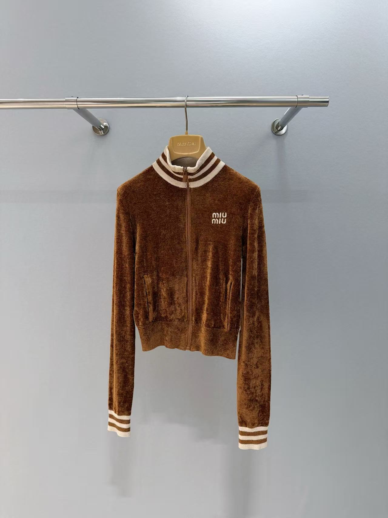 2025早秋 Miu家 徽標焦糖色拉鏈開衫