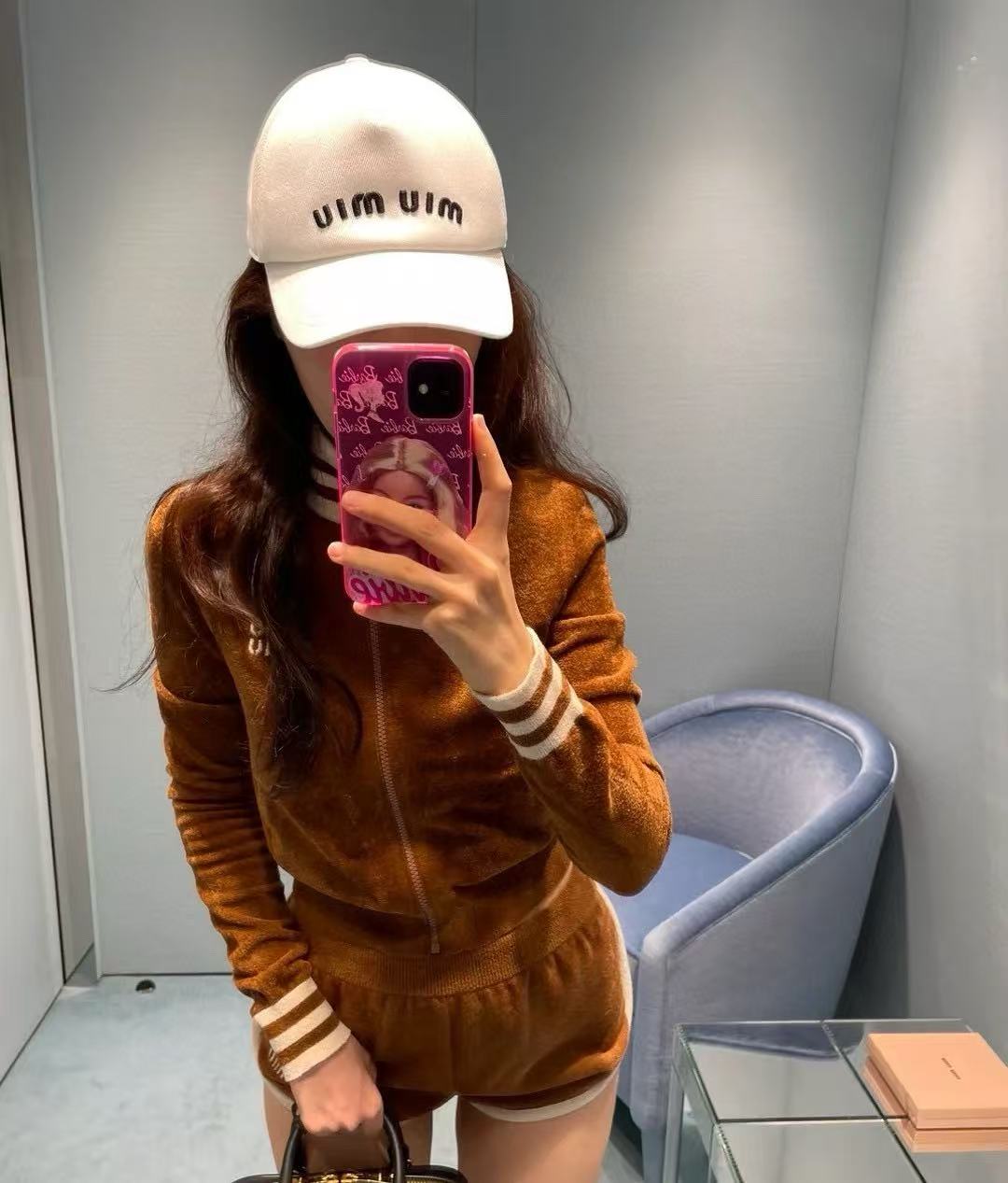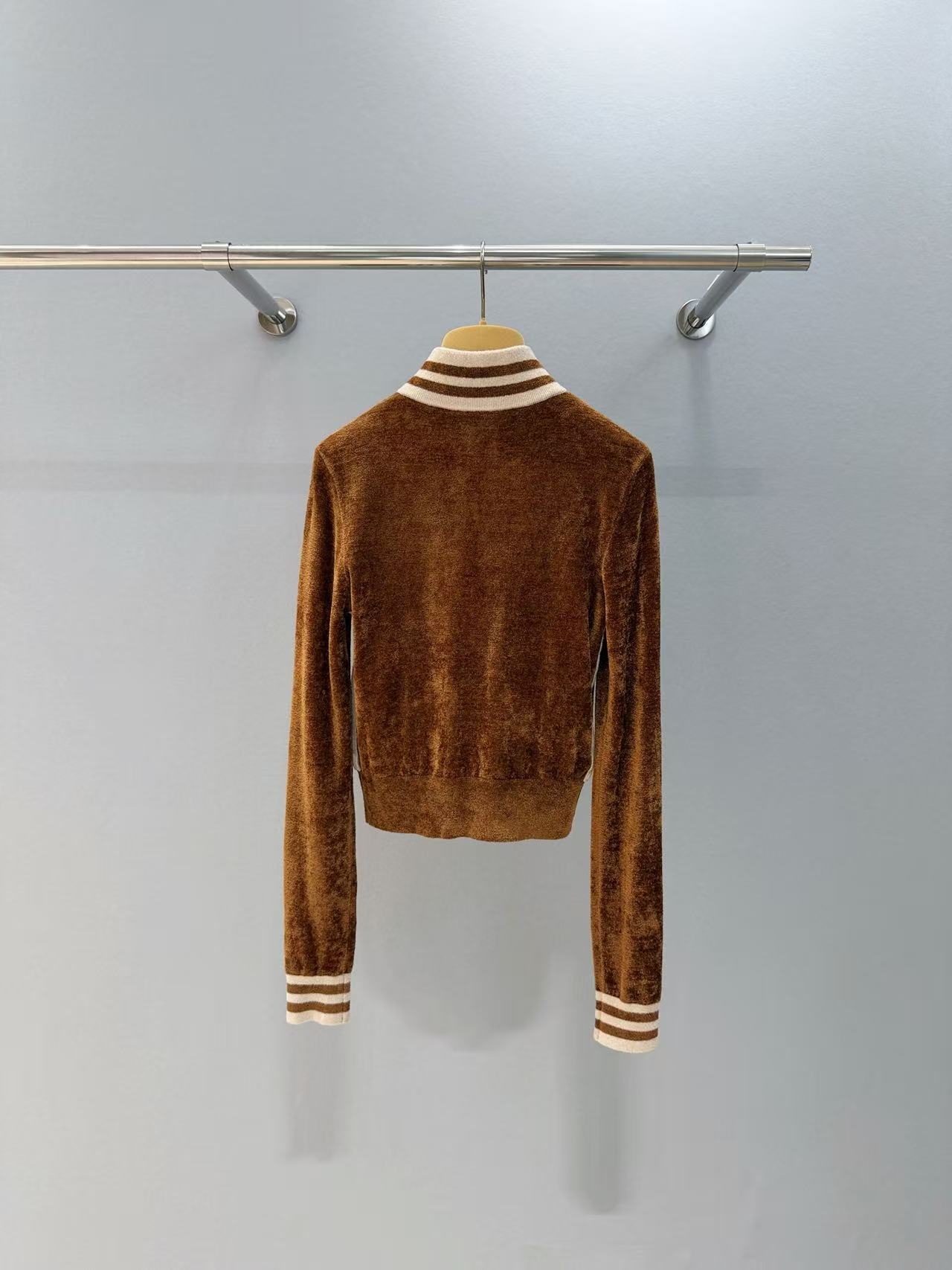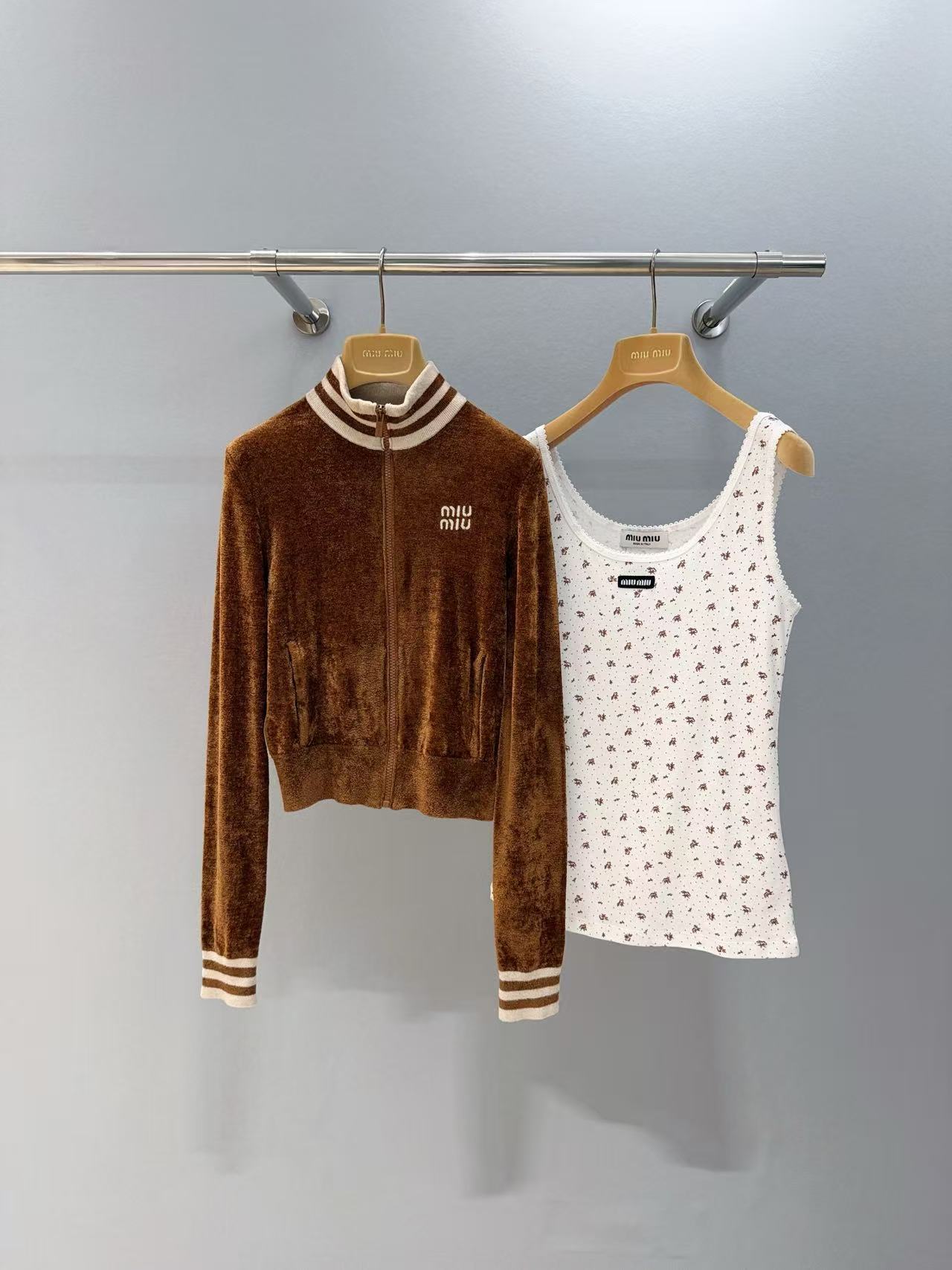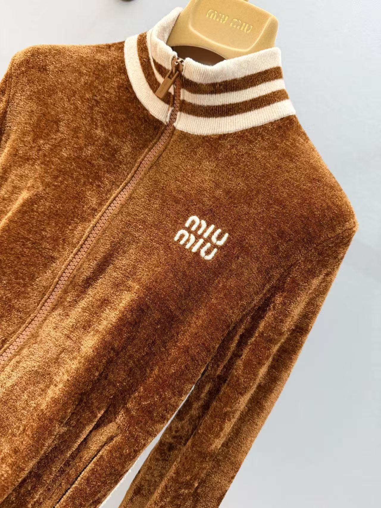 2025早秋 Miu家 徽標焦糖色拉鏈開衫
