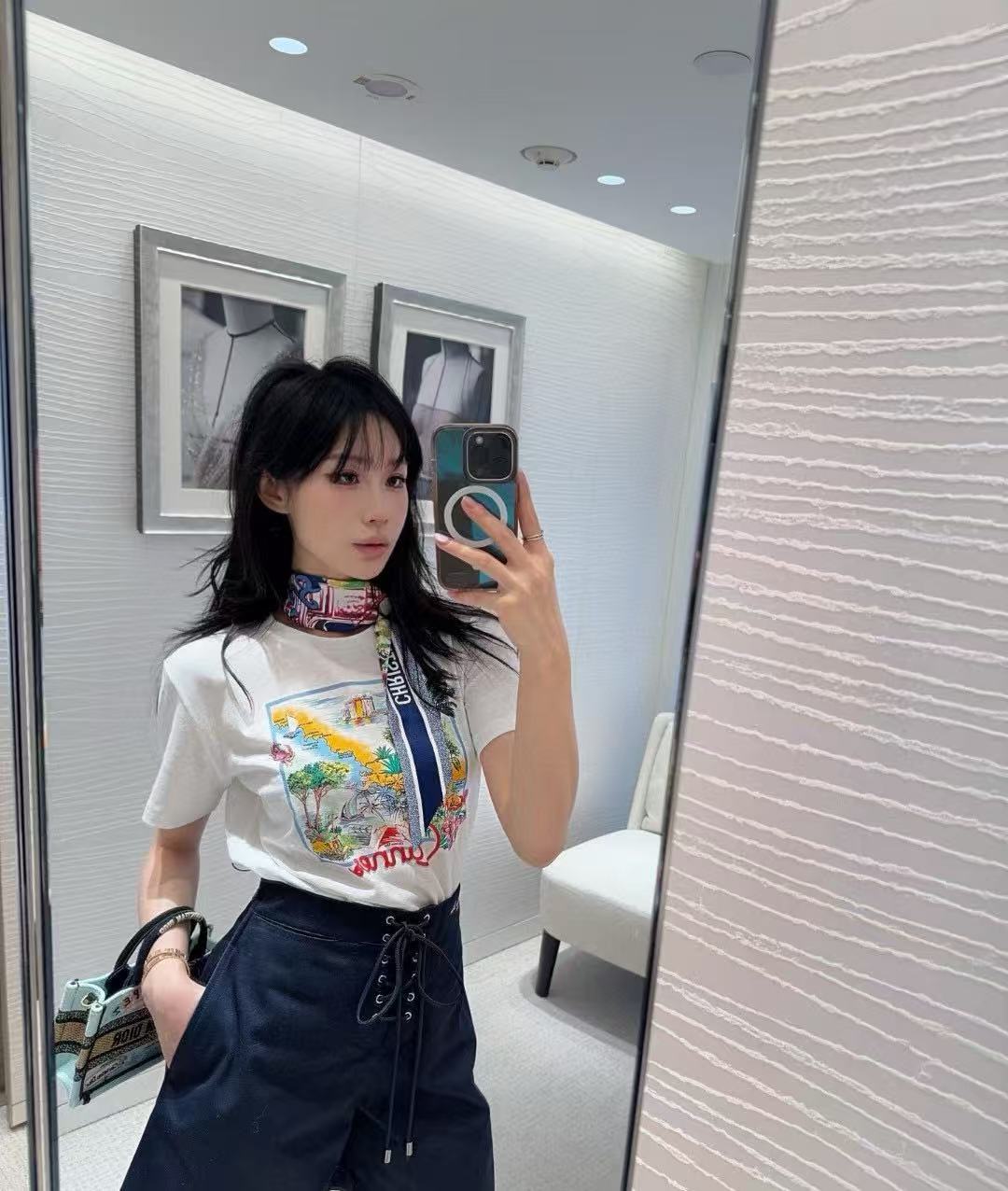 將城市景緻與柔和光影轉化為迷人的印花圖騰,既詩意又充滿夏日感。整體風格偏氣質少女風,帶有一點減齡的甜美感,低調中又不失設計感。