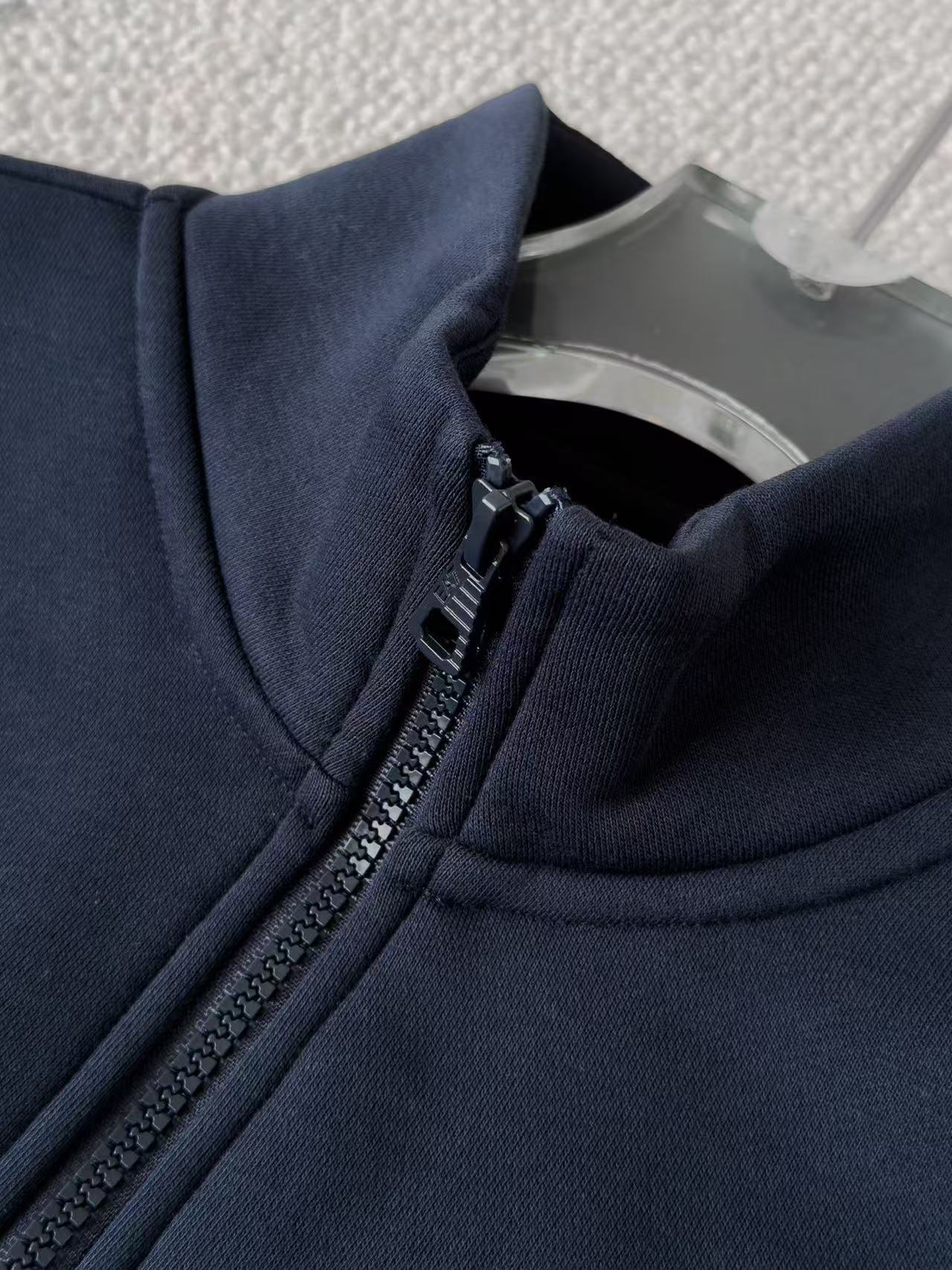 四分之三半拉鍊立領: 立領設計增添了幾分乾練和帥氣,具有支撐感。四分之三的拉鍊設計,可以自由調節領口大小和造型,拉上顯得精神利落,拉開可當作小翻領,更具休閒感,同時增加穿搭層次感。