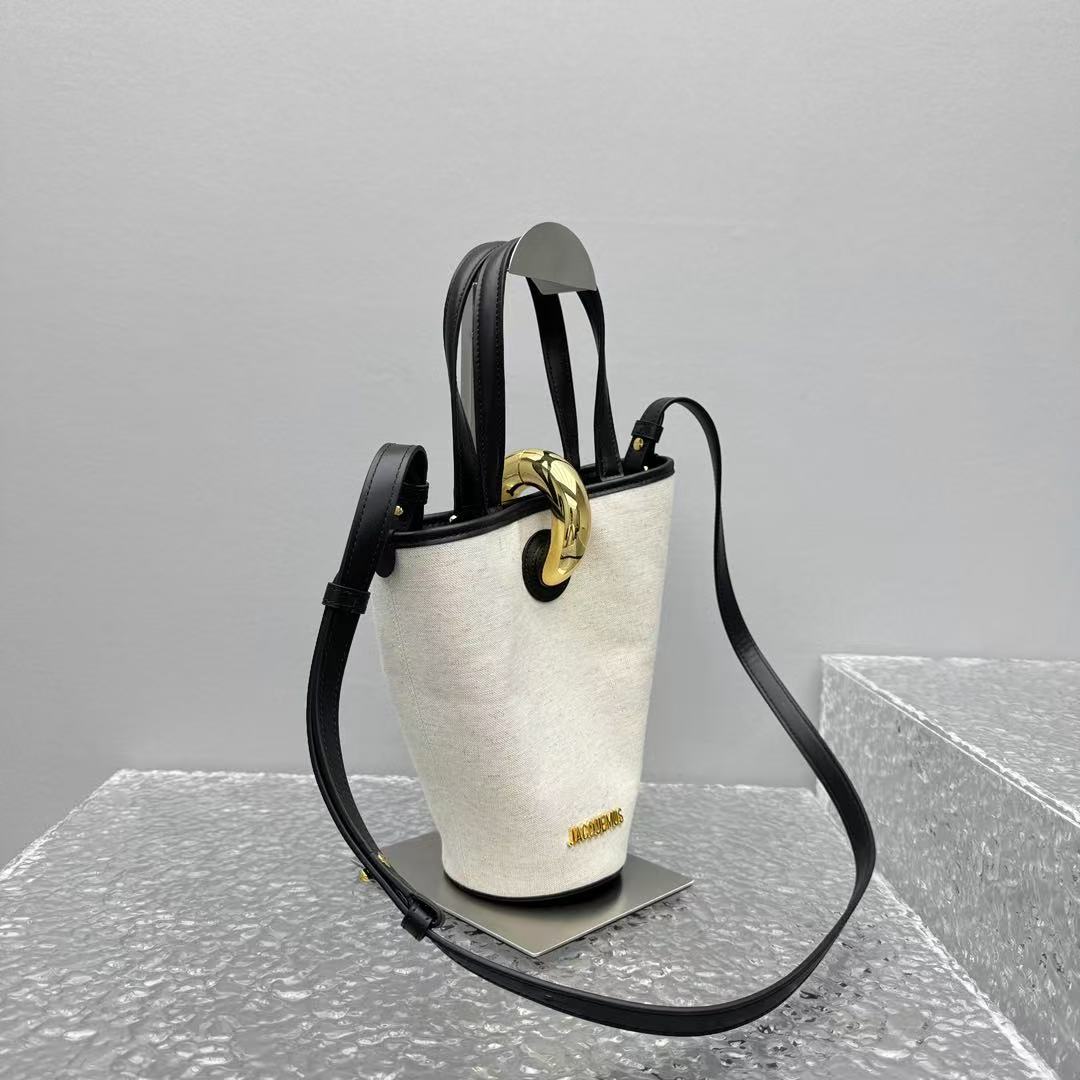 這款Le Petit Bambo手提包以不對稱菜籃子造型顛覆傳統,打破常規的設計感讓人一秒愛上!標誌性大金屬扣飾是全包的吸睛亮點,閃耀的金屬光澤為簡約造型增添一抹奢華氣息,視覺效果直接拉滿!尺寸(底長10cm x 寬10cm x 高20cm)小巧精緻,容量卻足夠日常使用,輕鬆收納手機、錢包和化妝品等隨身物品。帆布拼皮設計打造出簡約而不簡單的質感,無論是手提還是單肩背,都能輕鬆拿捏優雅與隨性的完美平衡。從日常通勤到週末約會,這款包都能為你的造型加分,展現獨特的時尚態度!