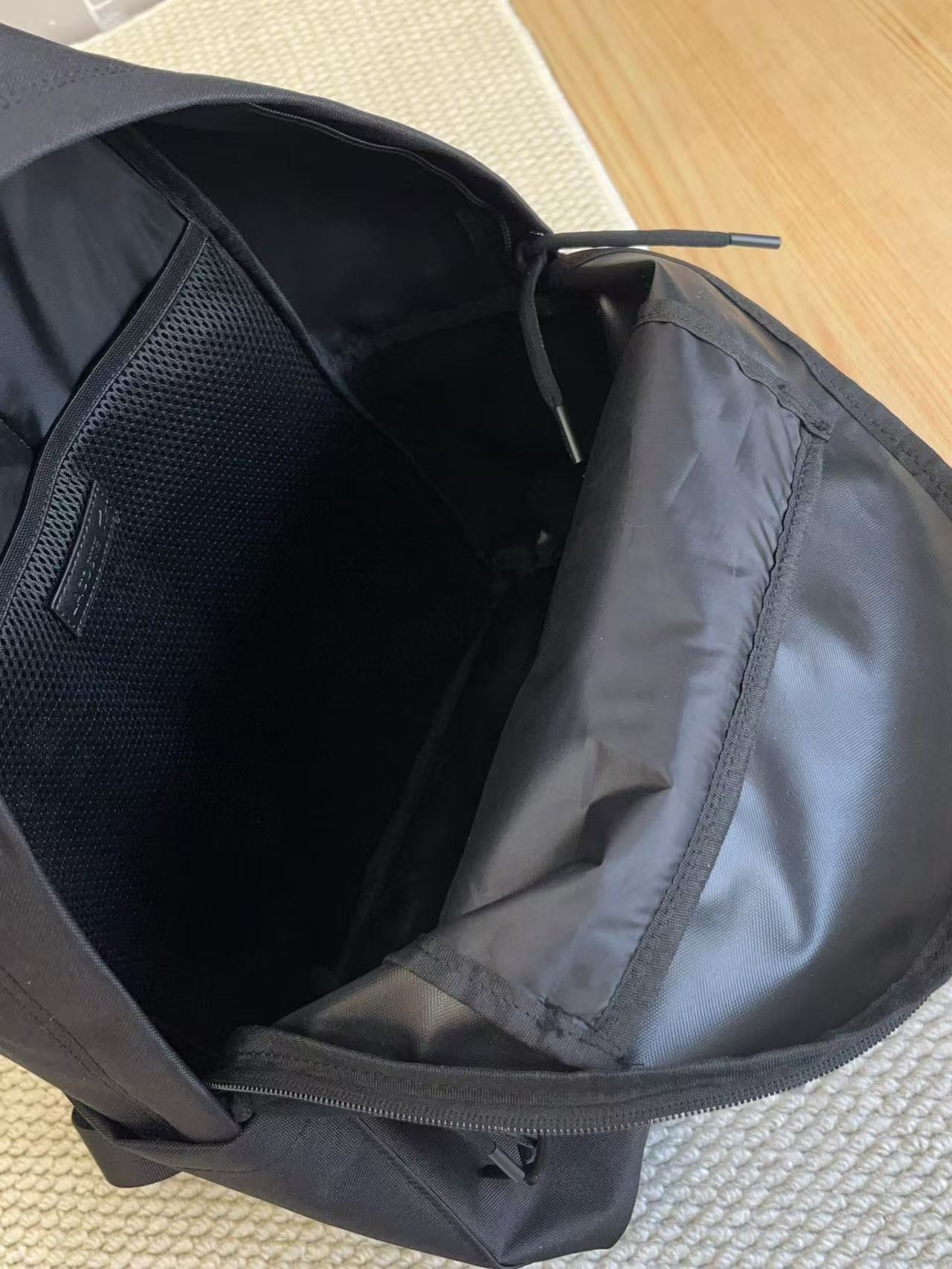 純黑色的俐落廓形 搭配特殊的質地光澤,散發出一種低調卻高級的高街氣息。