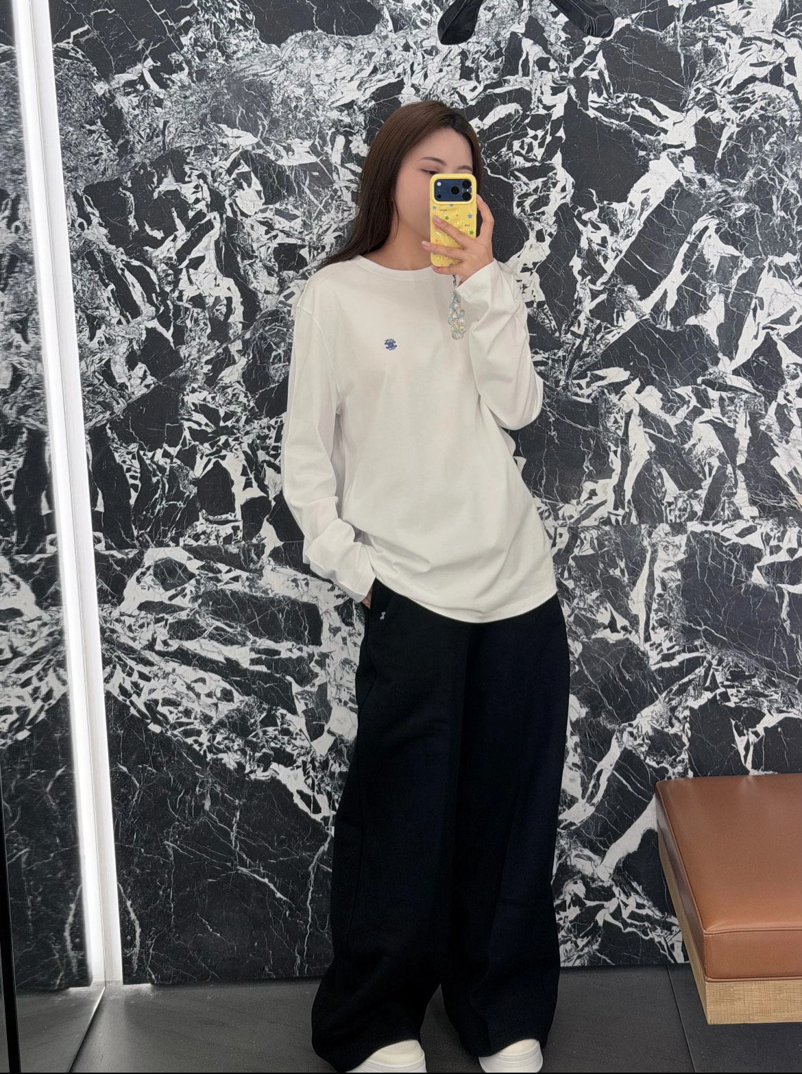 胸前以低調精緻的刺繡點綴,沒有過多裝飾,卻讓整體質感立刻升級,簡單卻不單調。