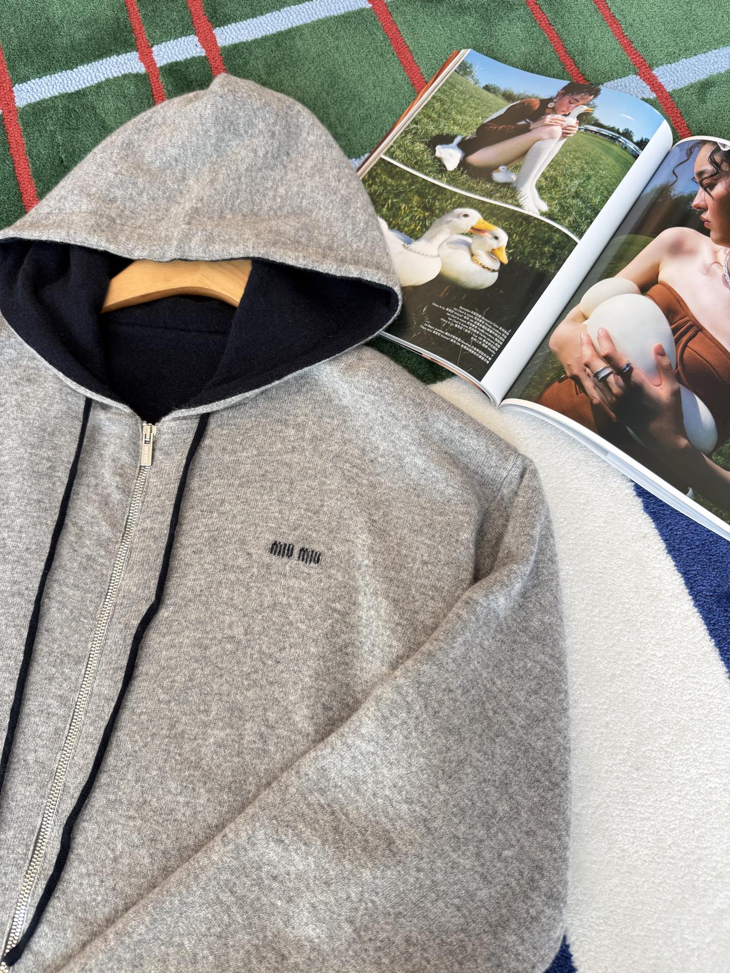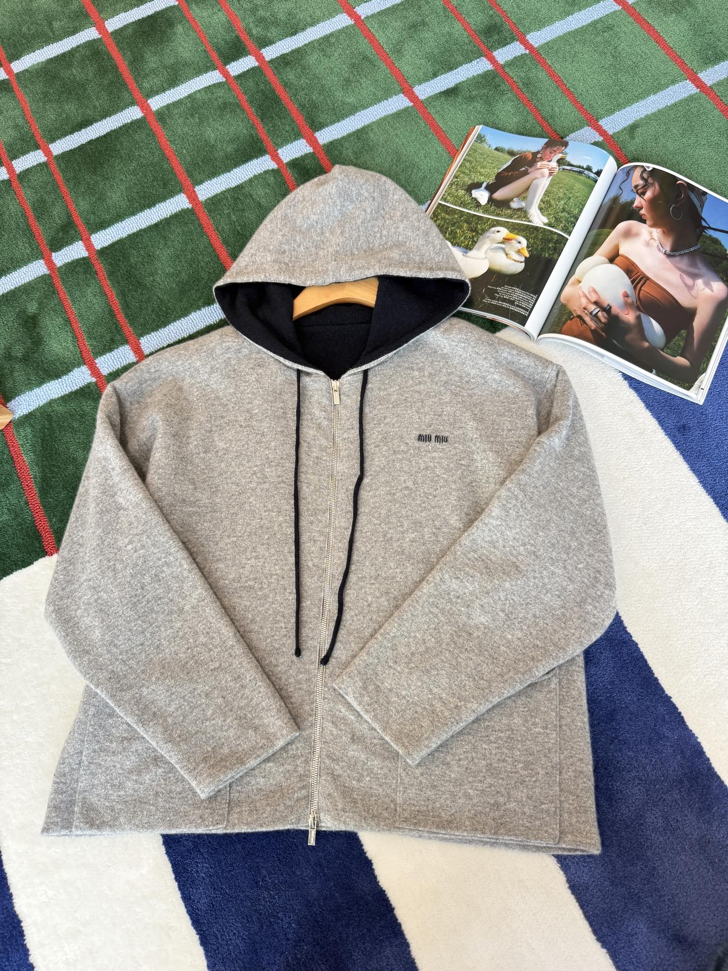 Miu家 雙層羊絨連帽外套
