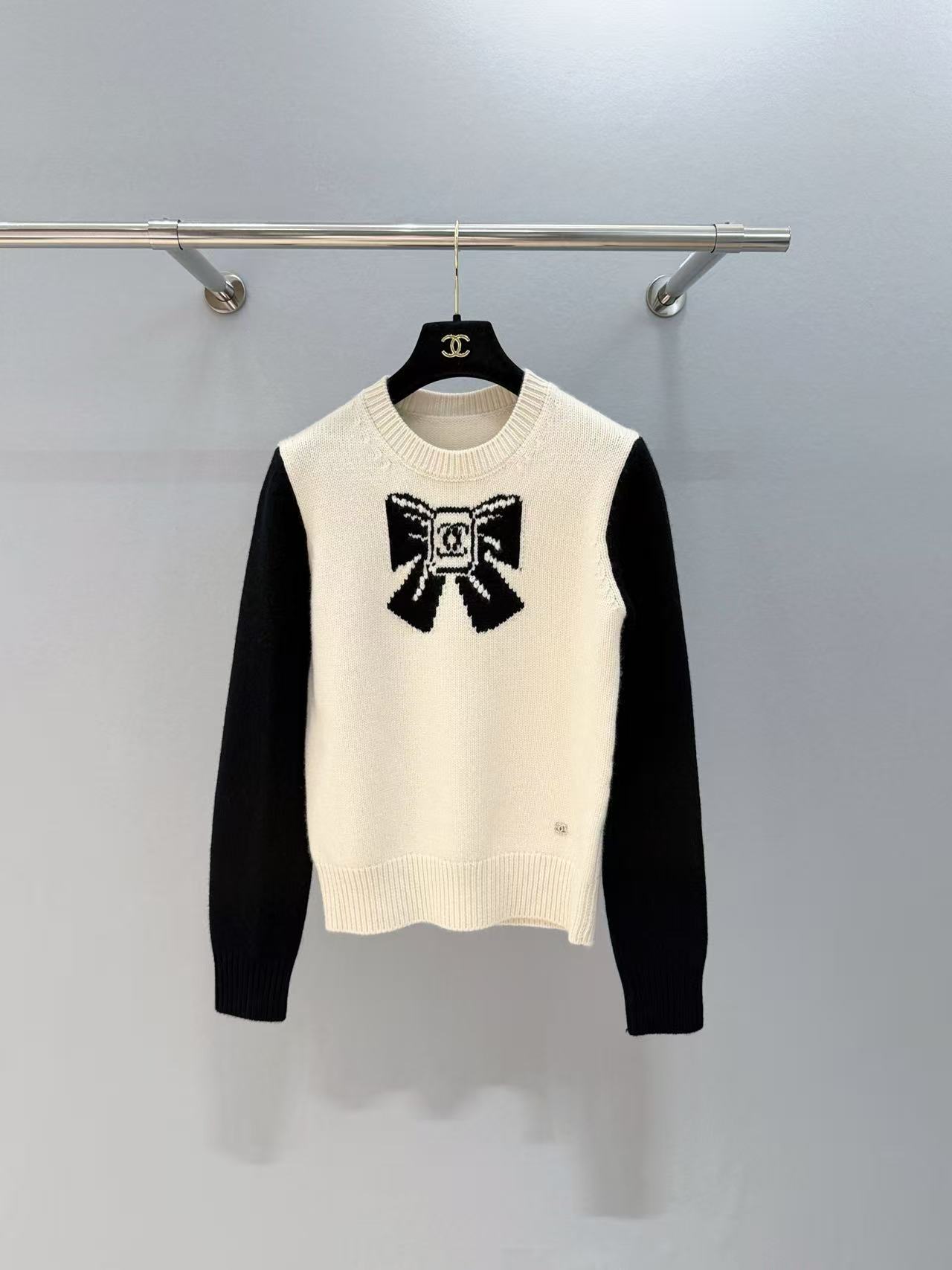2025早秋 C家 黑色蝴蝶結提花羊絨毛衣