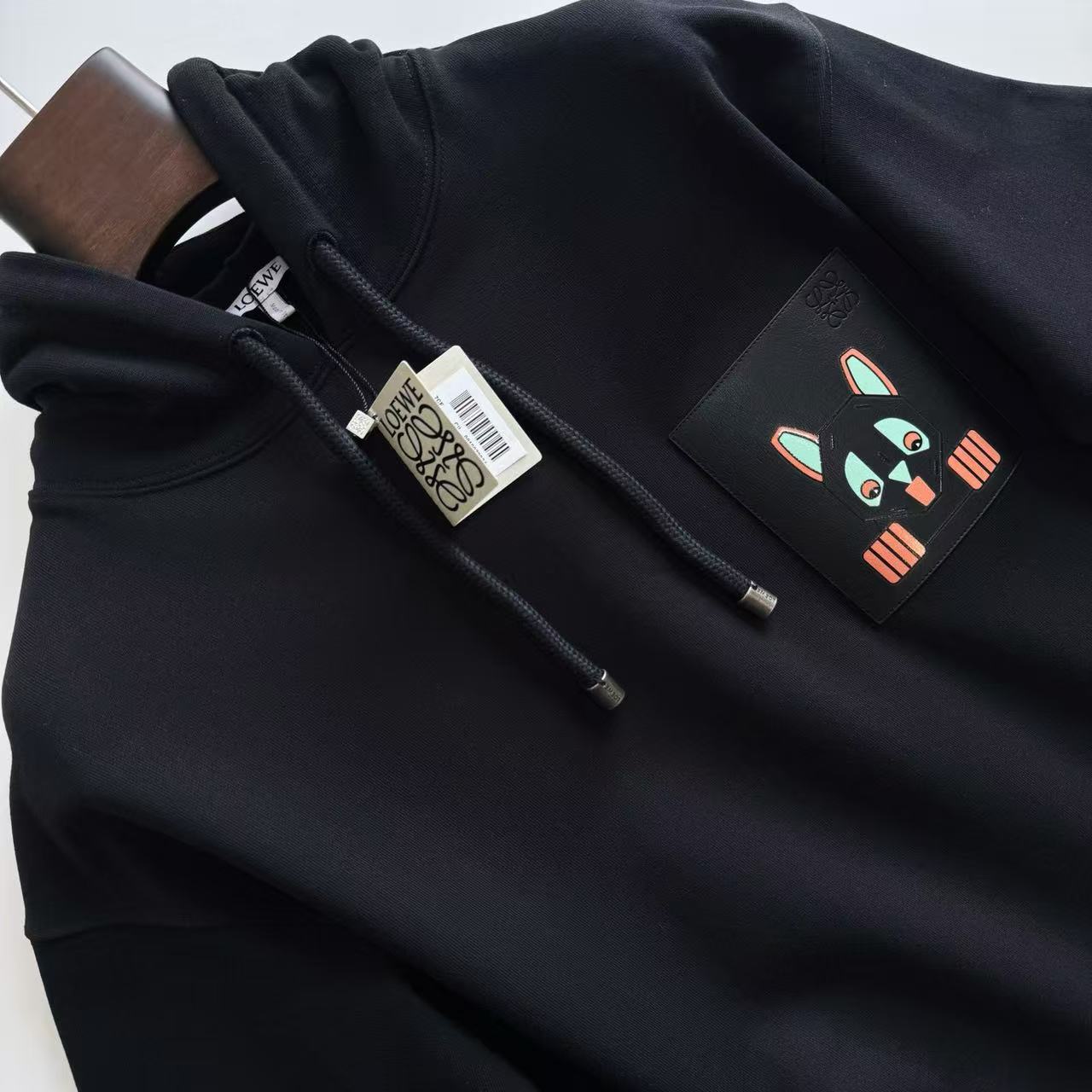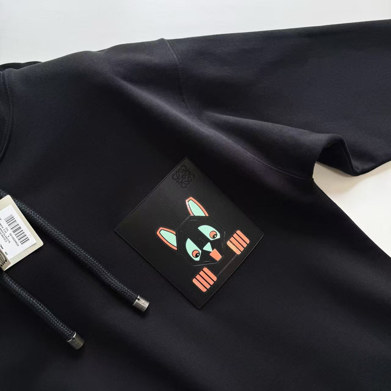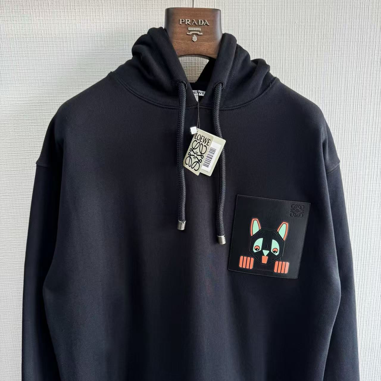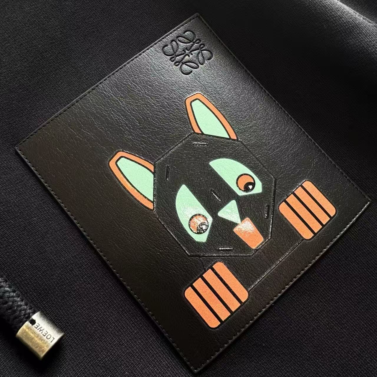 這件衛衣的設計亮點,完全體現在胸前的皮革細節: