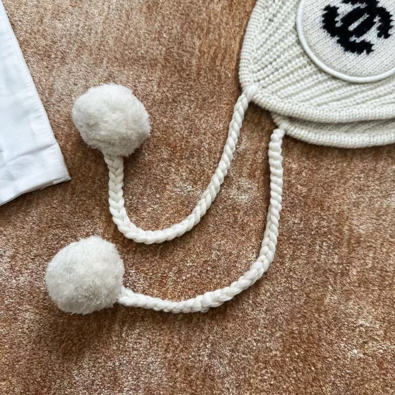 這頂帽子最吸引我的地方就是它充滿層次感的設計!帽子兩側有垂墜感十足的長帶和毛球,讓整頂帽子看起來更有設計感,也更顯可愛。這種低調又奢華的細節,完美展現了品牌格調。