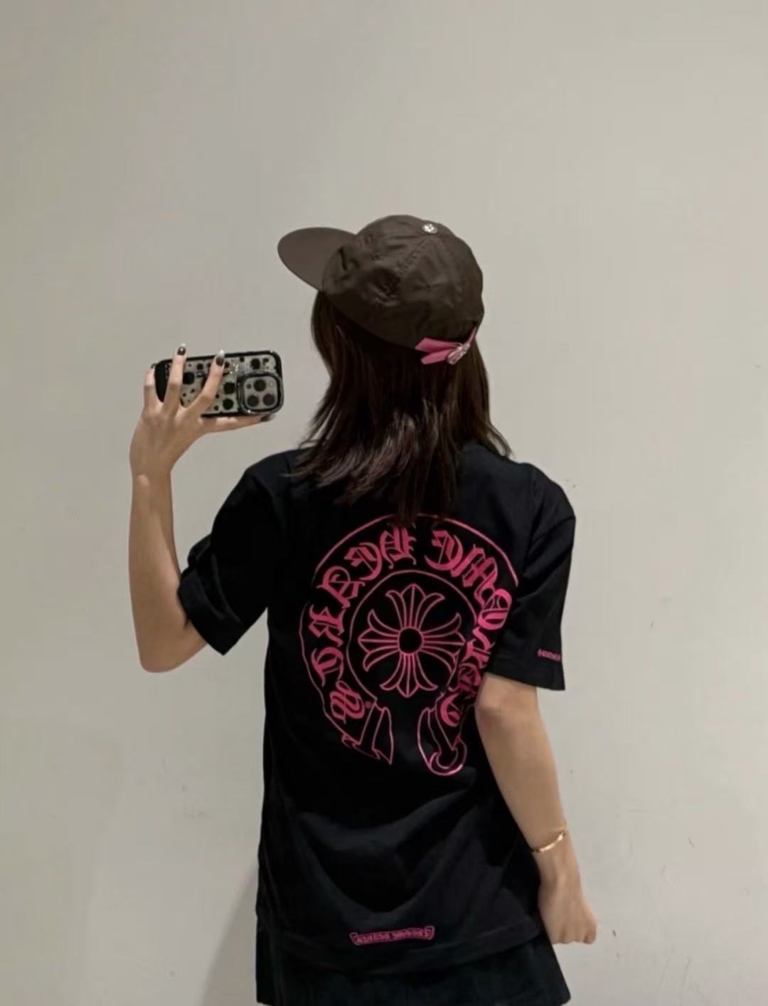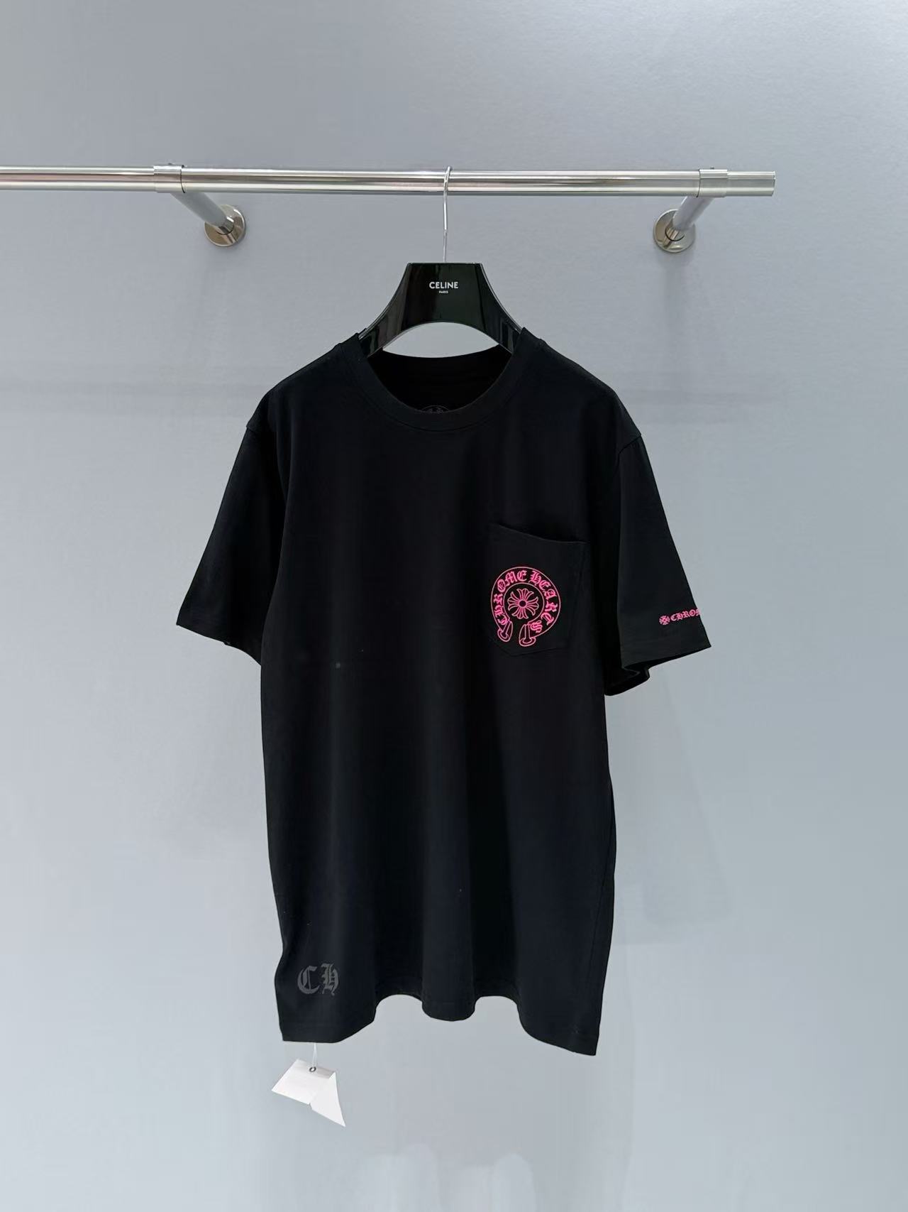 2026早春 CH 克羅心 螢光粉馬蹄印製短袖