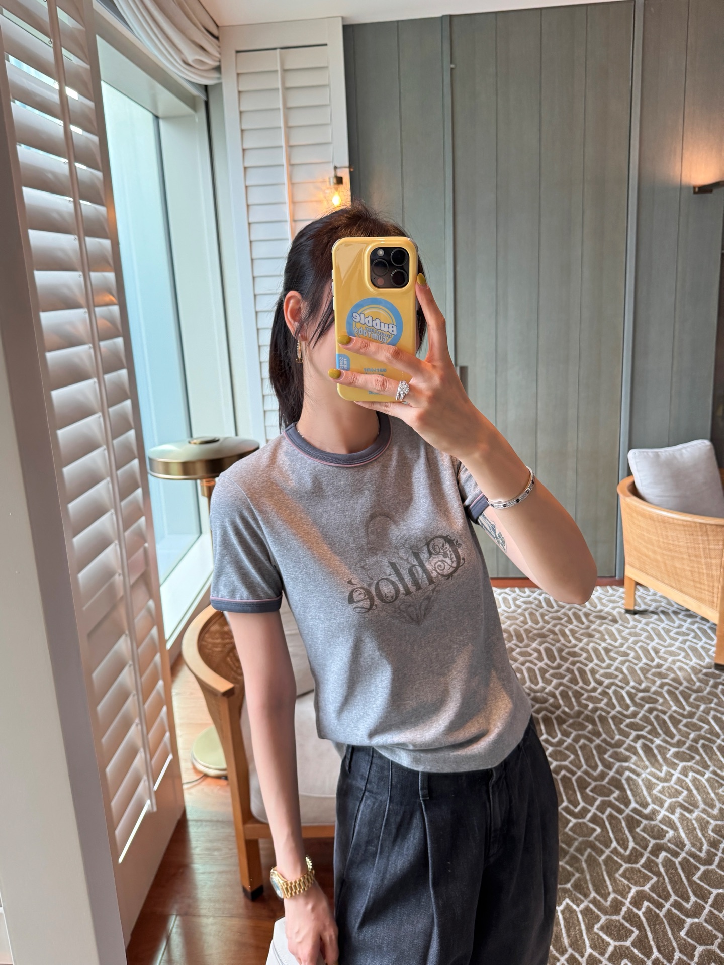 2025秋冬新品 CH家 撞色羅紋印花短袖