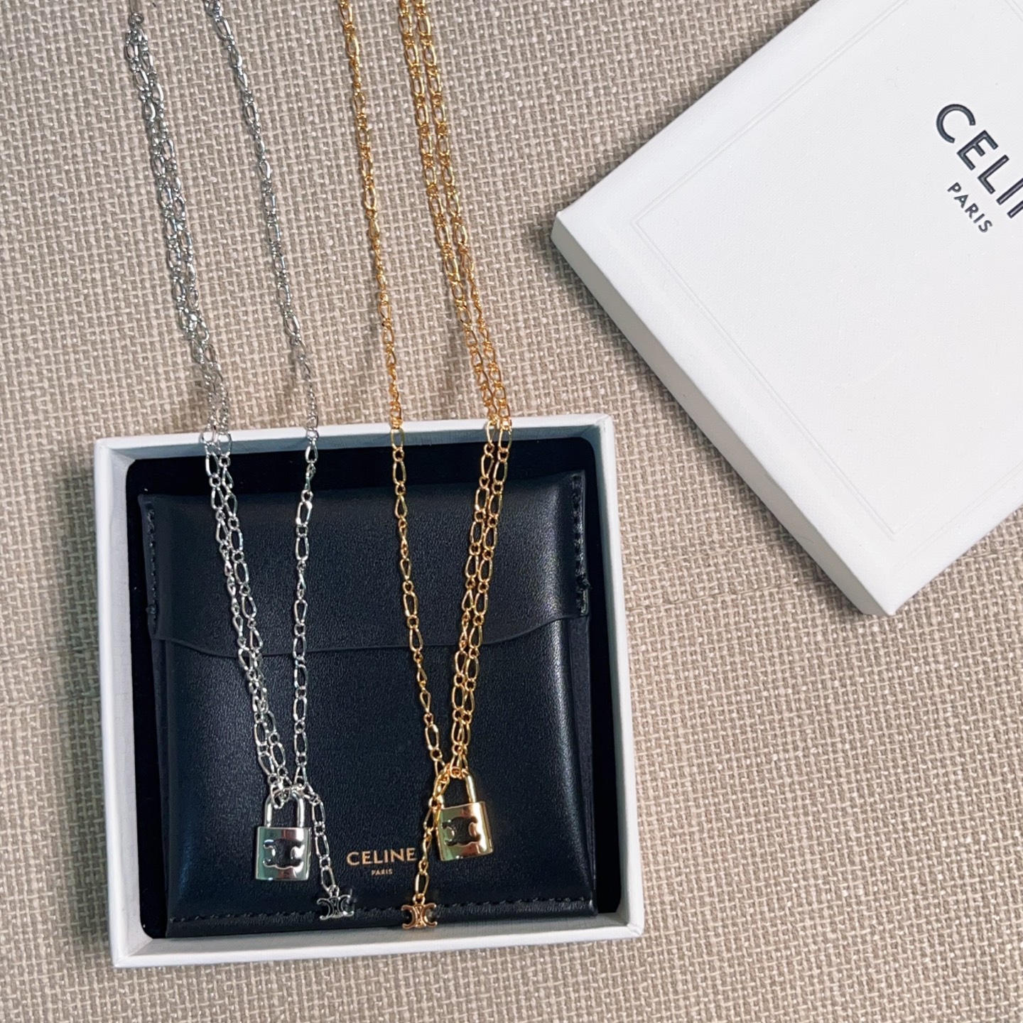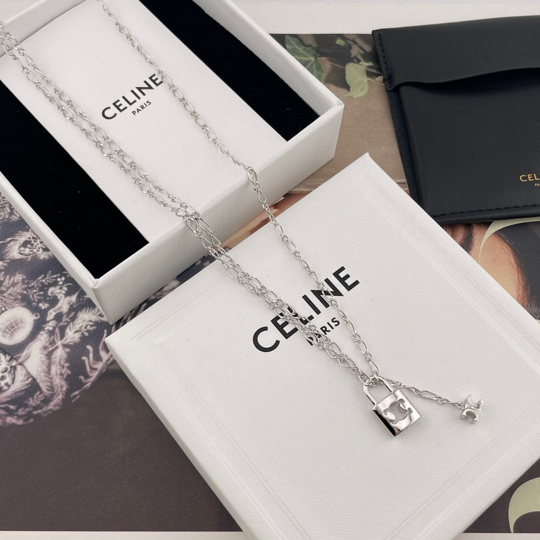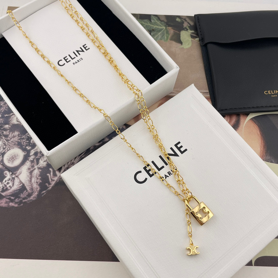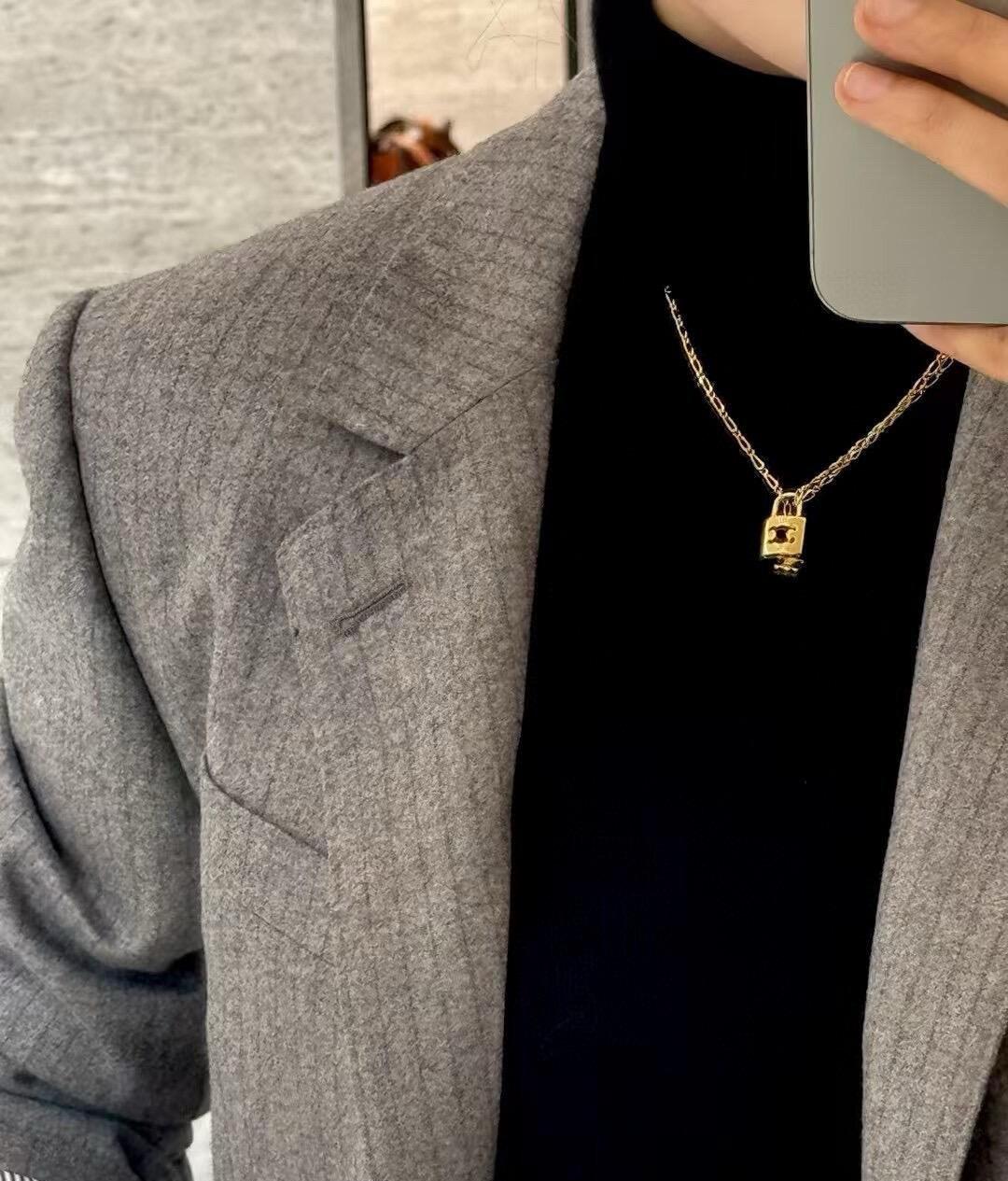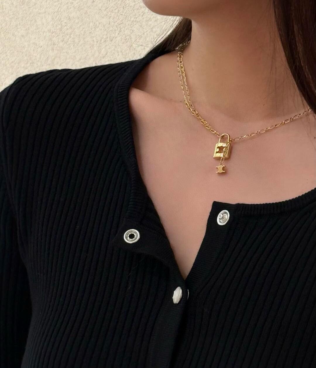 2025早春新品 CE家 鎖頭凱旋門雙墜飾項鍊 劉詩詩同款