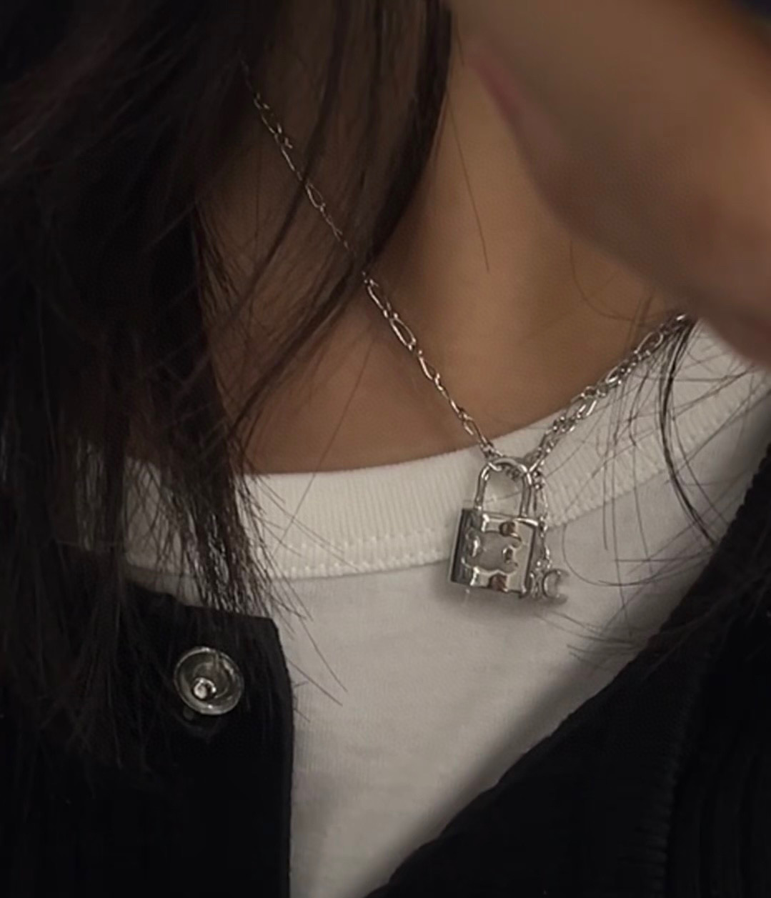 這款項鍊特別推薦搭配素色上衣或低領針織衫,讓吊墜成為視覺重點。