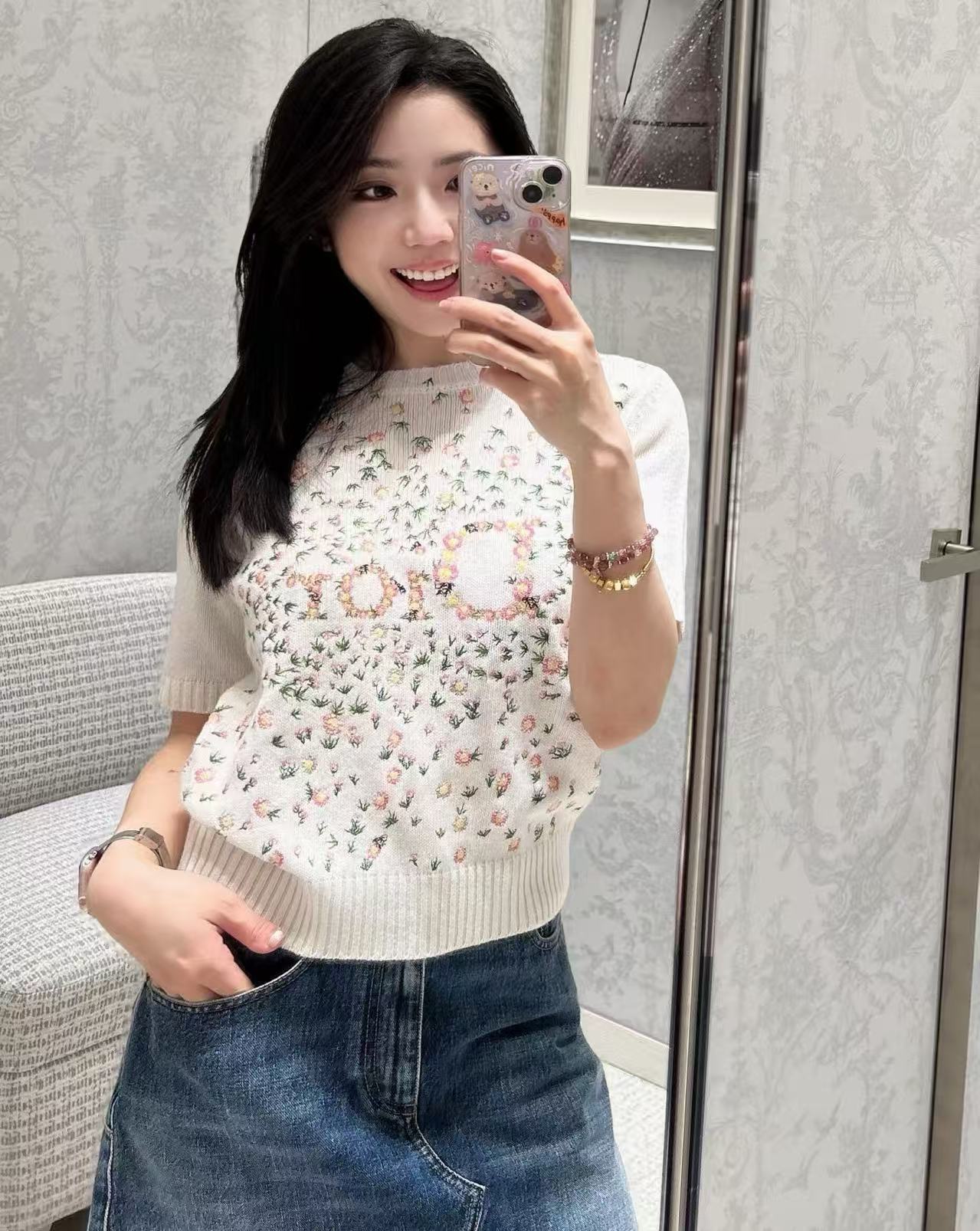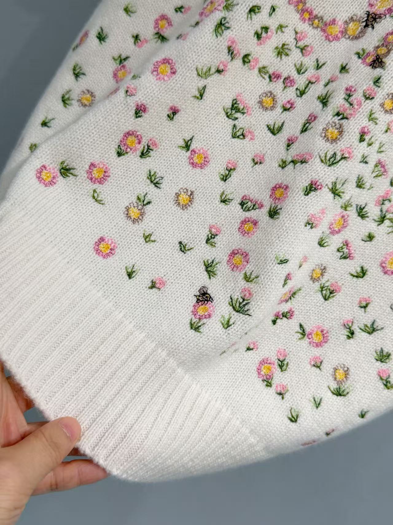 2026早春 D家 滿幅花卉刺繡羊絨短袖