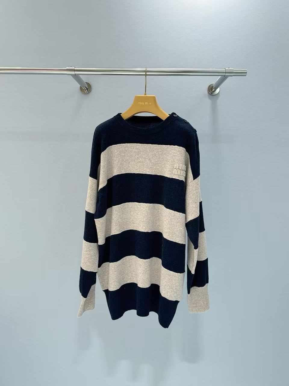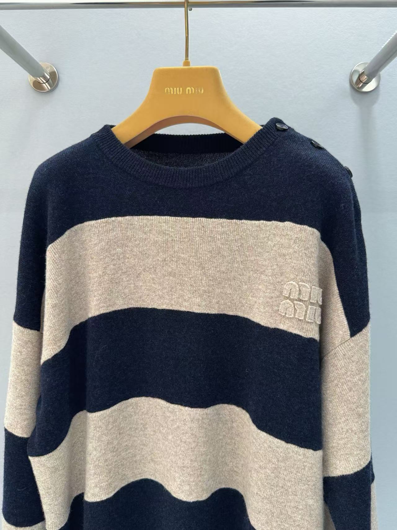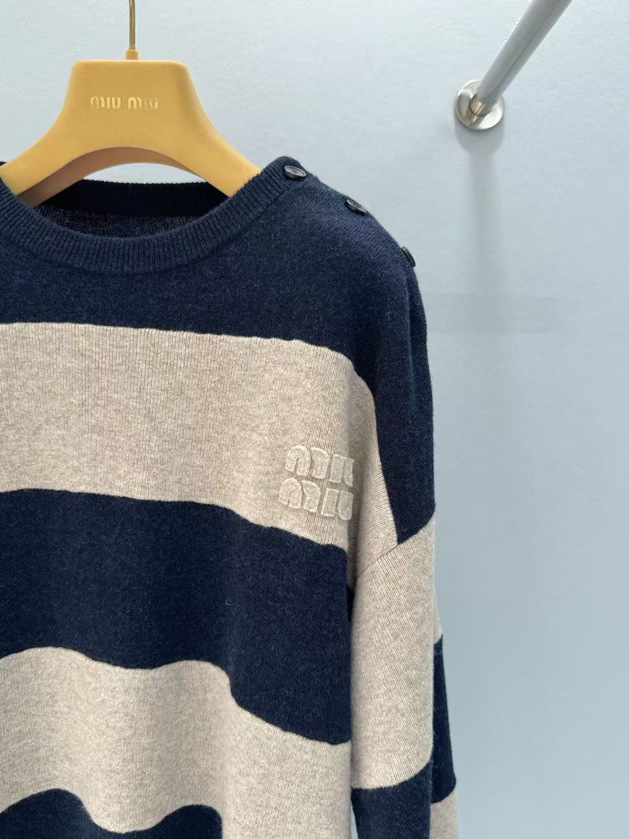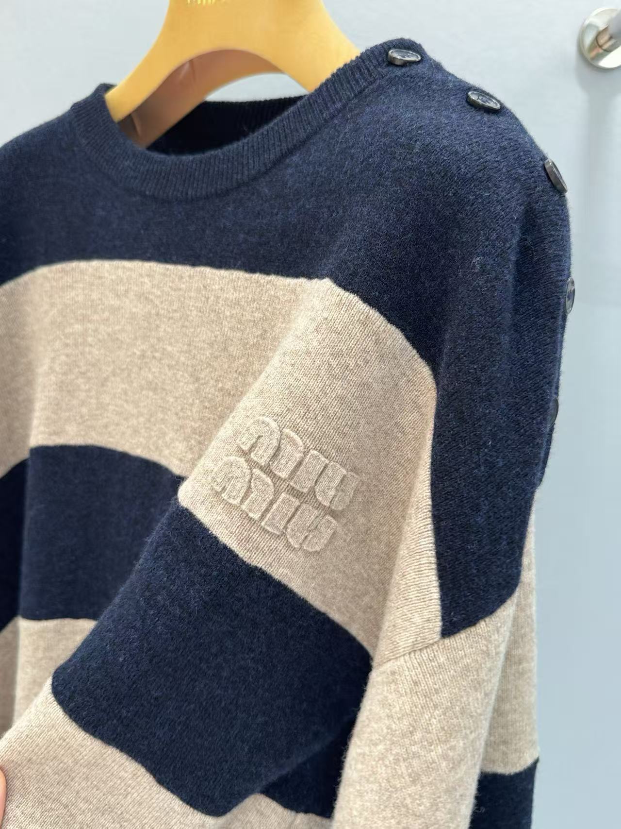 2025早秋 Miu家 字母復古肩扣條紋毛衣|慵懶學院風,衣櫃必備高質感單品!