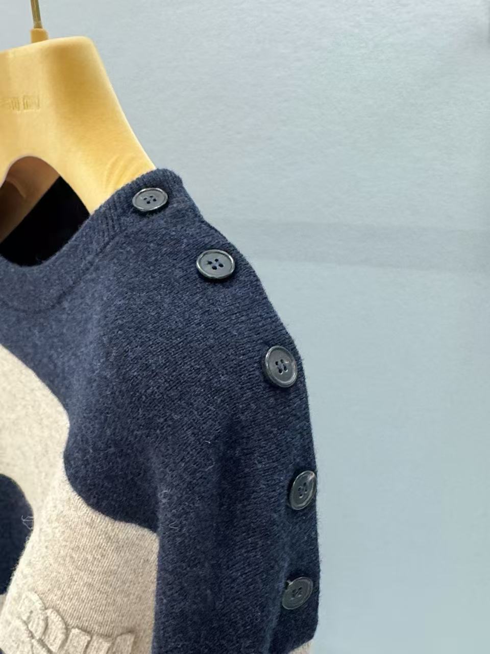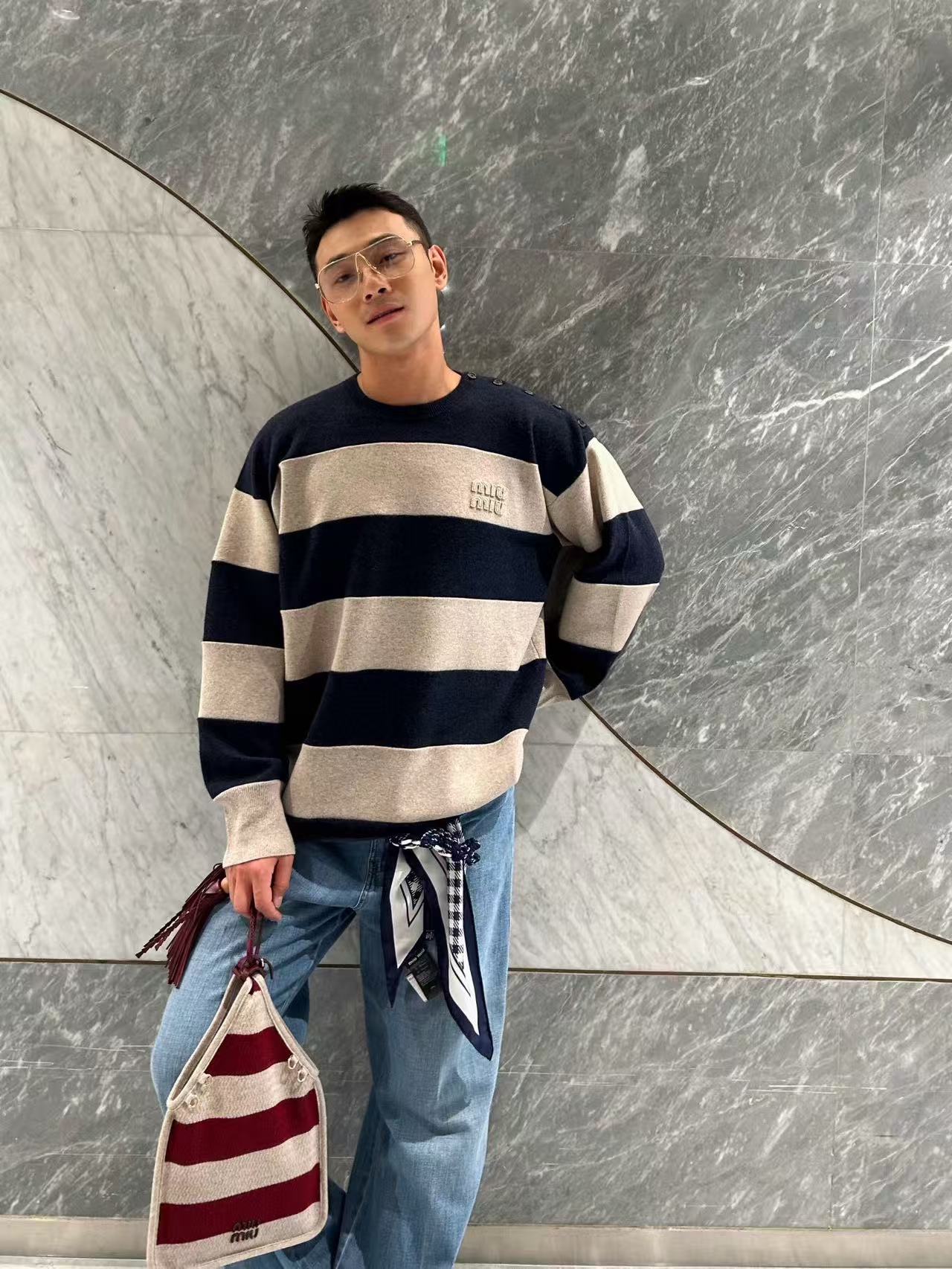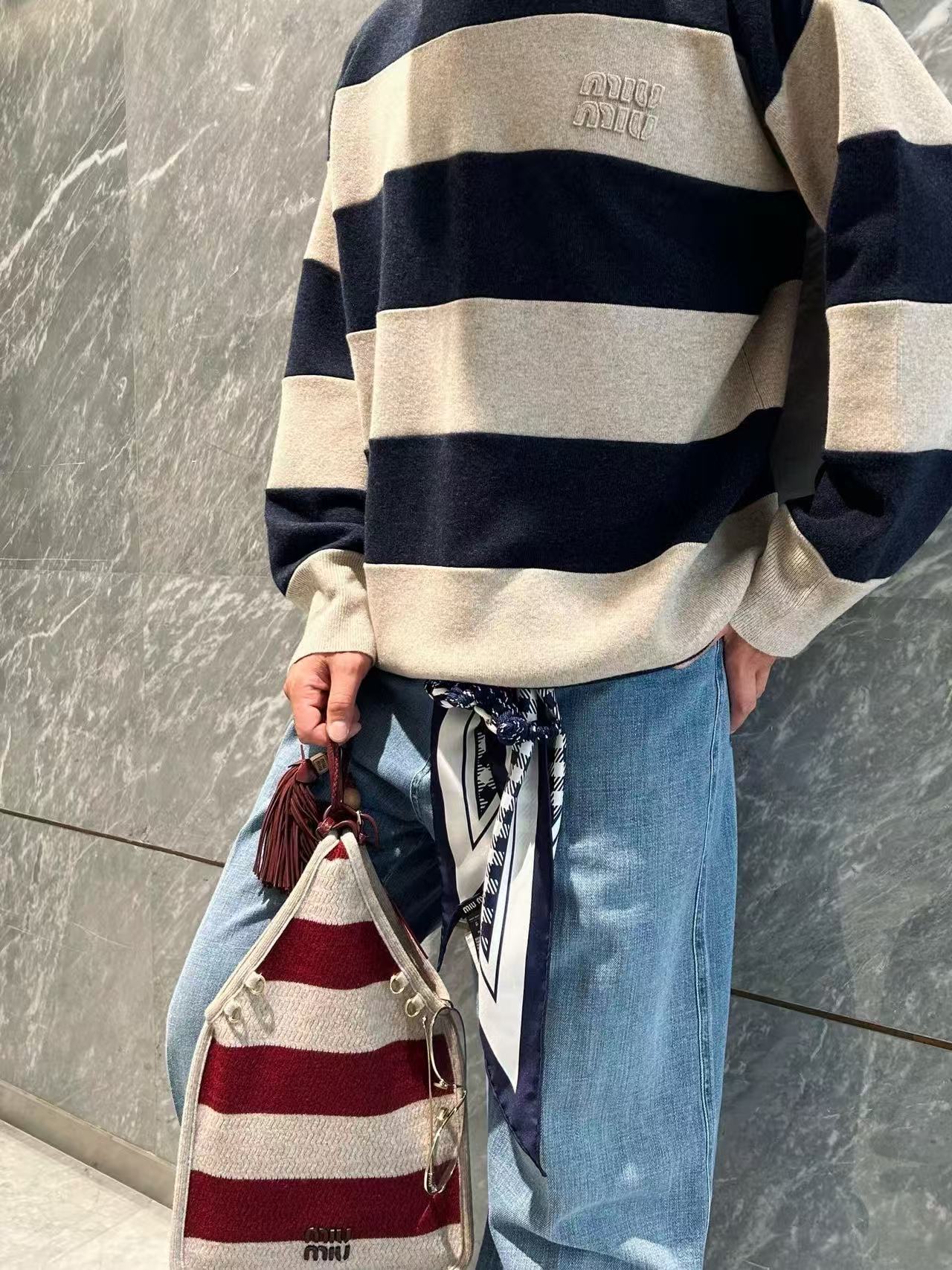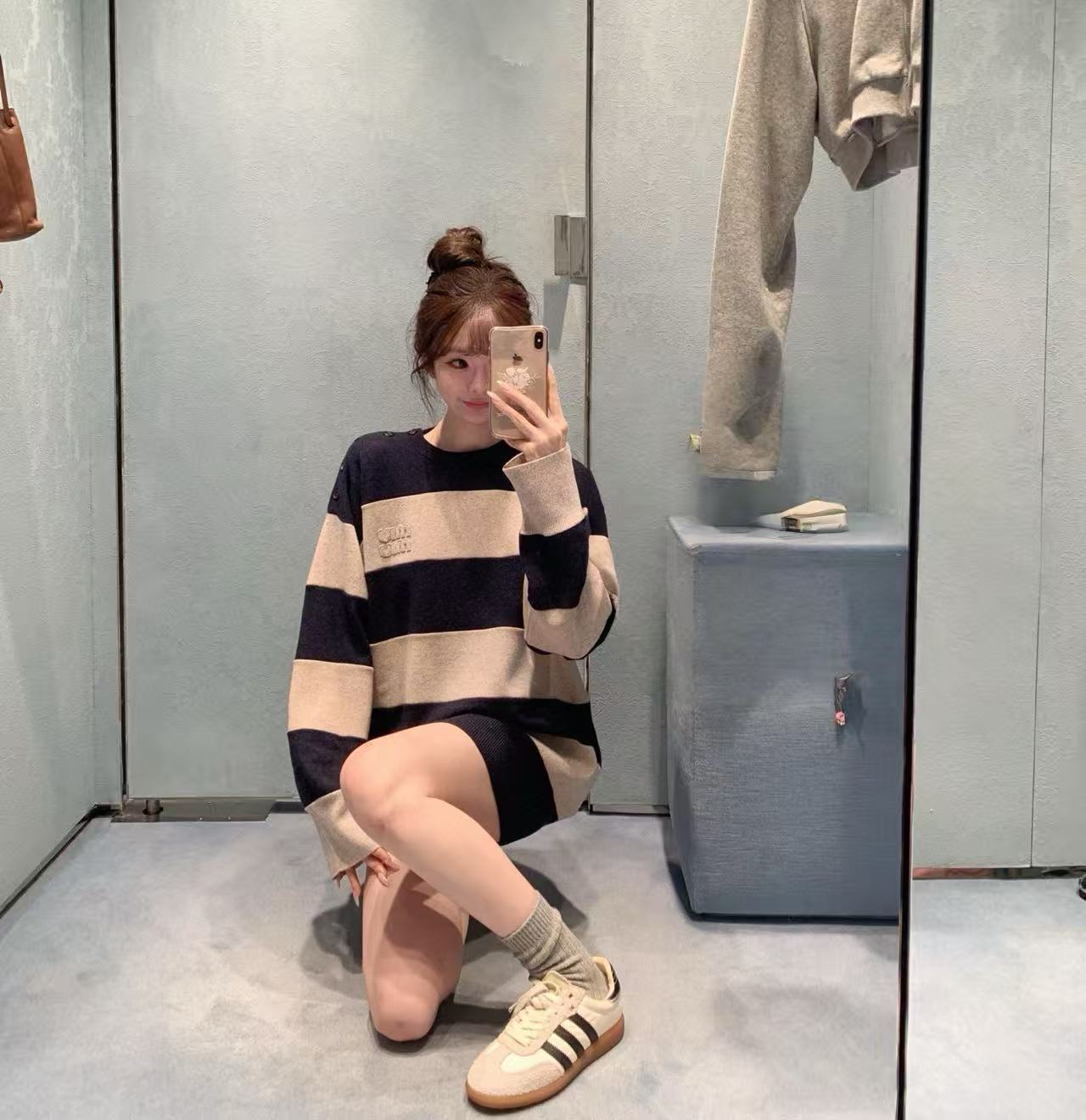 2025早秋 Miu家 字母復古肩扣條紋毛衣|慵懶學院風,衣櫃必備高質感單品!