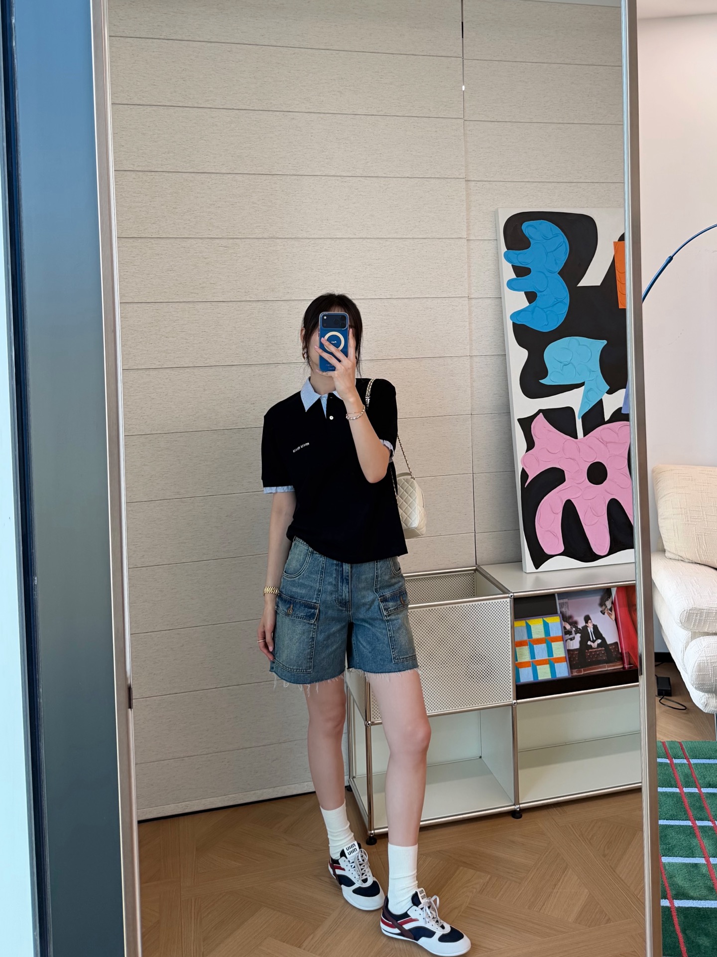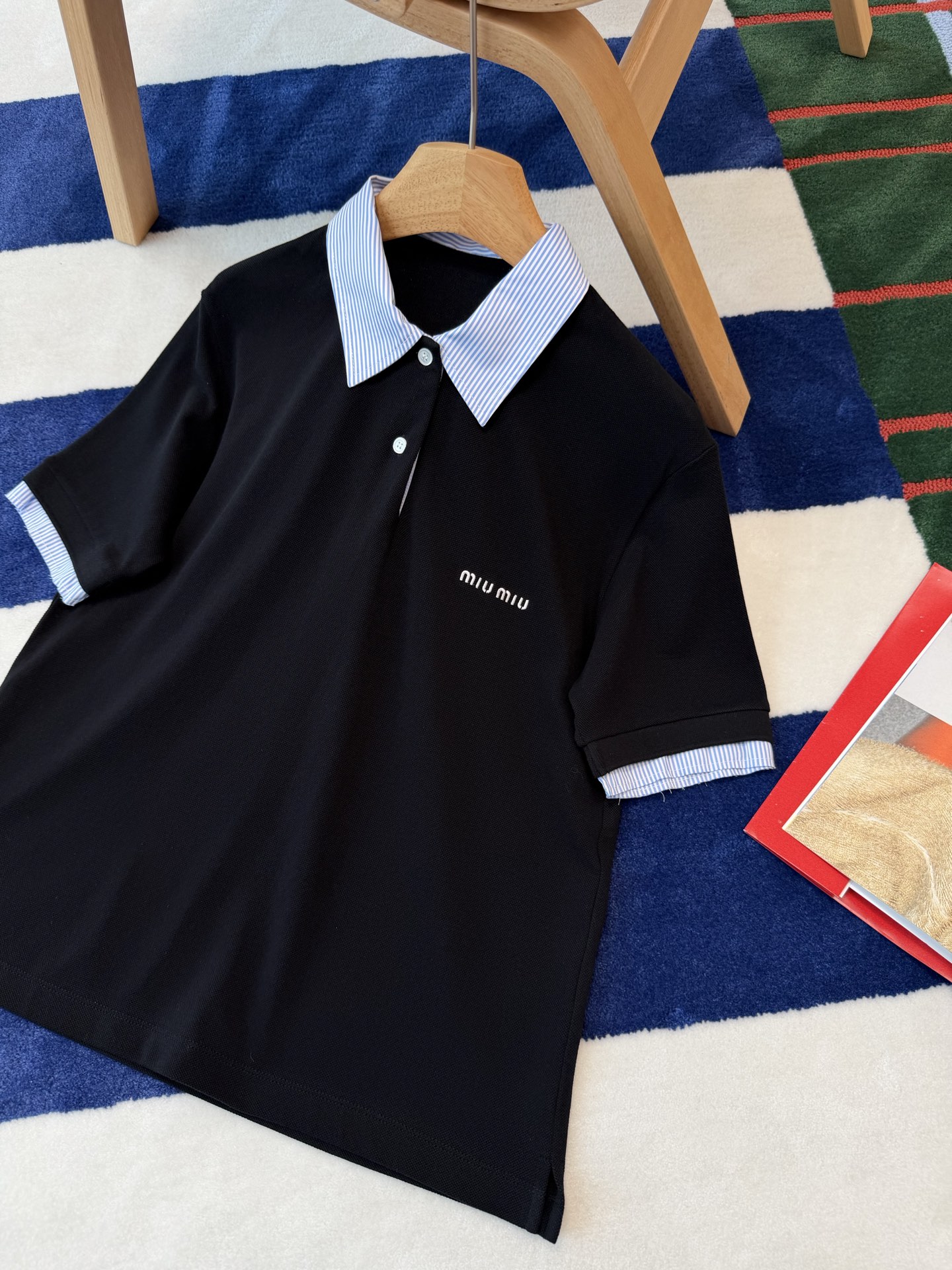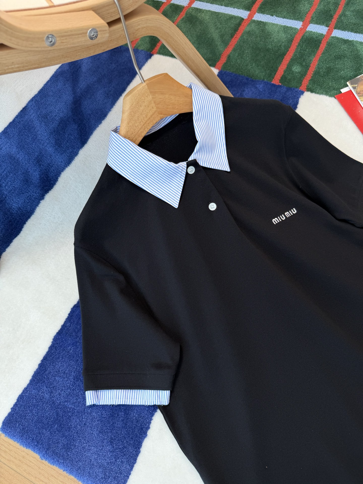2026春夏新品 Miu家 拼接條紋翻領Polo衫