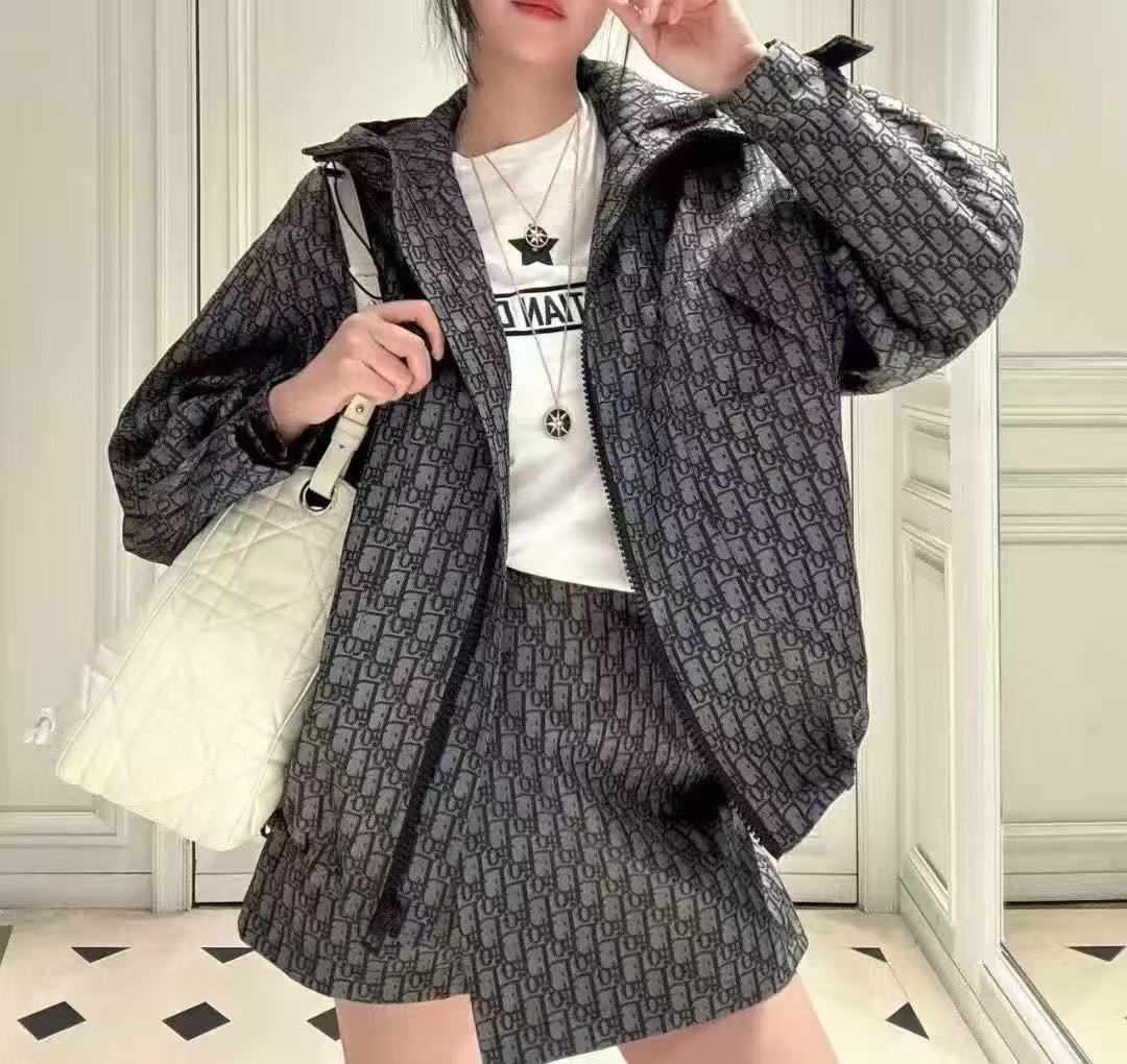 採用定制YB進口提花衝鋒材質,質感光澤挺括有型。滿版老錢感字母提花上下呼應;裙褲一片式側按扣固定,品牌徽標點綴潮流定位,一套即顯時髦洋氣