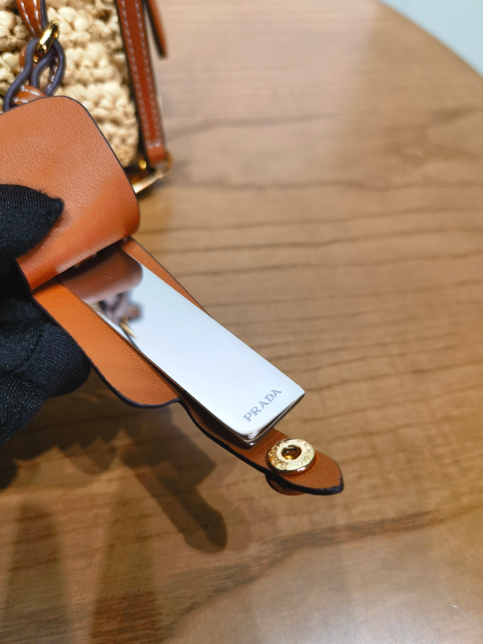 金屬配件:飾有品牌標誌性金屬三角徽標,色澤細膩,不易氧化,為整體增添一抹優雅亮點。