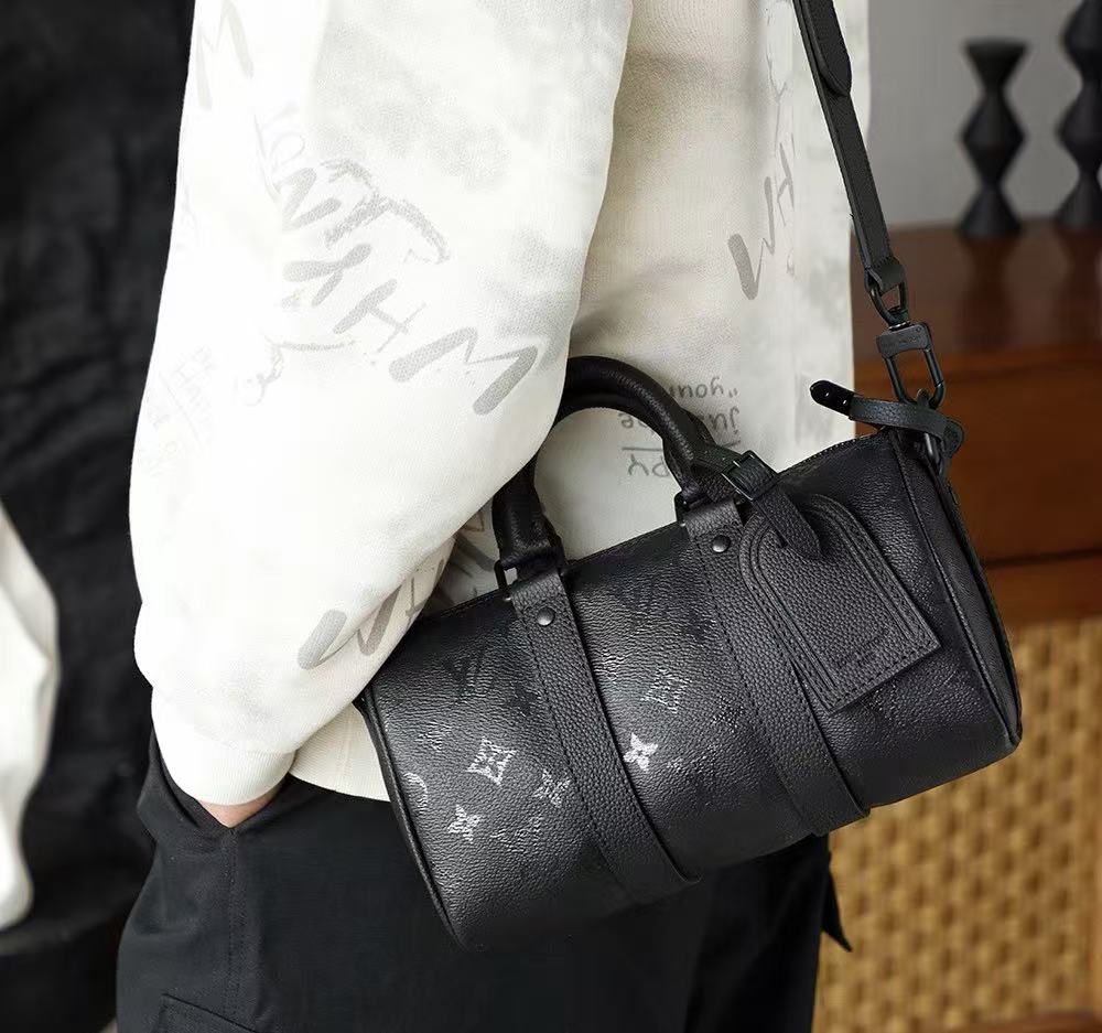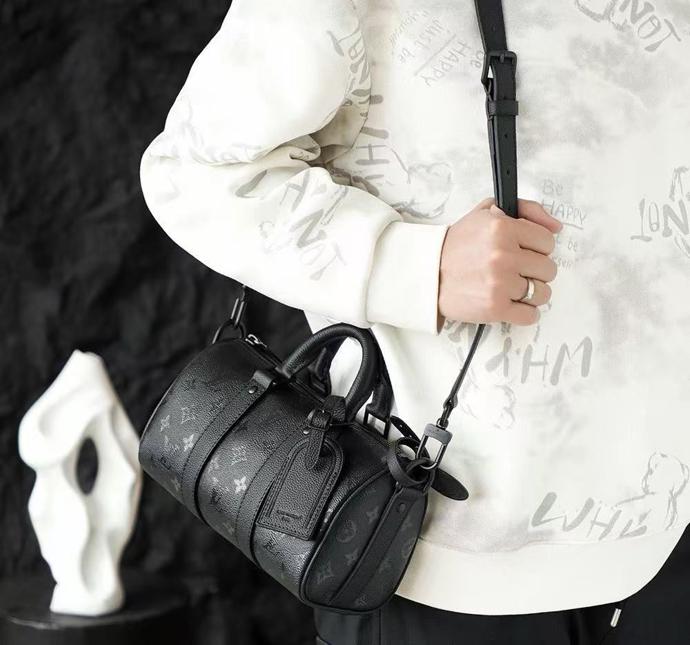 25 公分的精巧尺寸,不僅保留了 Keepall 經典的波士頓包型,更優化了日常斜背的比例。這不僅是一款手袋,更是一件展現極簡叛逆美學的藝術品,無論是搭配全黑的暗黑系層次穿搭,或是洗鍊的都會商務造型,都能以其強大的氣場定義您的品味格調。