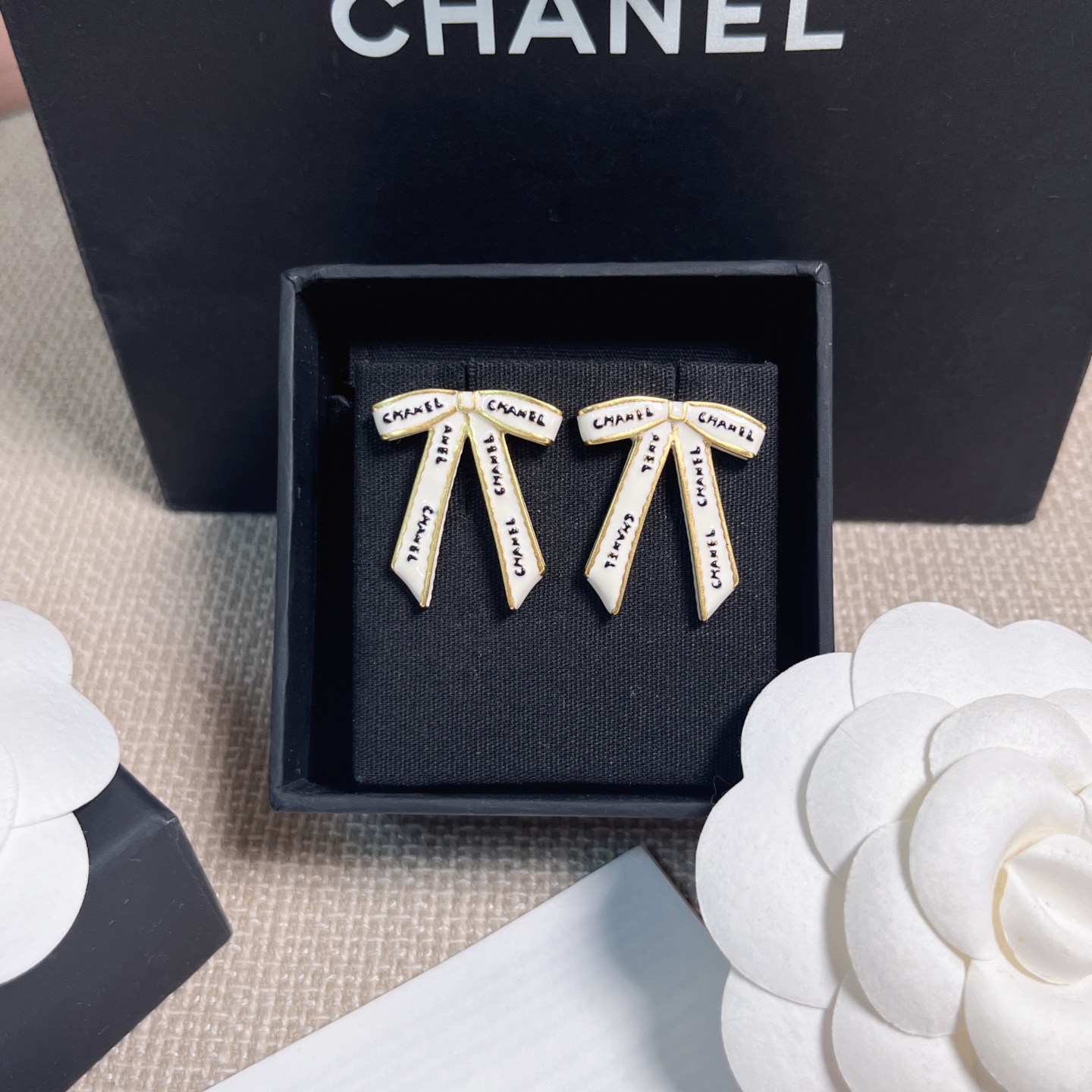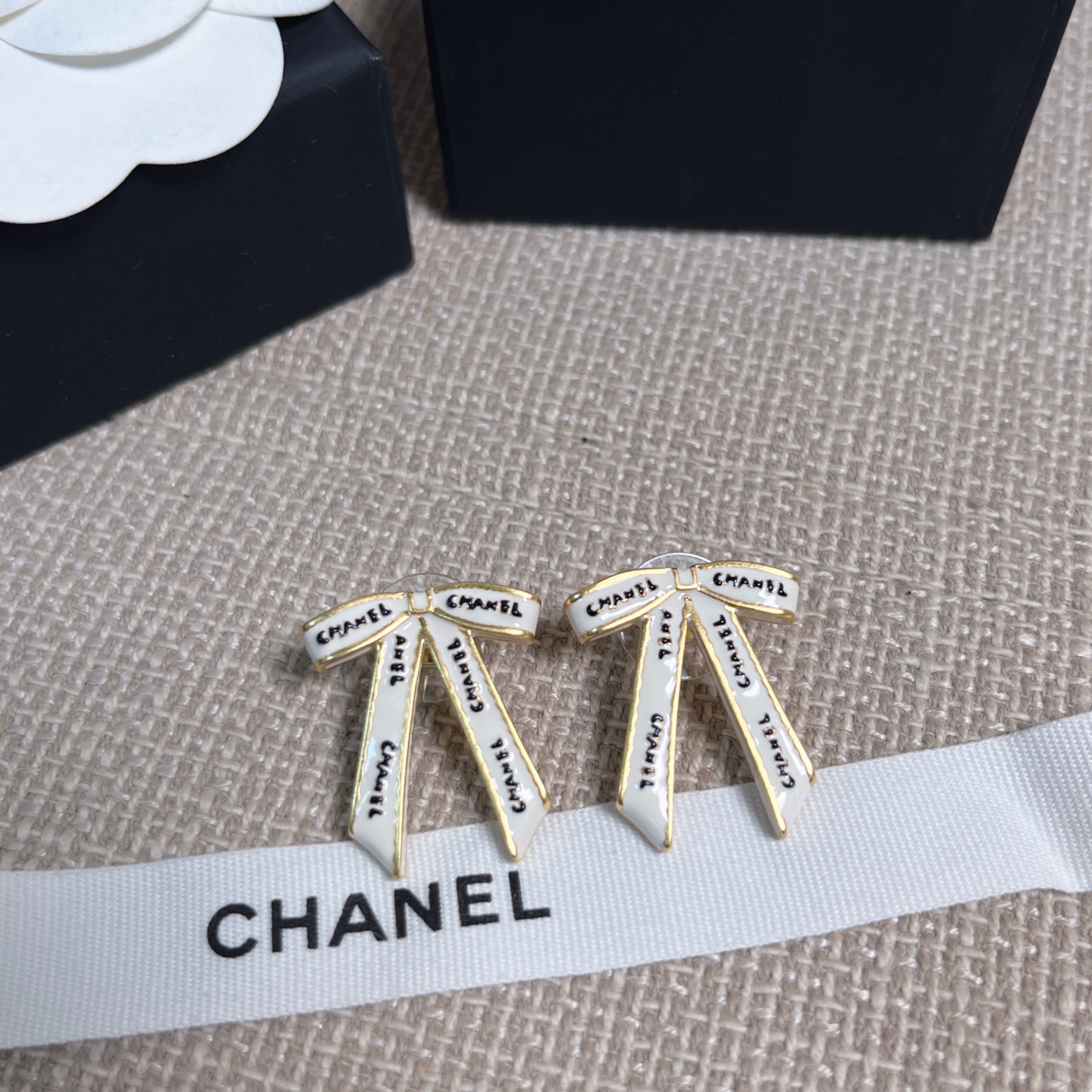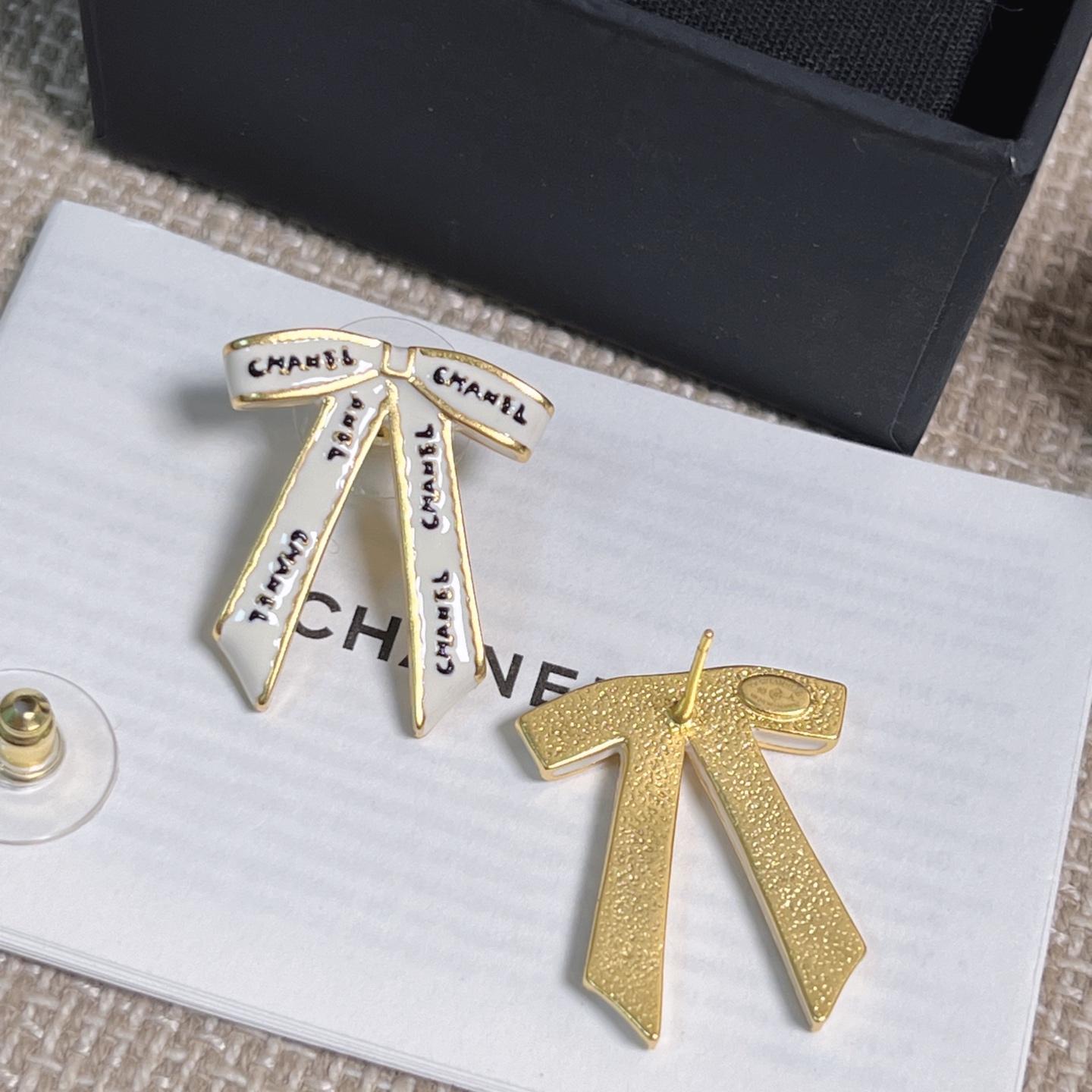 2025早秋新款 C家 黑字母白絲帶蝴蝶結耳環