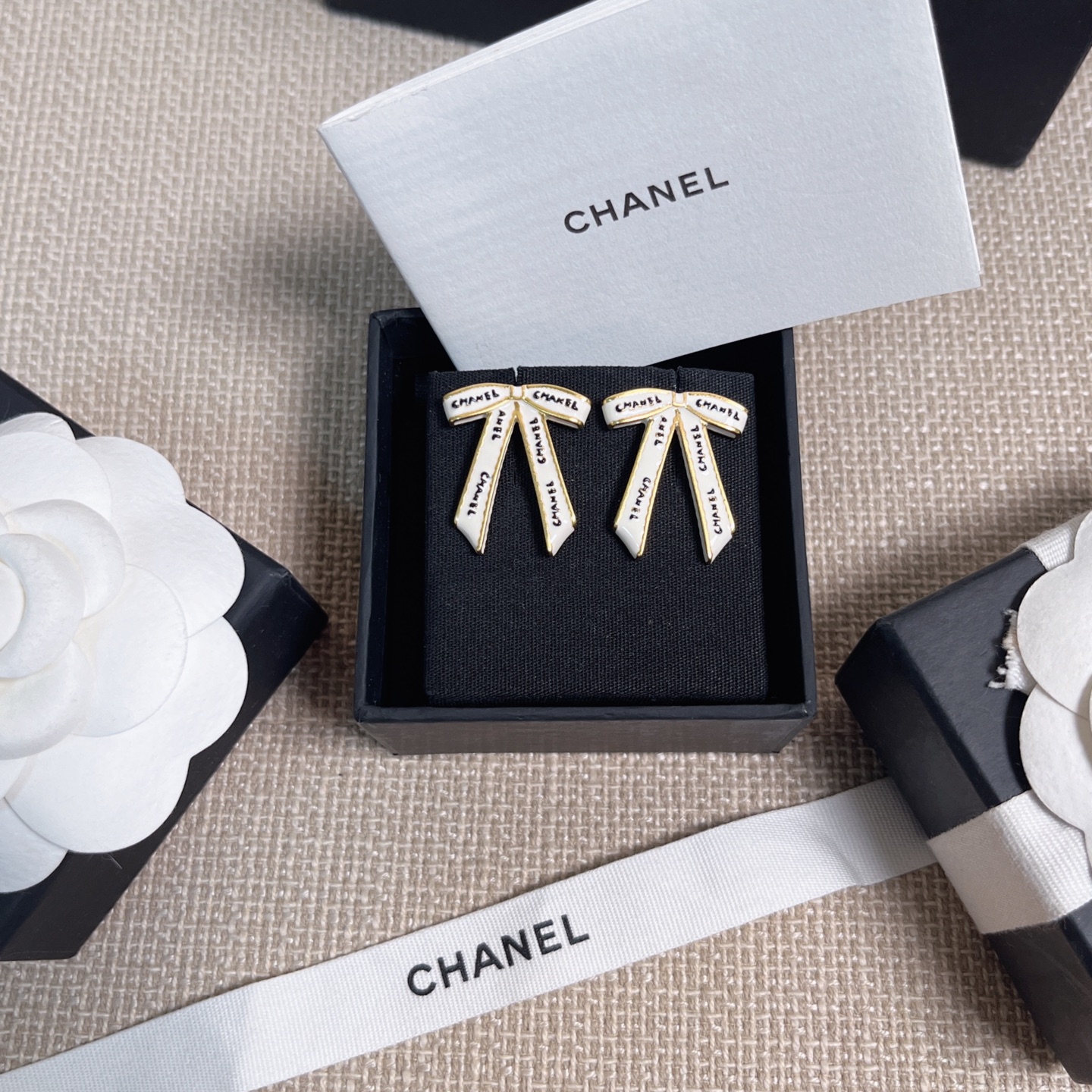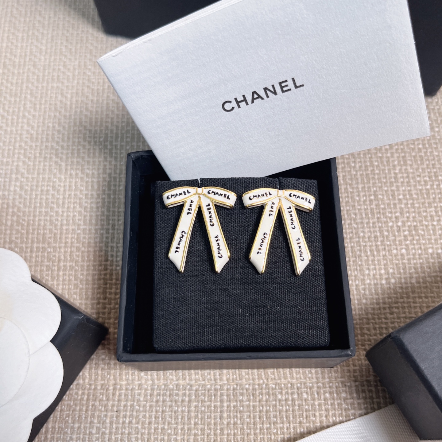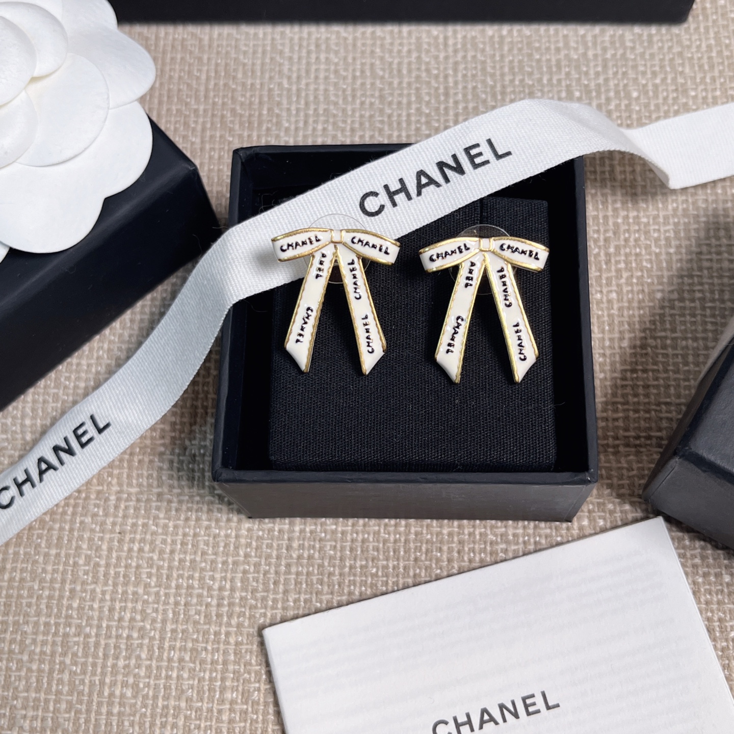 2025早秋新款 C家 黑字母白絲帶蝴蝶結耳環