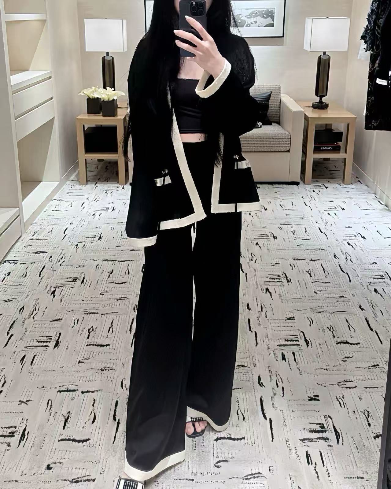 2025早秋 C家 25A 絲光棉闊腿褲|白拼黑邊・優雅貴氣上身