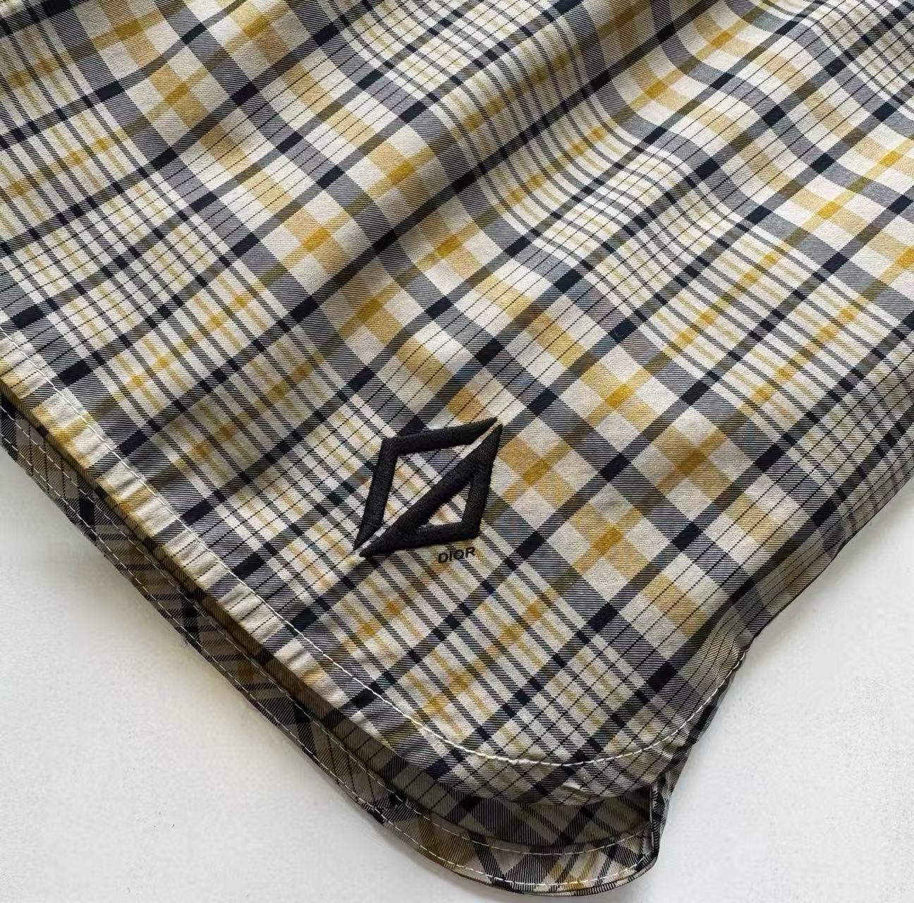 2025春夏新品 D家 格紋刺繡字母休閒短褲