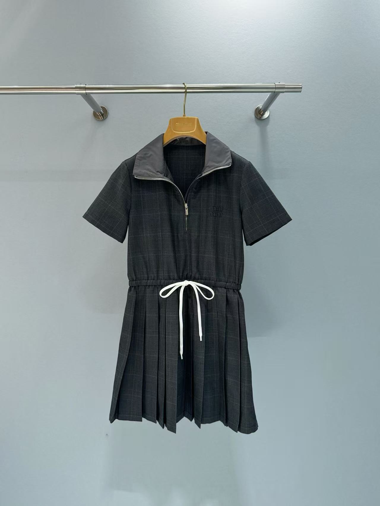 2025早秋 Miu家 色威爾士格紋百褶連衣裙