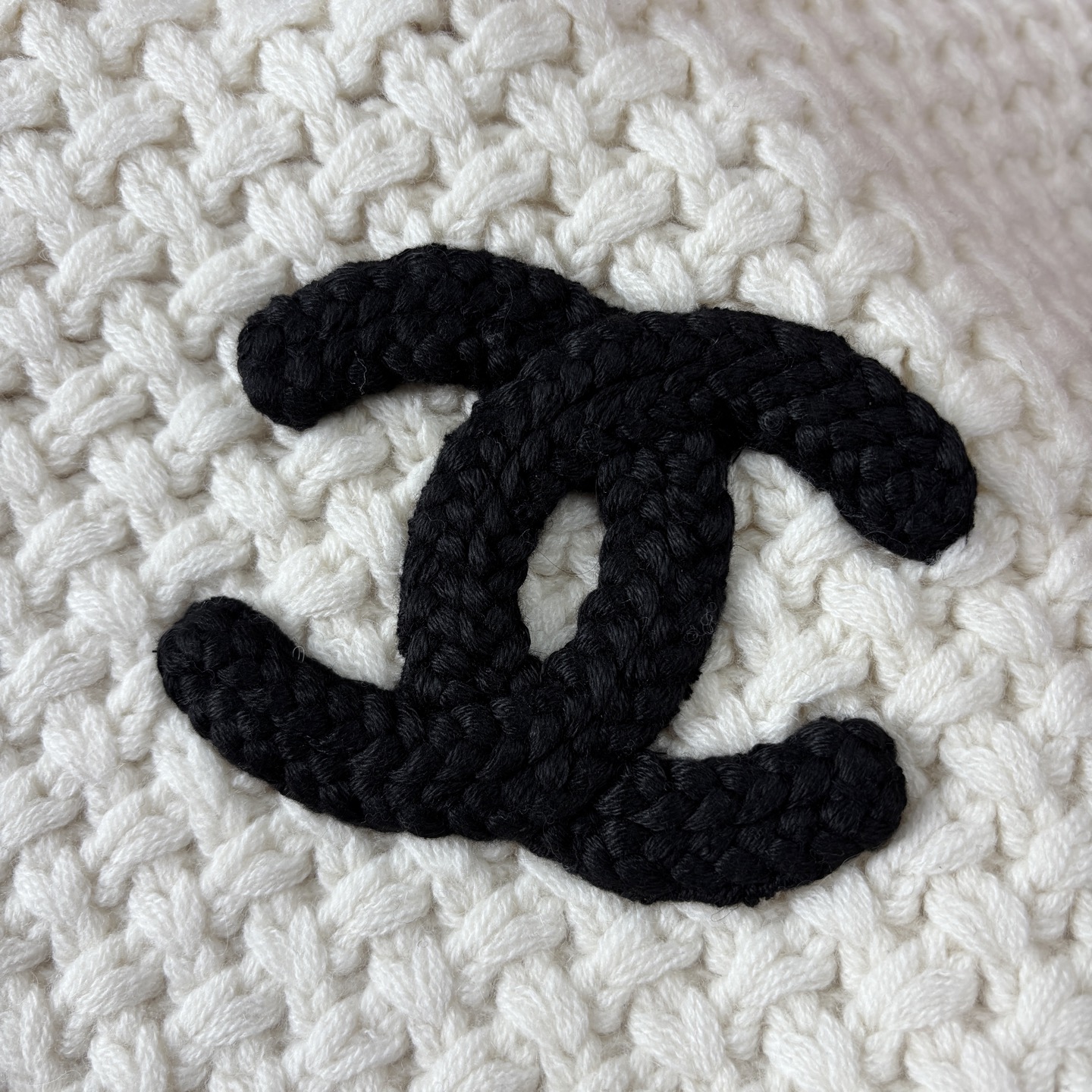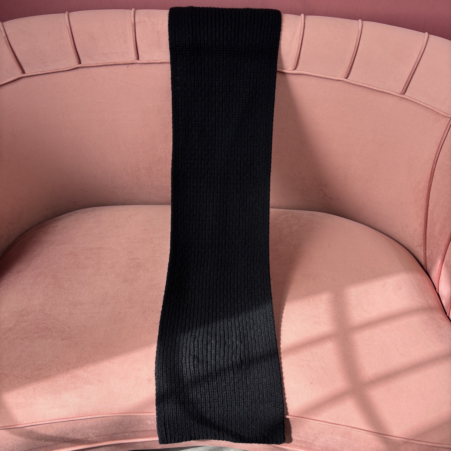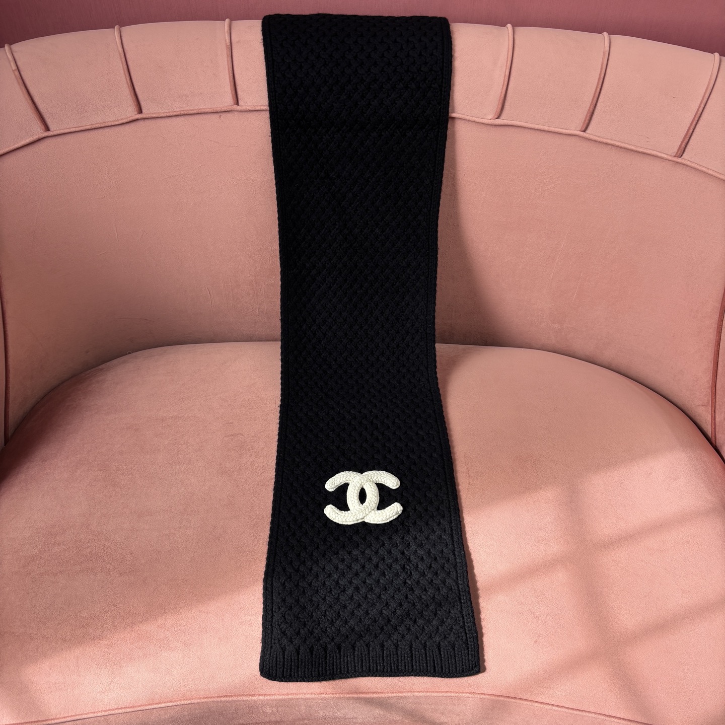 這條粗針織羊絨圍巾,完全展現經典的黑白美學,簡潔、優雅、永不退流行。