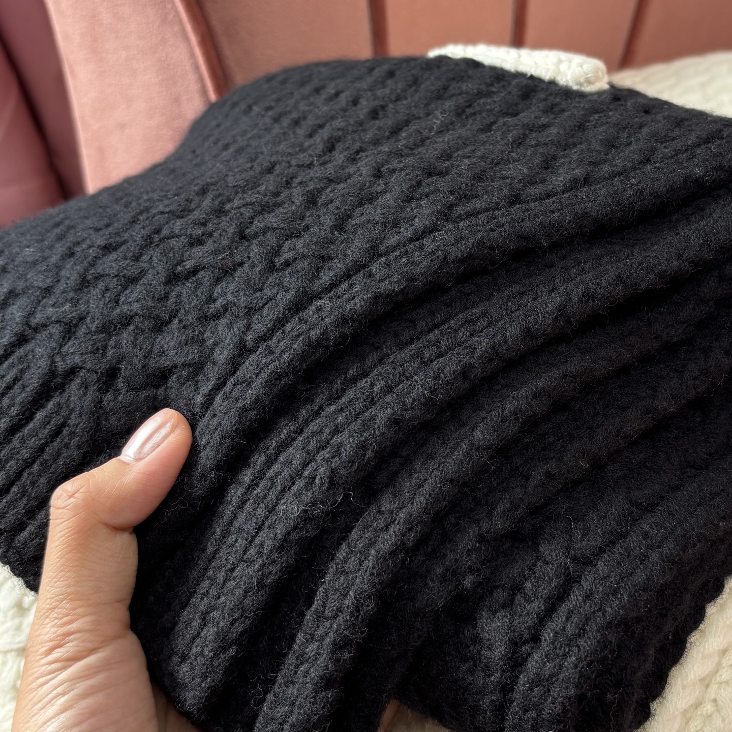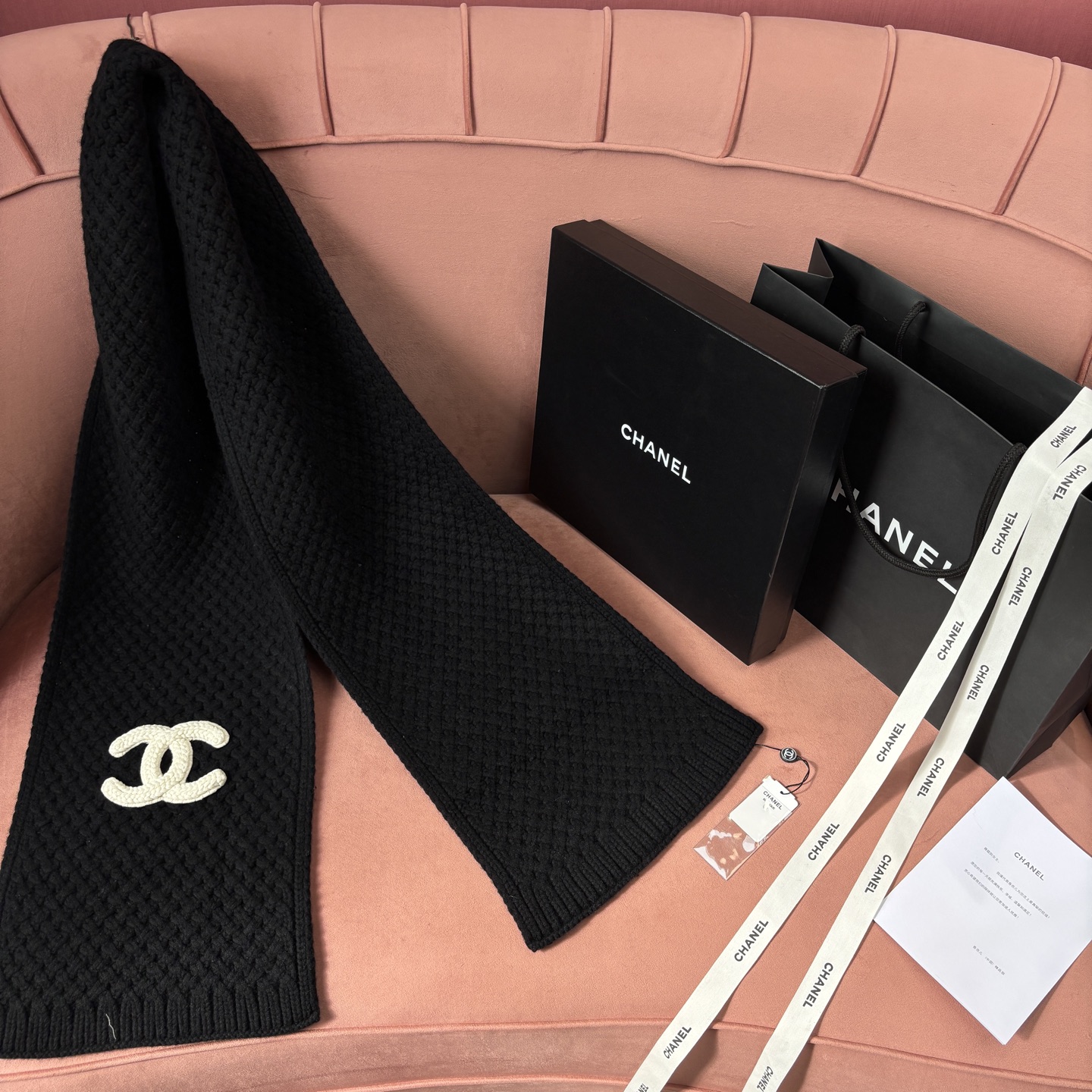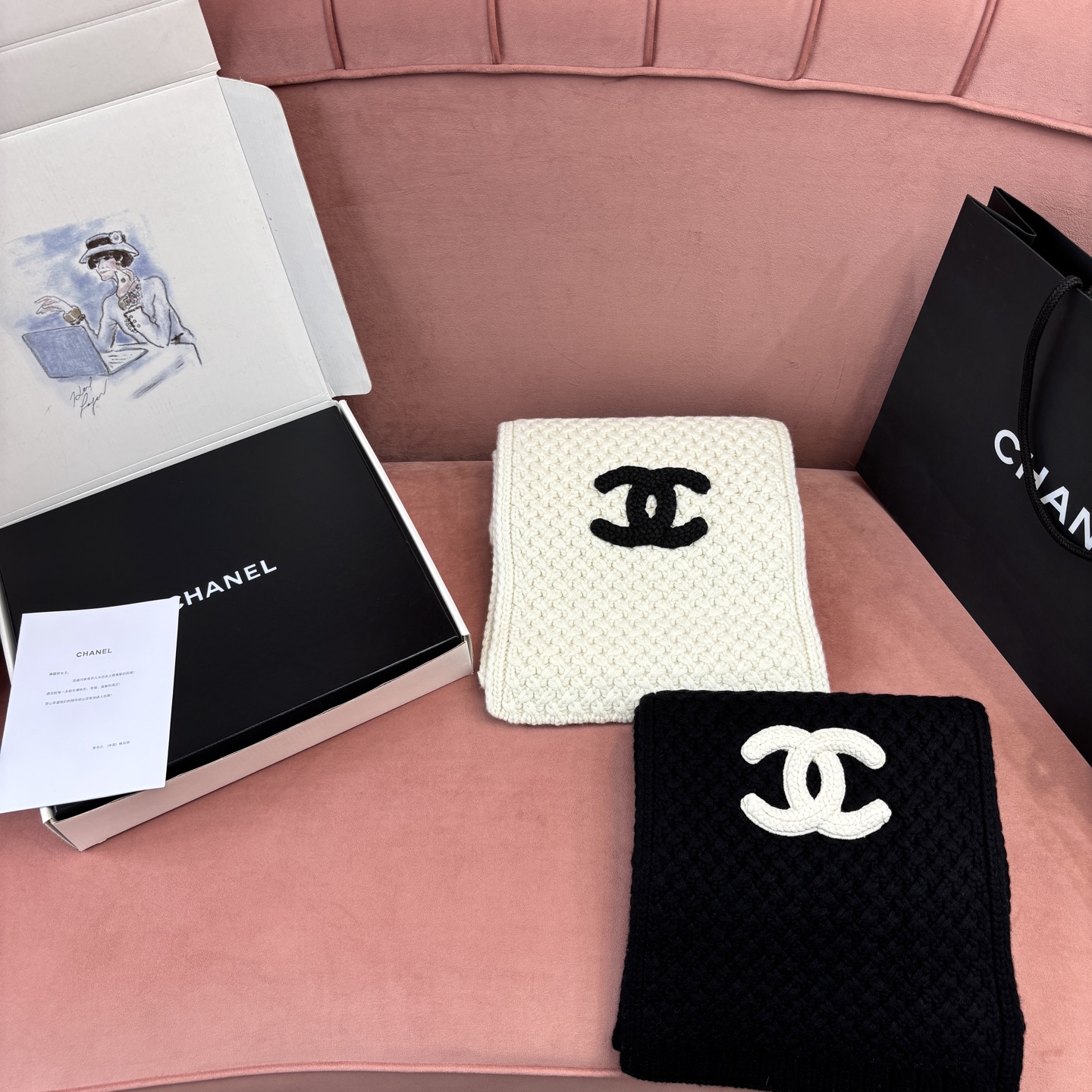 這條粗針織羊絨圍巾,完全展現經典的黑白美學,簡潔、優雅、永不退流行。