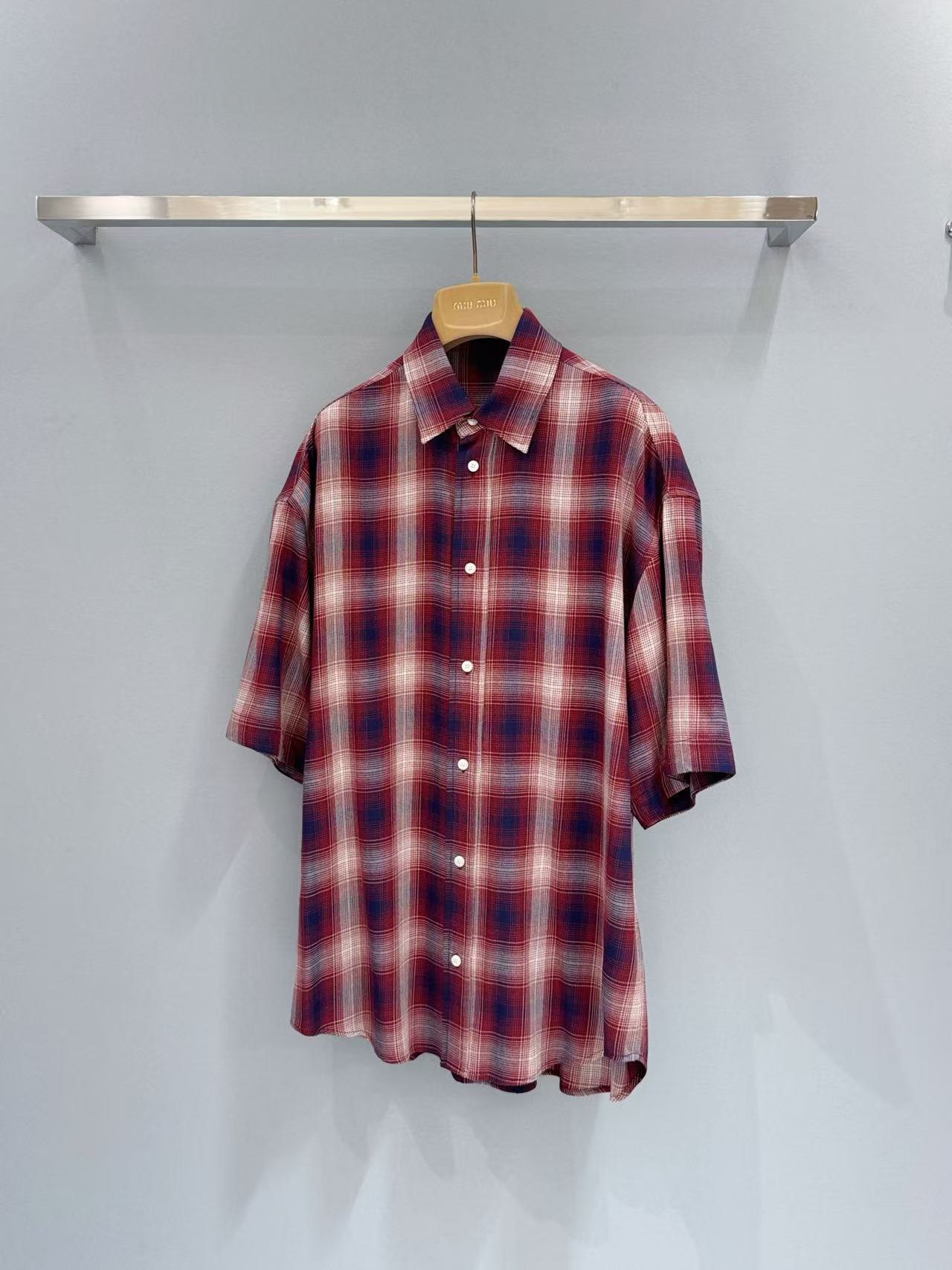 格紋撞色設計:襯衫以經典格紋結合撞色元素,視覺效果搶眼又不失低調,帶來復古與現代的完美融合,輕鬆為春夏造型注入新鮮感。