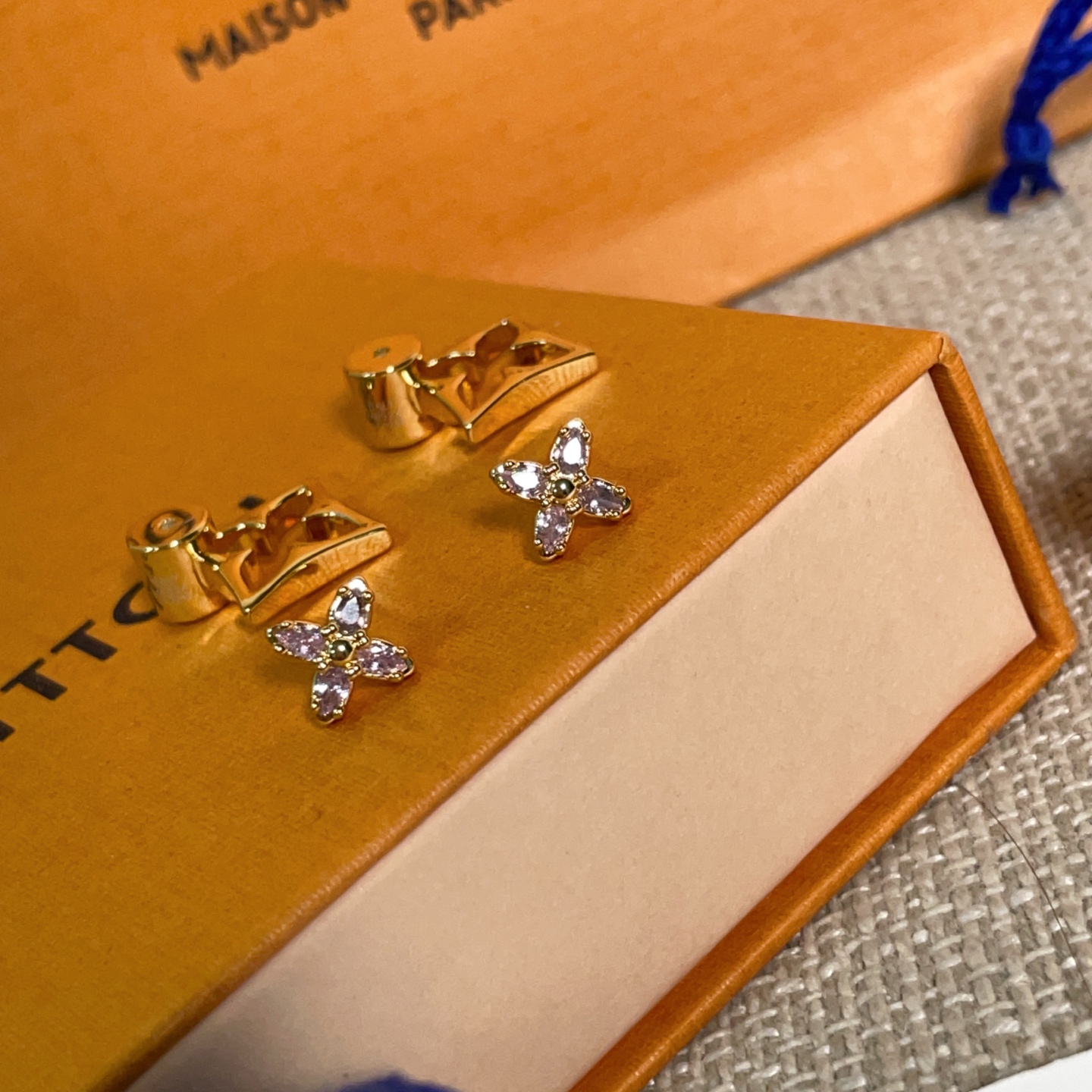 2025秋冬新品 L家 粉鑽花鏤空耳釘