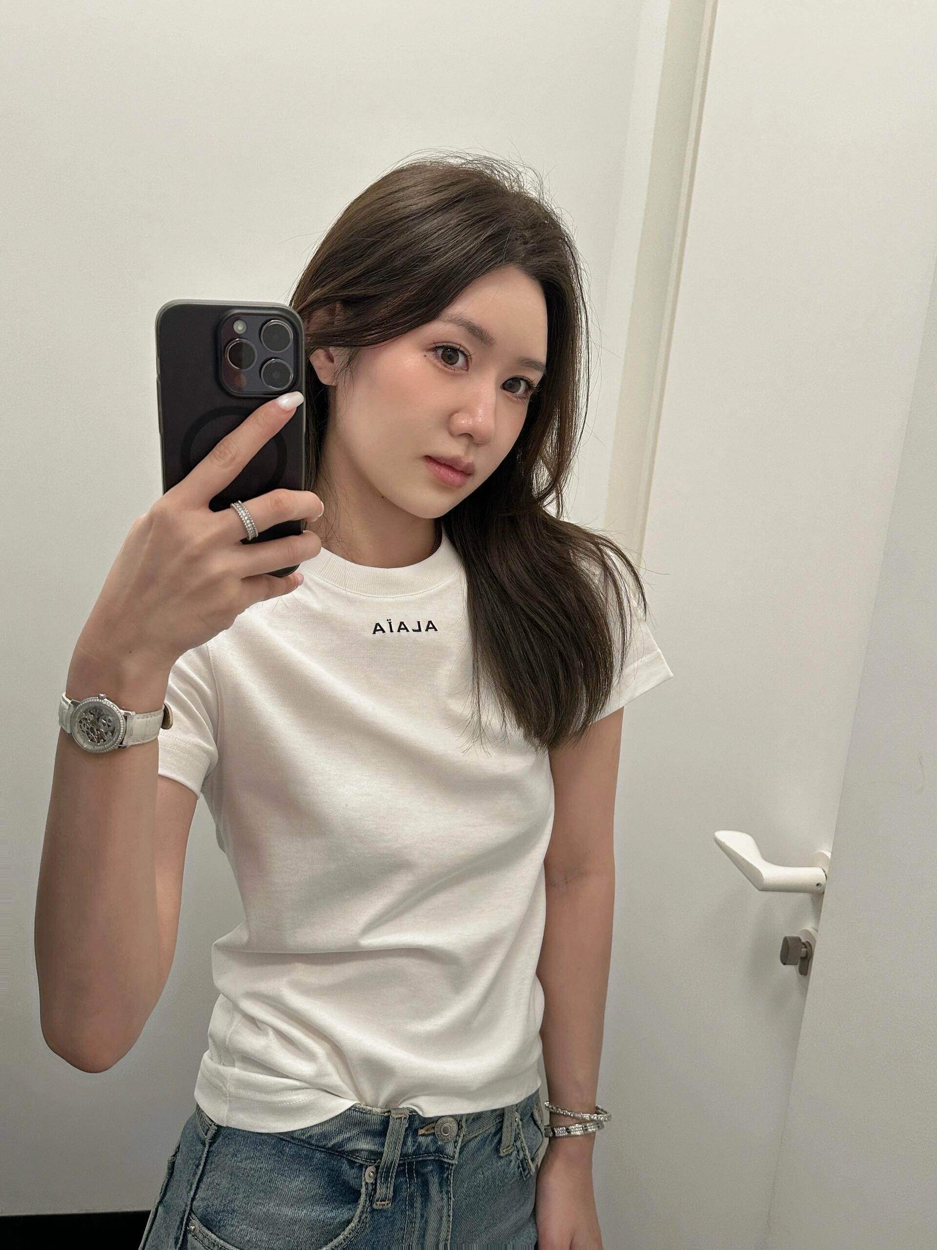 這款T恤上身效果極具辨識度,極簡風格的裝飾字母刺繡logo設計,正肩剪裁顯瘦又好穿,帶有一種精緻的矜持感,日常穿搭必備,