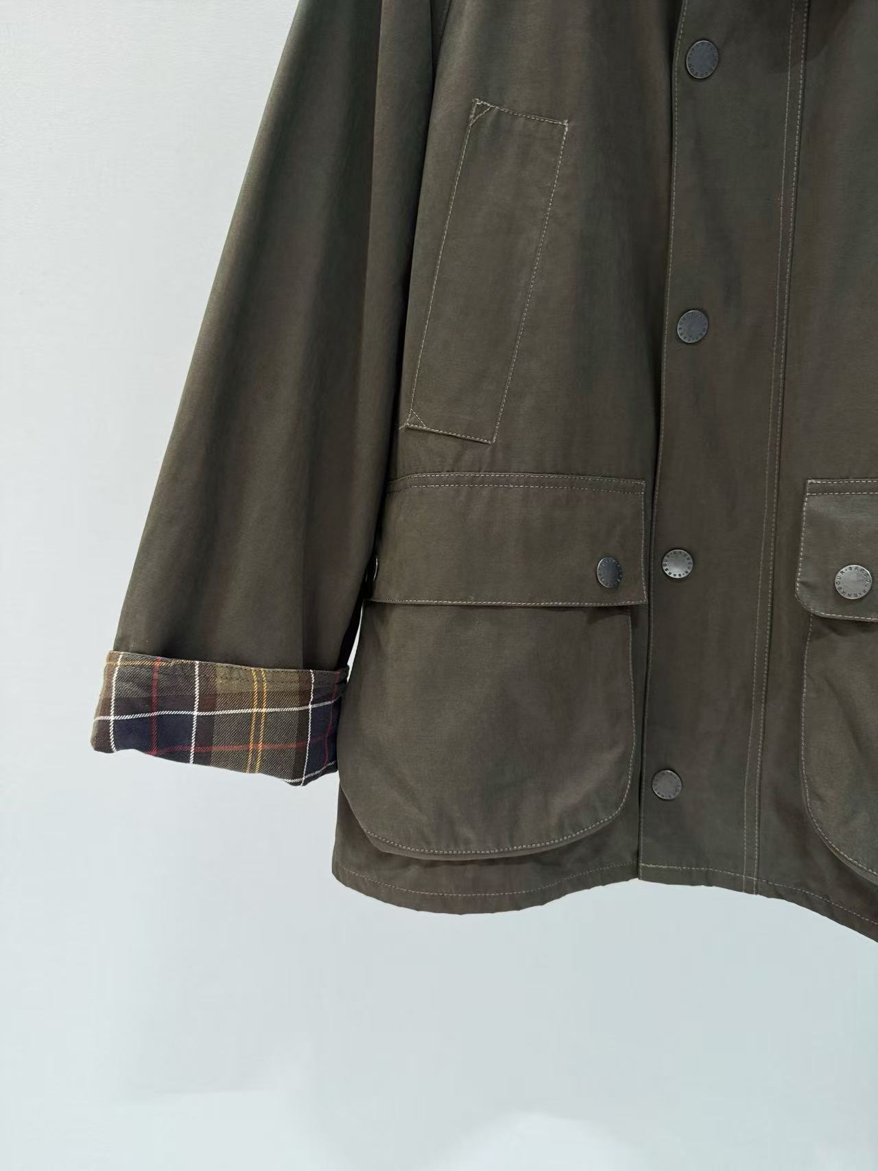 這件外套選用Barbour經典的乾蜡材質,質地輕盈又耐磨,防風防潑水,戶外活動完全無壓力。