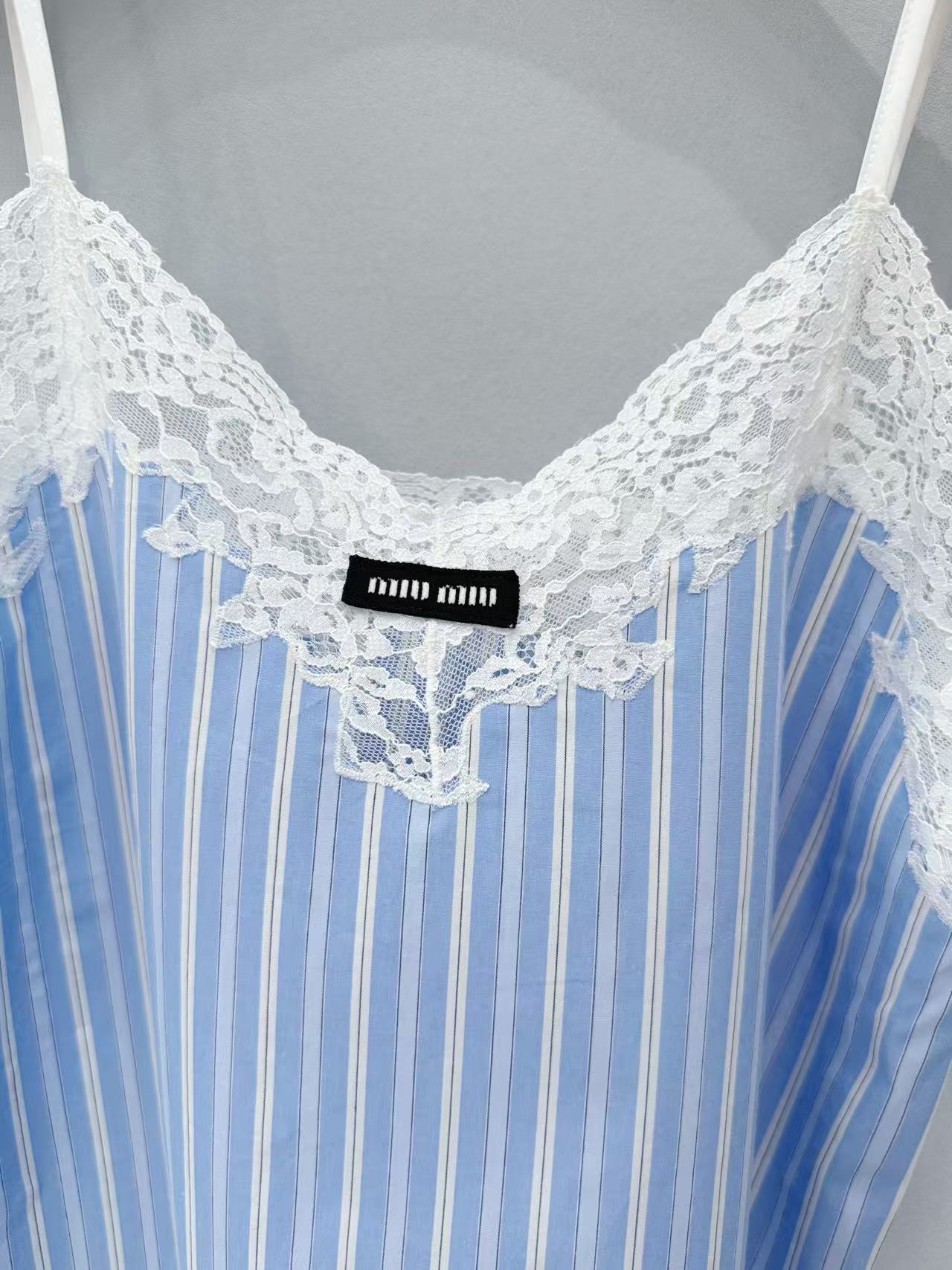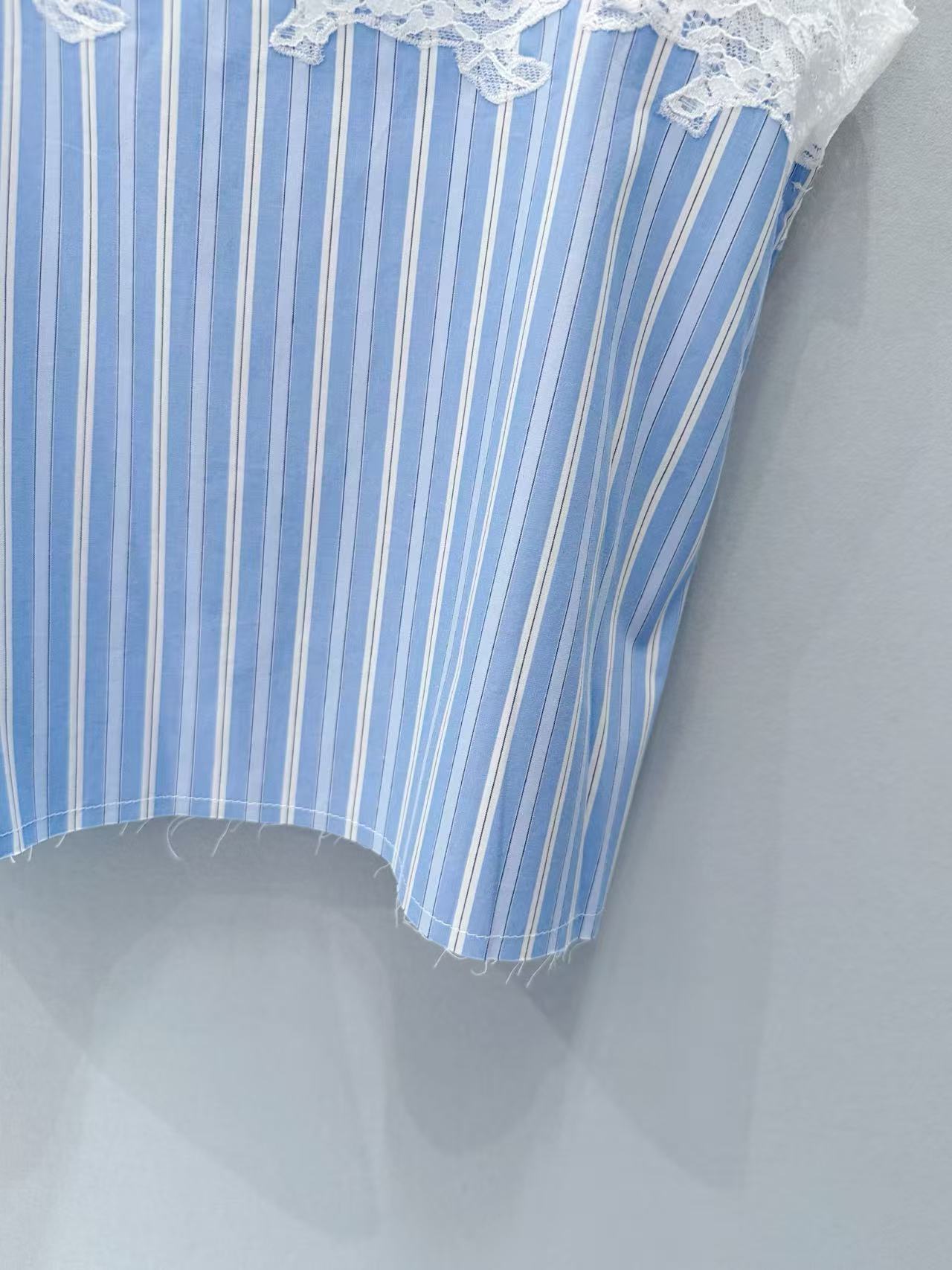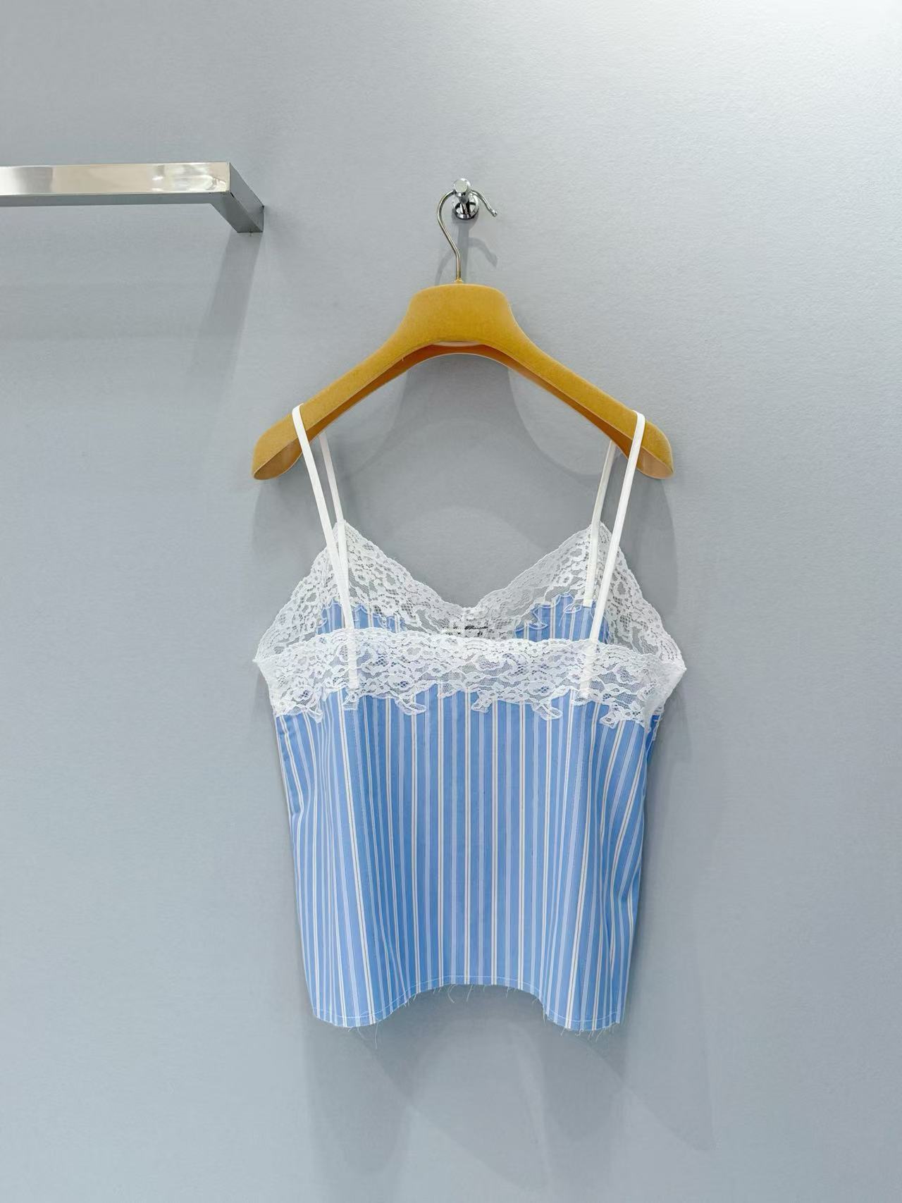 2025早秋 Miu家 蕾絲拼接藍白條紋小吊帶