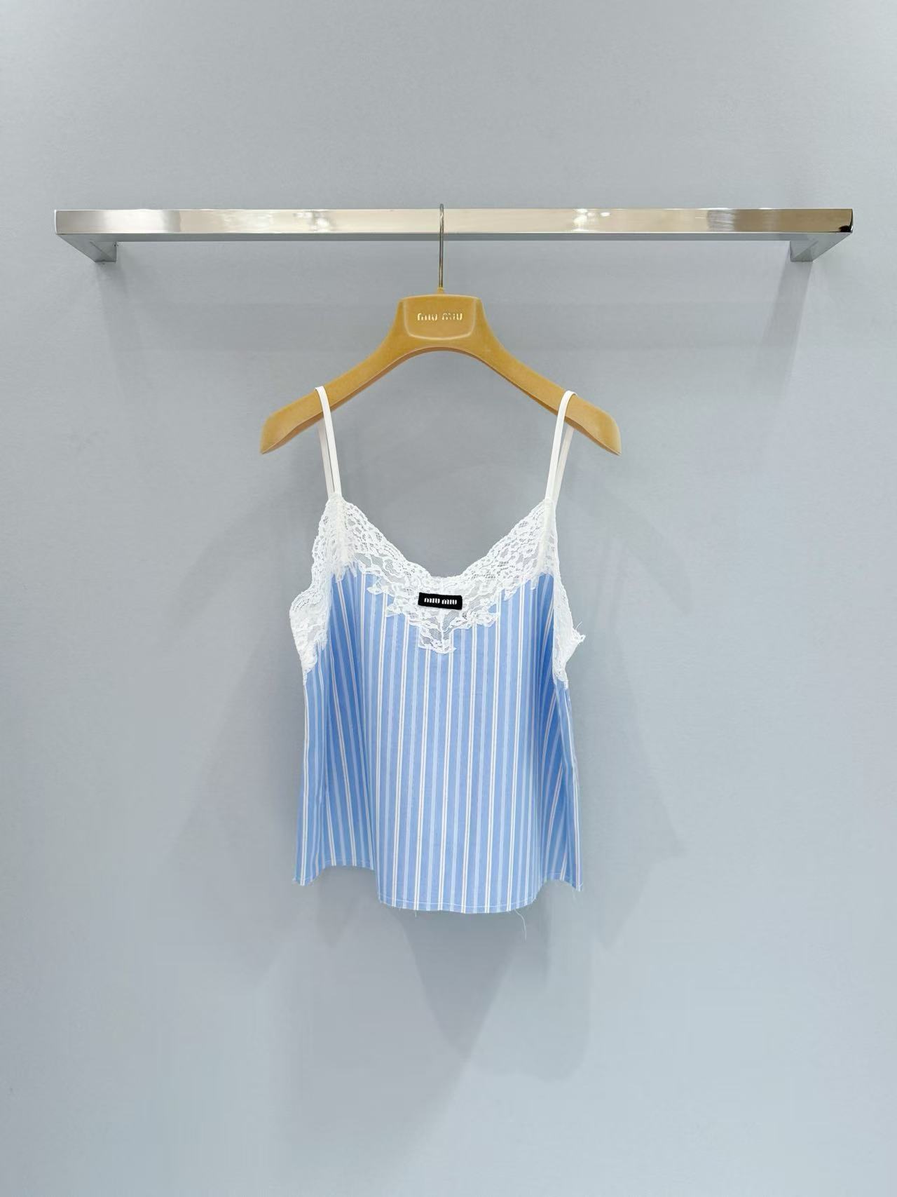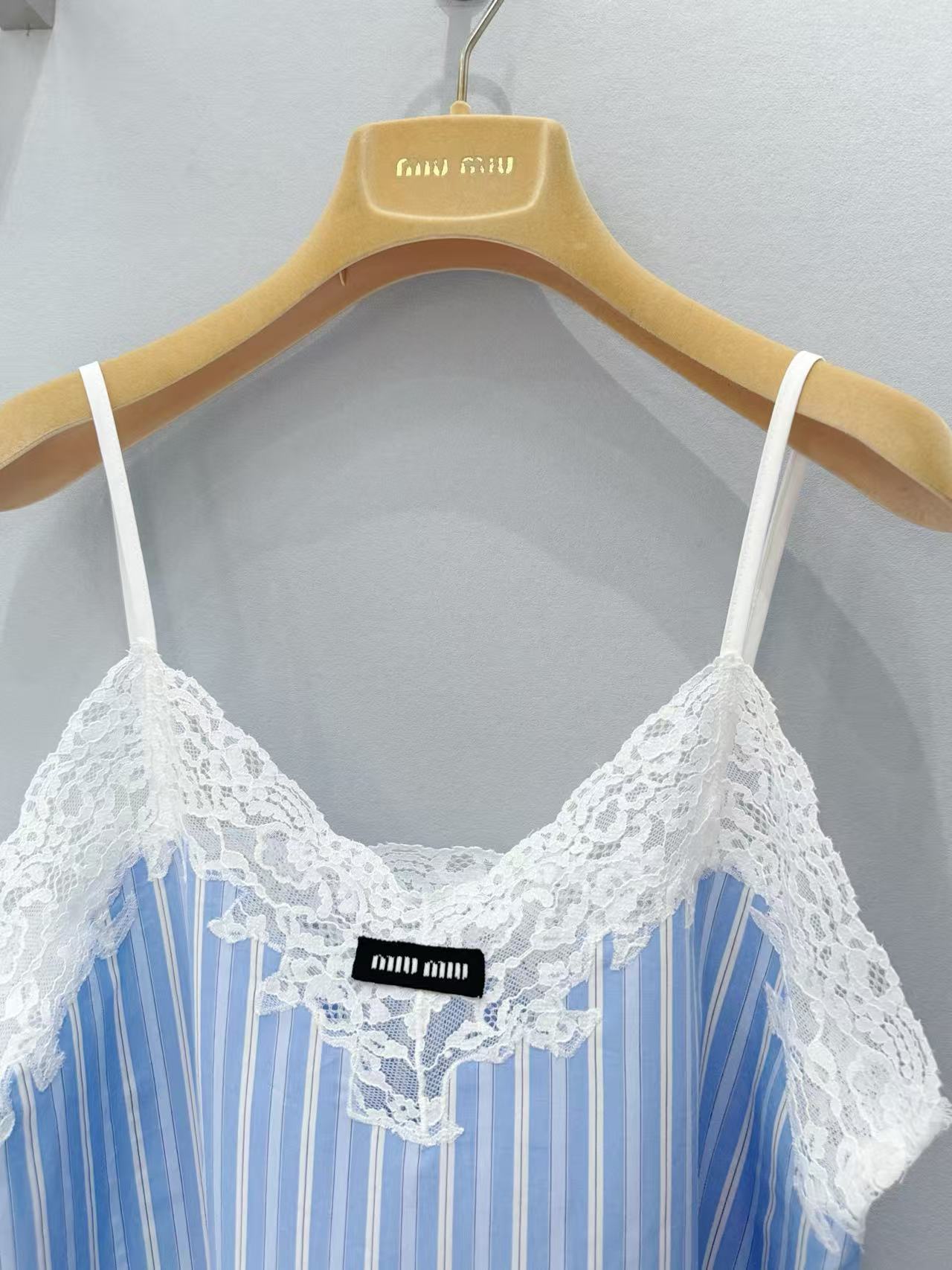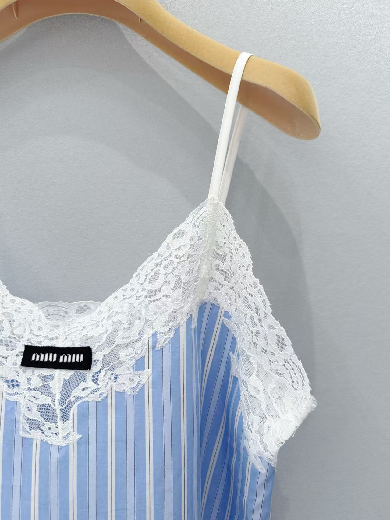 2025早秋 Miu家 蕾絲拼接藍白條紋小吊帶