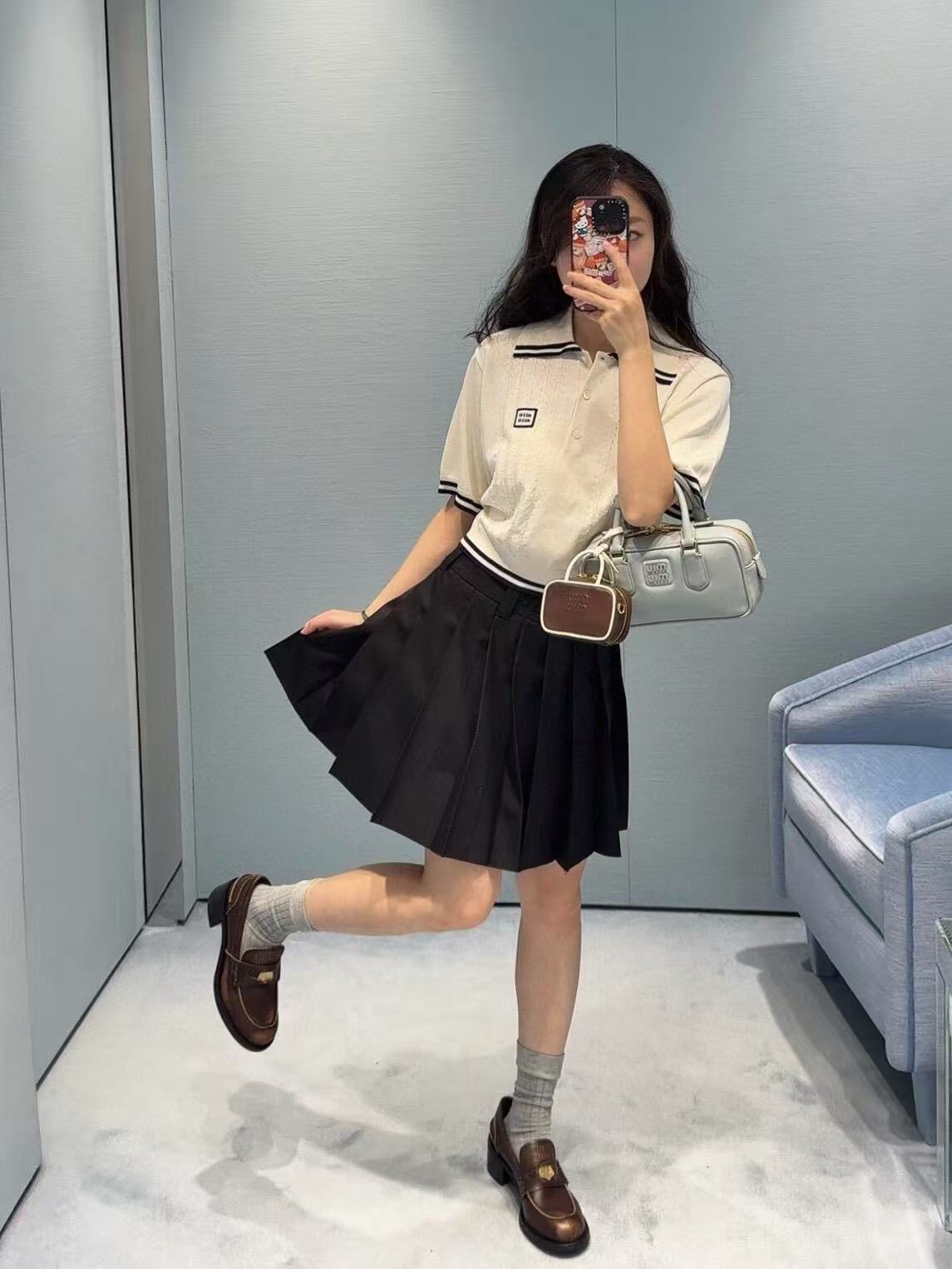 2025春夏 MiU家 貼布繡字母百褶短裙,甜鹹百搭的時尚新寵
