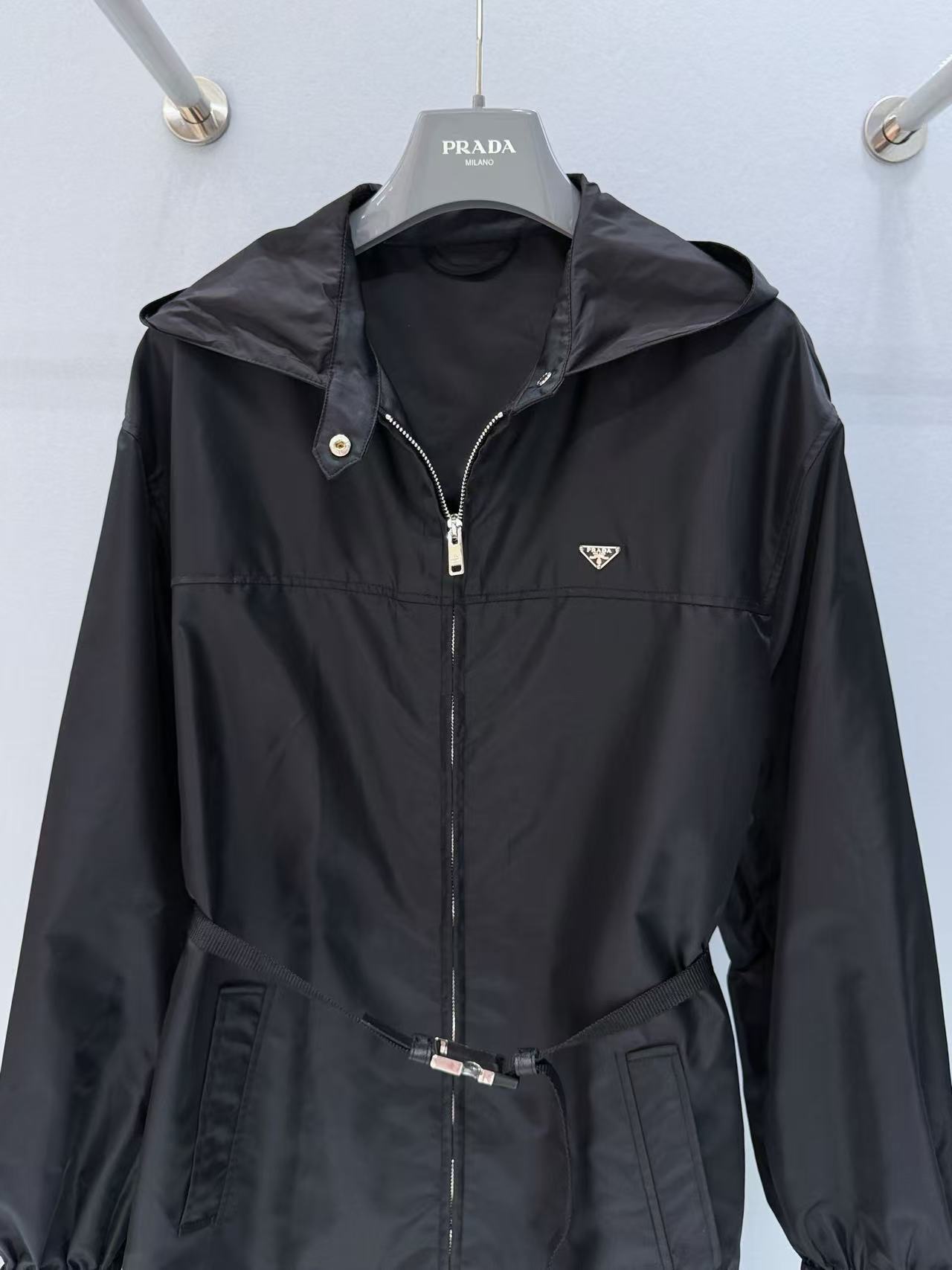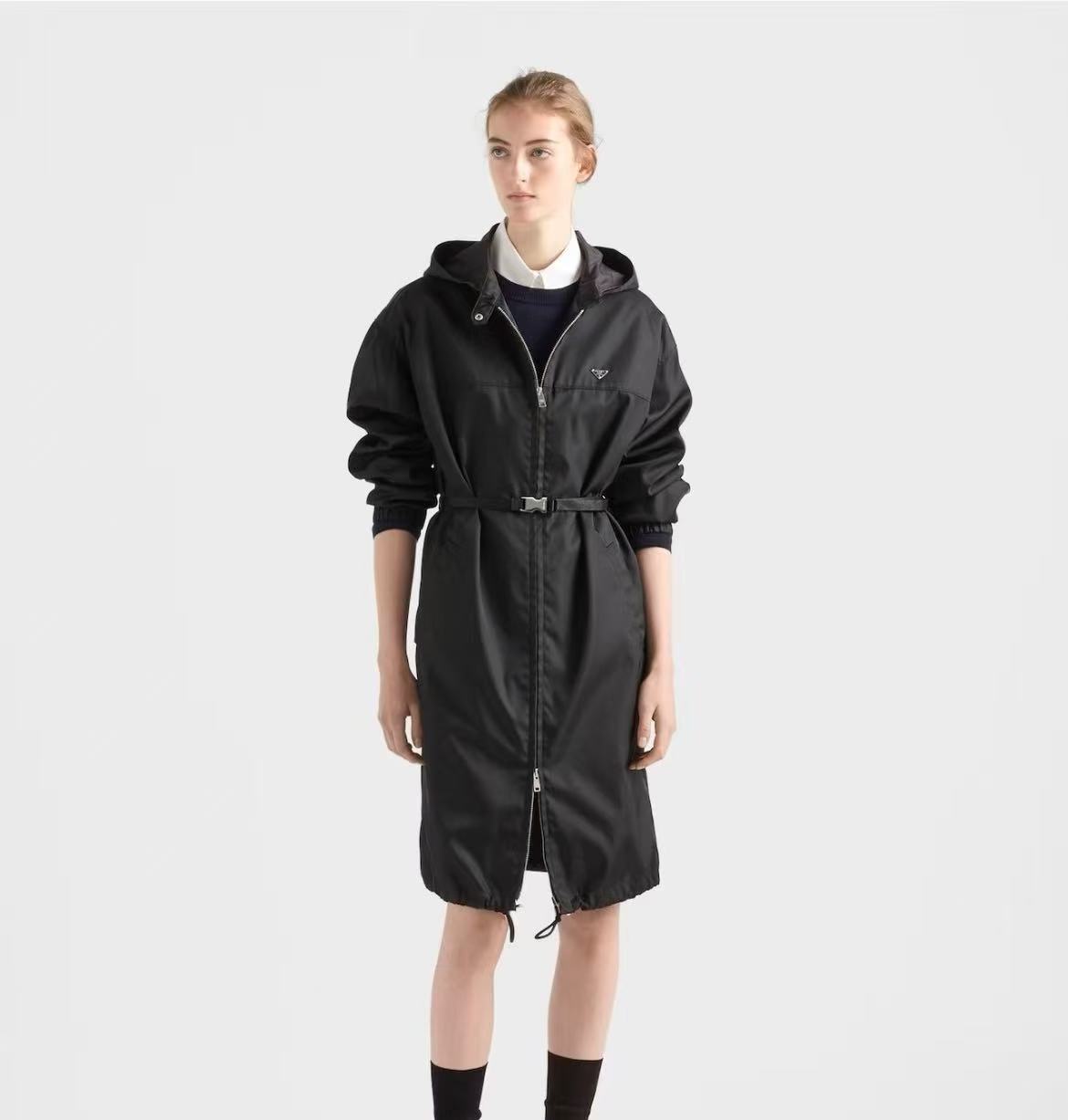 2026早春   PD家 三角標連帽防風夾克外套裙,完美平衡了機能感與高級時尚。