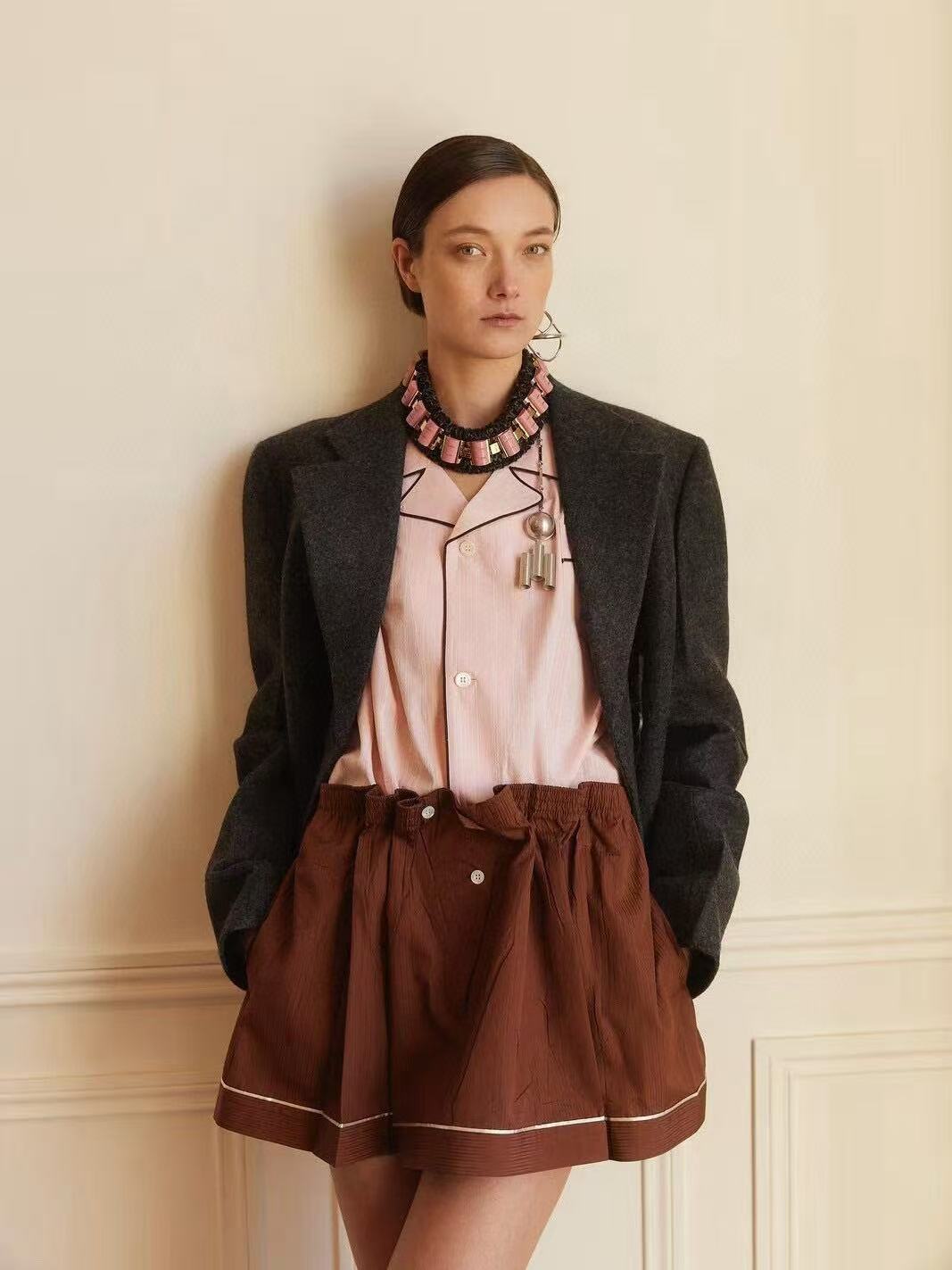 不規則的扭褶剪裁,帶來隨性卻獨特的造型感,讓穿搭不再拘泥於完美比例,反而更顯灑脫。這樣的設計也呼應了「解放身材焦慮」的理念,讓女生可以自在展現自我。