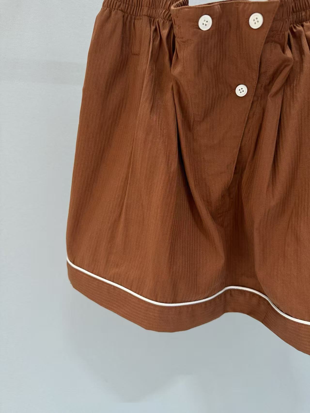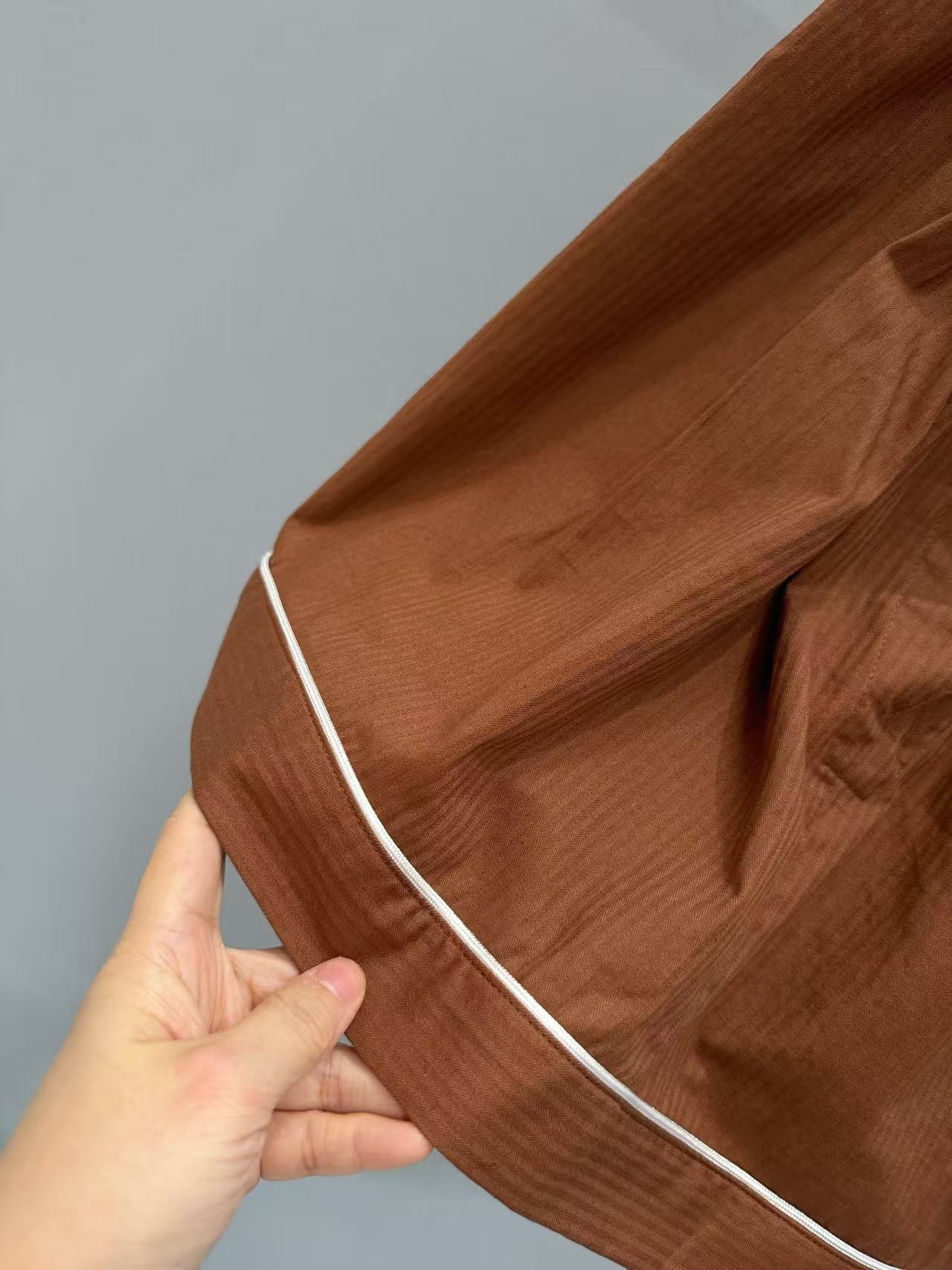 人字紋棉質布料,經過定染處理。內腰附有可移動、可固定的鬆緊扣,方便調整,穿著舒適度更高。