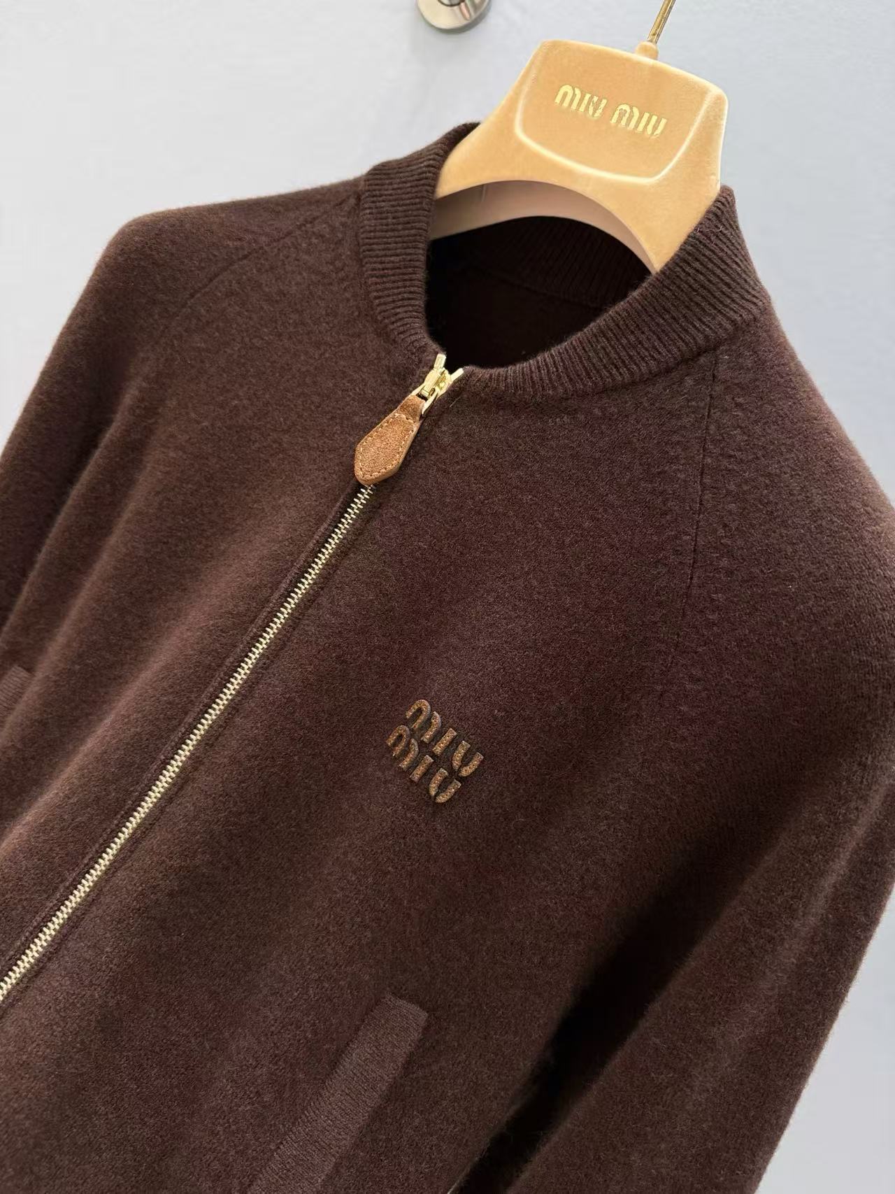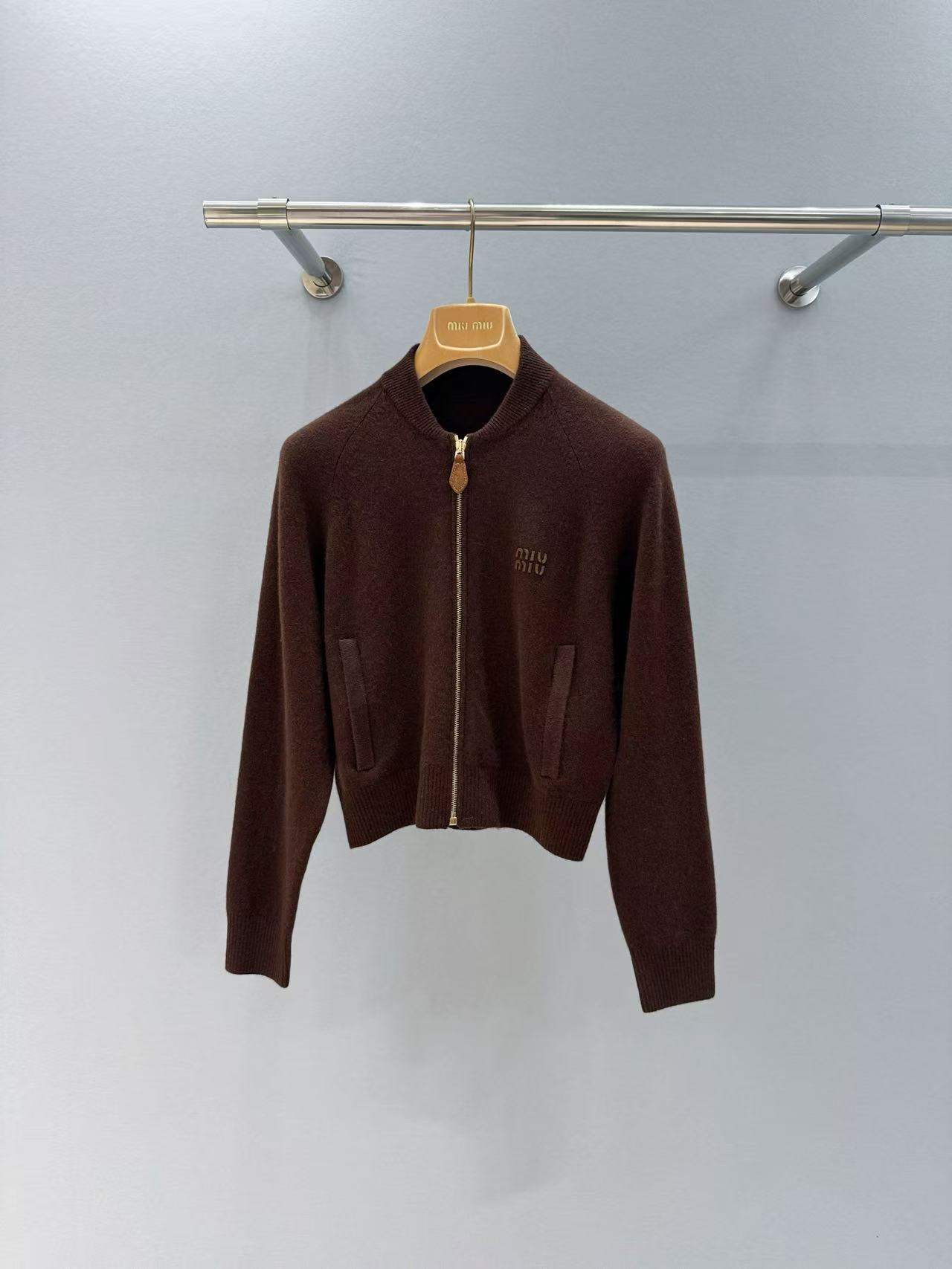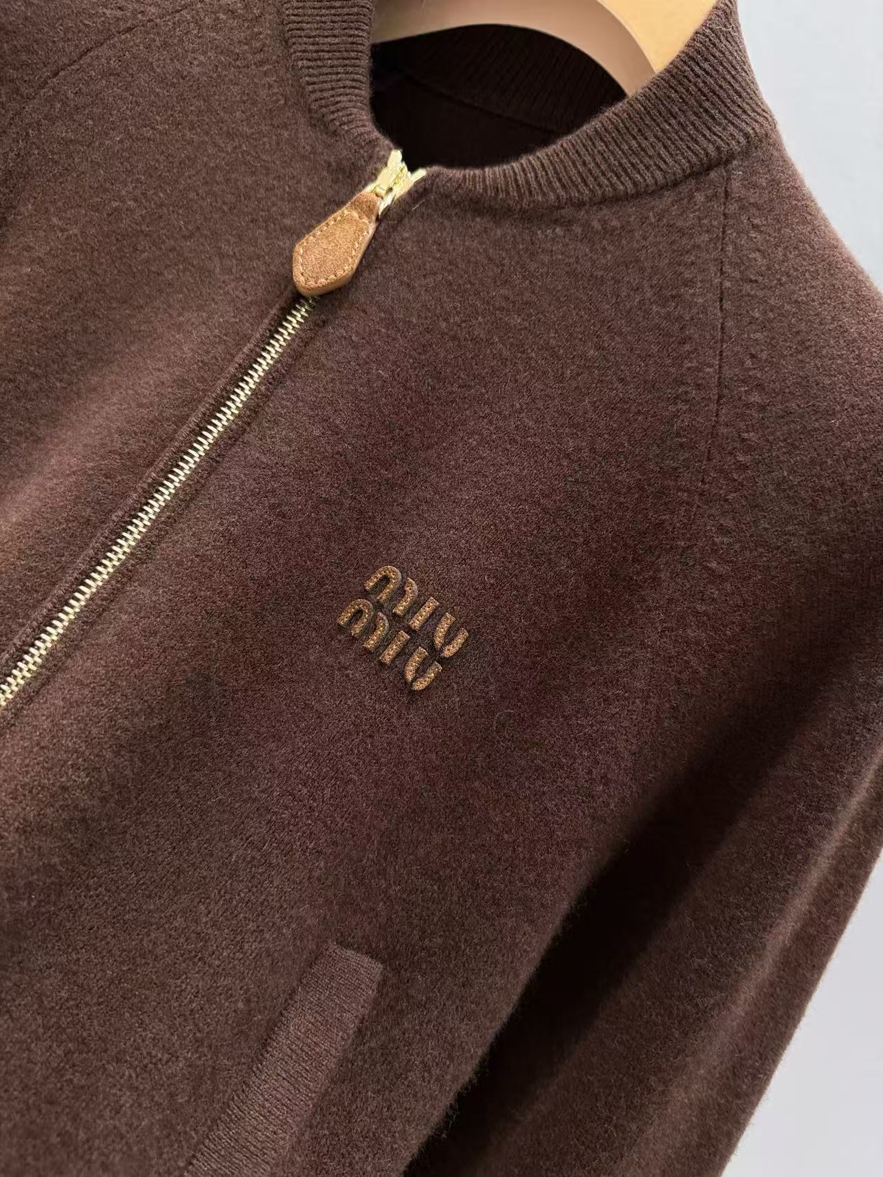 2025早秋 Miu家 立領拉鍊字母羊絨開衫