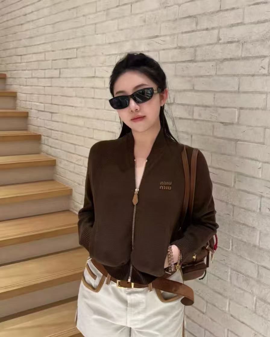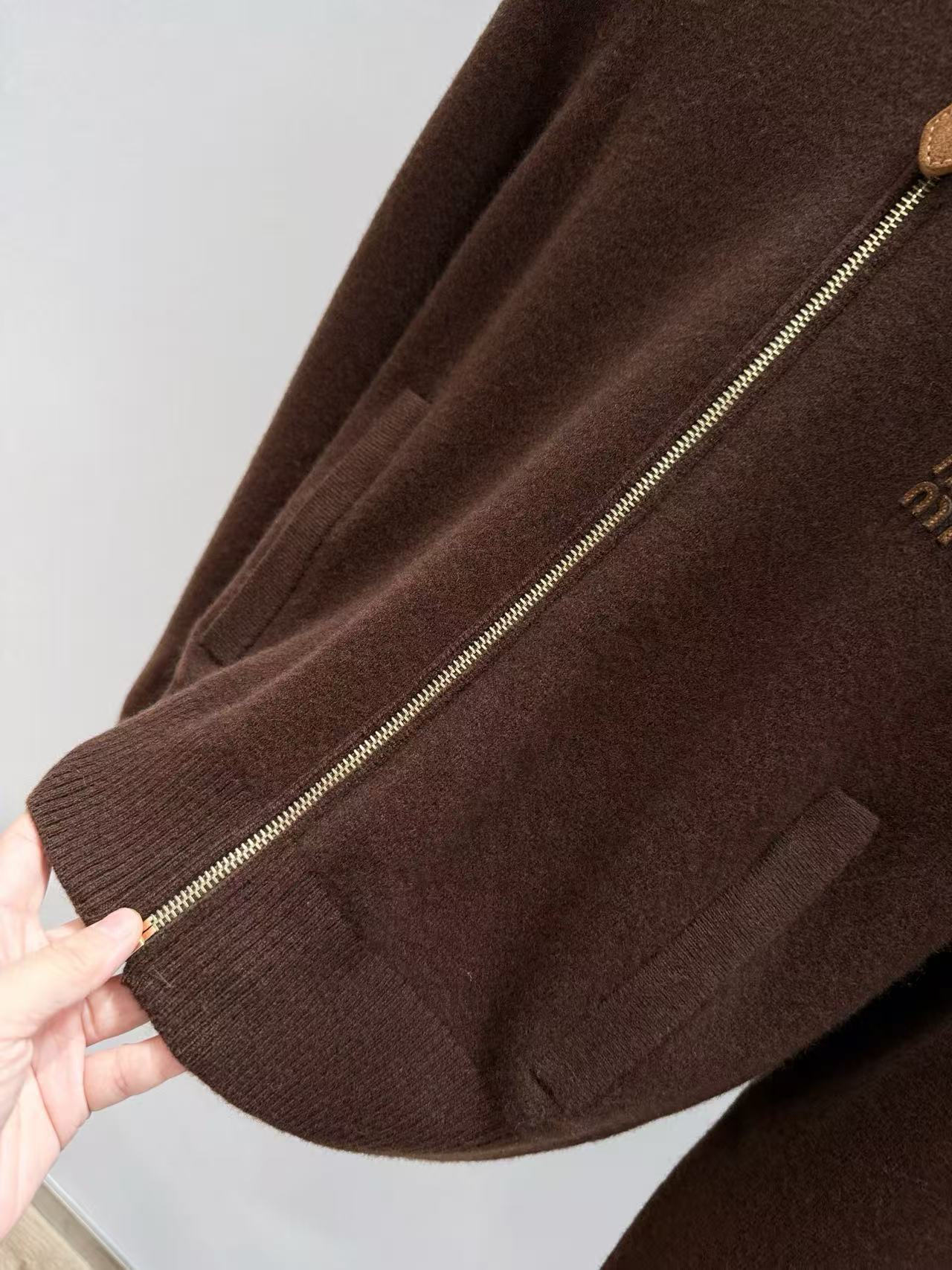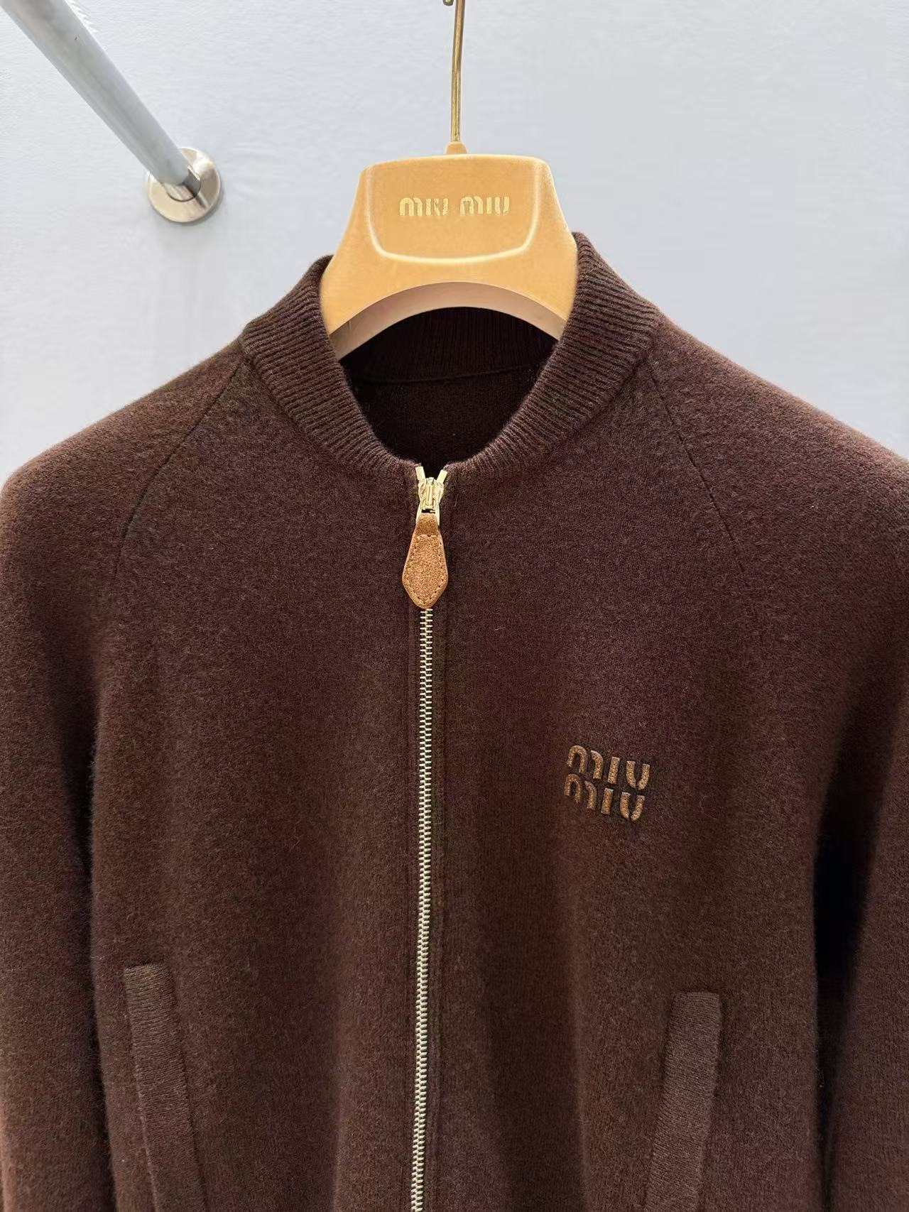 2025早秋 Miu家 立領拉鍊字母羊絨開衫
